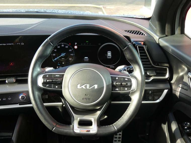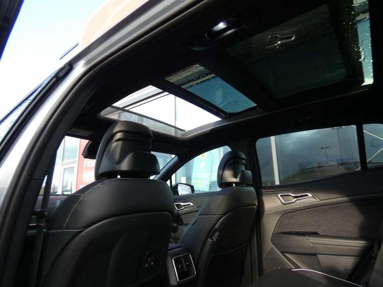 12.3" Display with navigation, 12.3" supervision colour cluster display, 360 degree around view monitor, Apple car play/Android Auto with voice control, Blind spot collision avoidance assist, Blind spot view monitor, Drive mode selector, E-call, Forward collision avoidance assist (FCA) - city/pedestrian/cyclist/junction covering, Front and rear parking sensors, Highway Driving Assist (HDA), Intelligent speed limit assist, Kia Connect (UVO), Lane Following Assist (LFA), Lane keep assist, Low washer fluid warning, Parking collision avoidance assist (PCA), Remote smart parking assist, Reversing camera system integrated into centre fascia screen, Smart cruise control with stop and go functionality, Smart power tailgate, Speed sensitive power steering, Trip computer, Windscreen washer level indicator, Wireless Smartphone charger, Intelligent Stop and Go, Terrain mode select (Mud, Snow, Sand), Bluetooth audio streaming, DAB Radio with MP3, Harman Kardon premium sound system, Rear USB port, Steering wheel mounted audio controls, USB C type charging ports on centre console, USB C type charging ports on side of front seats, USB port for connection of a media device, All round electric windows with drivers and front passenger auto up/down function, Automatic headlight control system, Automatic window defogger, Backlite glass heated with timer, Body colour and black bumper with silver accents, Body colour exterior door handles, Body colour radiator upper garnish and door garnish, Dual LED adaptive headlamps, Electric panoramic glass sunroof (Electric one touch with safety function), Electrically adjustable/heated/folding door mirrors with LED indicators, Front and rear chrome skid plates, Gloss black door mirrors, Gloss black radiator grille, Gloss black side sill and wheel arch body mouldings, Glossy black roof rack, High beam assist, Interior electrochromic mirror, LED daytime running lights, LED front fog lamps, LED High mounted stop light, LED rear combination lamp, Rain sensing wipers with aero blades, Rear fog lamp, Rear privacy glass, Rear side wing doors, Rear spoiler, Rear wiper, Satin finished beltline, Silver coloured inserts to bumpers, Tinted rear glass, Trailer stability assist, 10 way driver/8 way passenger electrically power adjustable seats, 12V power socket in front centre fascia and luggage compartment, 3 seat bench in 2nd row, 3 x passenger assist grips, 40/20/40 split folding rear seat, All-round height adjustable headrests, Ambient lighting, Black headlining, Centre console storage box, Cupholders in rear armrest, D-Shaped sports leather steering wheel and perforated inserts with GT-Line logo, Door courtesy lamps, Drink holder at centre armrest, Driver and front passenger side sunvisors with illuminated vanity mirrors, Driver seat memory function, Drivers seat power lumbar support, Front and rear door storage, Front seat and rear pockets, Front/rear centre armrests, Gear shift indicator, Glovebox illumination, Heated front and outer rear seats, Heated steering wheel, Interior door lock/unlock function, ISOFIX Child seat top tethers and anchor fixings outer rear seats, LED interior personal lamp, LED lighting in overhead console, Luggage area LED light, Luggage area load cover, Luggage net with hooks, Metal paint interior door handles, Paddle shift controls, Rear cabin light, Rear coat hooks, Single front passenger seat, Sports pedals, Suede leather upholstery, Three zone climate control, Tilt/telescopic adjustable steering wheel, Ventilated front seats, Ventilation ducts to rear compartment, Active front headrests, All round 3-point seatbelts, Anti-lock braking system (ABS), Dual front side airbags, Dual horn, Electronic parking brake, Electronic stability control with downhill brake control, Front passenger airbag cut-off switch, Front seatbelt pretensioners + load limiters, Height adjustable front seatbelts, Hill start assist control (HAC), Impact sensing auto door unlocking, Multi collision brake assist, Rear door child safety locks, Rear seat alert system, Traction control, Twin curtain airbags, Twin front airbags, Tyre pressure monitoring system, Advanced anti-theft system including immobiliser and alarm, Door deadlocks, Engine Start/Stop Button with Smart Entry System, Locking wheel nuts, Speed sensitive auto door locking, Visible vehicle identification number, Aluminium pattern finish centre fascia and door garnish, 18" GT-Line alloy wheels, Michelin tyres, Tyre mobility kit,