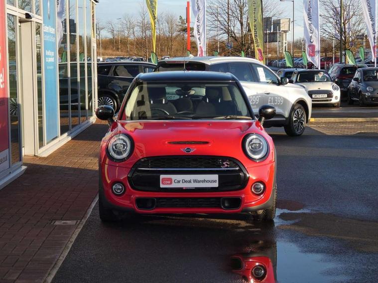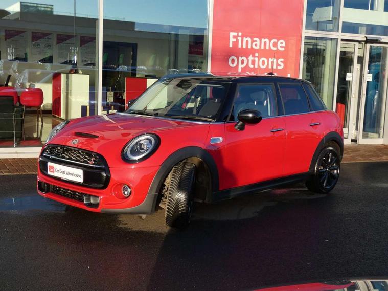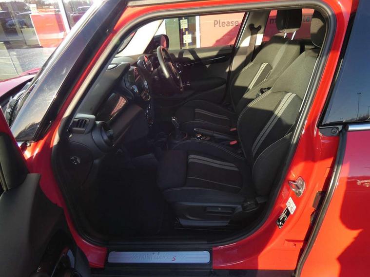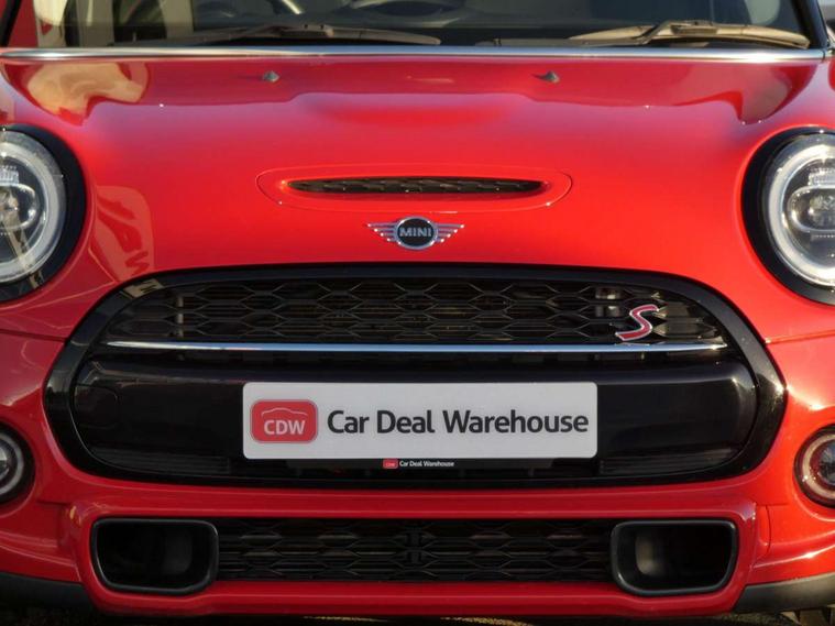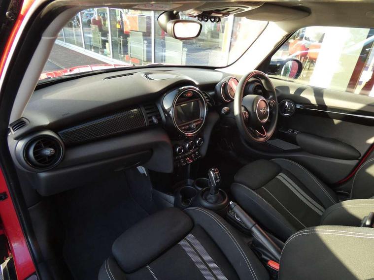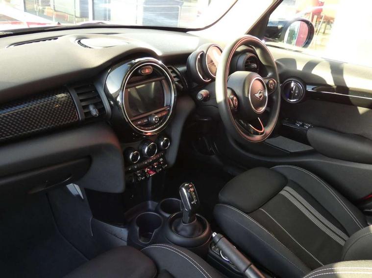 Automatic start/stop function with brake energy recuperation, Compatible mobile phone bluetooth with audio streaming, Electro-mechanical speed dependant steering assistance, Instrument cluster, Mini E-call, MINI TeleServices, On board computer, Service interval indicator, Double Vanos system, Fully variable valve control, High precision injection, Performance Control, Steptronic transmission with double clutch, 6.5" touchscreen with LED ring, FM tuner and DAB digital radio, Automatic headlight activation switch, Bonnet scoop, Chrome border honeycomb structure radiator grille with S badge, Chrome plated fuel cap, Dynamic brake lights, Electric front+rear windows, Heated rear window, Heated windscreen washer jets, LED headlight with closed ring and daytime driving lights, Metal door sill strips with Cooper S imprint, Model logo Cooper S on right of tailgate, Rain sensor window wipers, Rear fog lights, Rear LED lights with union jack design, Rear window wiper, Side scuttle panel with integrated indicator, Sun/heat protection glass, Two central exhaust tailpipes with chrome finisher, White indicator lenses, 12V Accessory socket in centre console, 4 lashing eyes in luggage compartment, 60/40 split folding rear seat, Chrome interior highlights, Colour line - Carbon black, Cupholders, Front and rear head restraints, Front and rear isofix with front passenger airbag deactivation, Glove compartment, Height and length steering column adjustment, Interior lighting with 12 basic colours selectable via toggle switch in roof, Leather gearshift lever and handbrake gaiters, LED reading lights, vanity mirror lights, front foot well light and spotlight on front seats, Manual air conditioning, Mechanical seat adjustment, driver seat height adjust, forward/back and front seats backrest, Mini logo projection on floor from drivers exterior mirror, Multifunction steering wheel, Satellite grey headlining, Storage compartments in doors, Storage pocket on back of front seats, Sunvisors with vanity mirrors, 3 point seatbelts on all five seats, 6 Airbags - front, side, head and seat belt tensioners, Anti-lock braking system (ABS), DSC - Dynamic Stability Control, Front and rear disc brakes, Hill start assist, Two tone horn, Tyre pressure monitoring system, Alarm system with tilt sensor, monitoring doors, bonnet interior and tailgate, Electronic vehicle immobiliser, Start/stop toggle with keyless go, Tool kit,