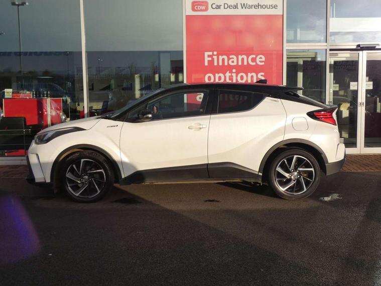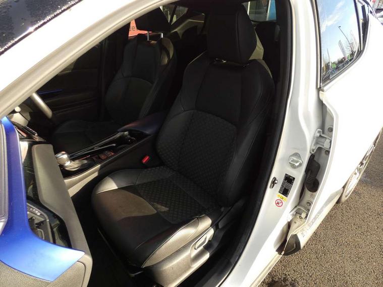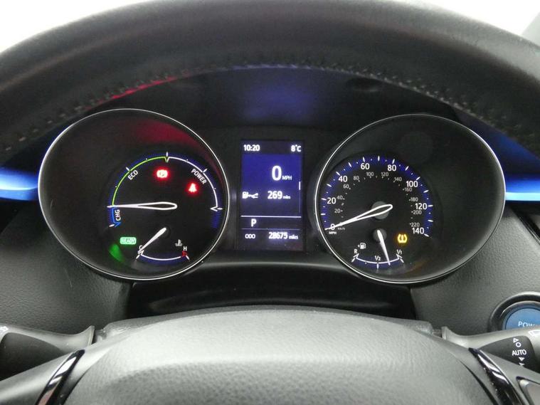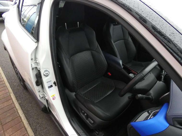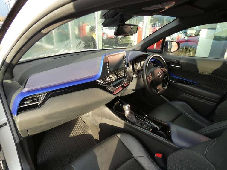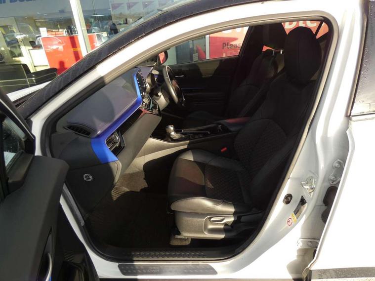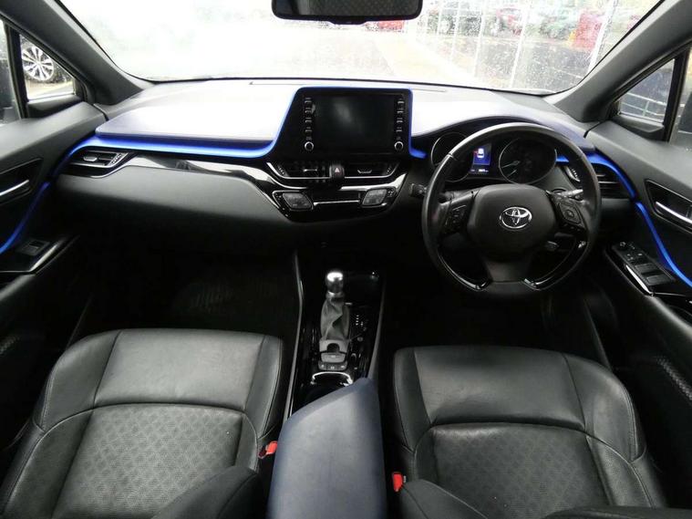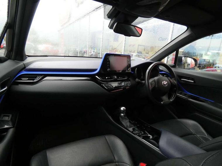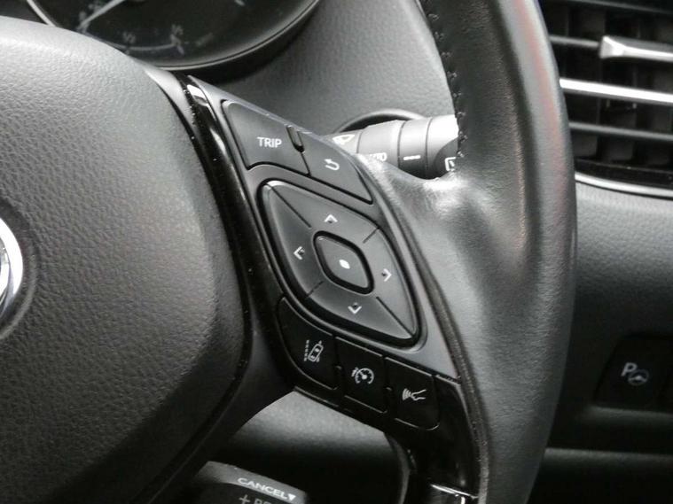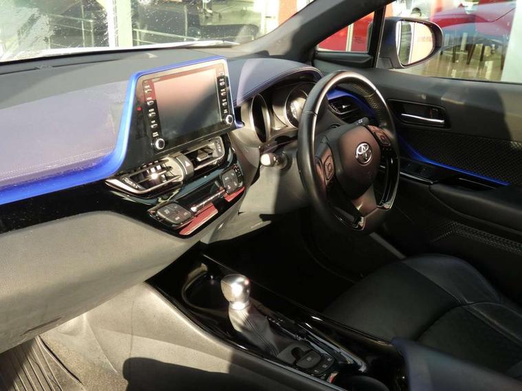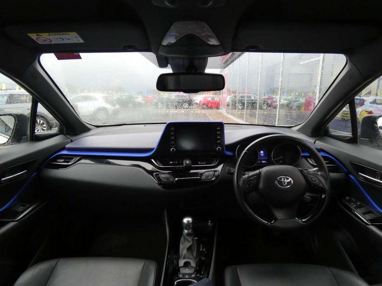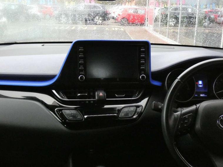 4.2" coloured TFT screen for multi-information display, Adaptive cruise control, Bluetooth connectivity, Electric power steering, Hybrid system indicator, Lane departure alert with steering control, Remote boot door release in cabin, Remote boot door release in key, Reversing camera, Road sign assist - RSA, Simple Intelligent parking assist, Touch 2 Go navigation system, Trip computer, Voice recognition, Vehicle Stability Control (VSC), 6 speakers, Aux connectors + 12V front outlet, DAB Radio (Digital Audio Broadcasting), Toyota touch 2 multimedia system with 8" display, USB connector integrated with radio and CD player, Wi-fi connectivity, Adaptive front light system, Adaptive LED Headlights, Anti-jam protection on power windows, Auto high beam, Auto up and down function on all power windows, Automatic headlight levelling, Automatic headlights, Automatic headlights cut-off, Black and body coloured rear bumper, Black front bumper, Black upper front grille, Body colour door handles, Body colour door mirrors, Boot door release with push button, Electric heated door mirrors, Follow me home headlights, Front and rear power windows, Front spoiler, Hard tonneau cover, Honeycomb lower front grille, LED daytime running lights, LED fog lights, LED front light guide, LED High mounted stop light, LED rear brake lights, LED rear combination lights, Noise reduction layer on front windows and windscreen, Power adjustable door mirrors, Privacy glass, Rear spoiler, Rear tailgate, Rear window defogger, Rear window wiper, Shark fin antenna, UV-filter on driver and passenger windows, UV-filter on rear windows, 12v power outlet - front, 3 rear headrests, 3 seat bench in 2nd row, 3 spoke leather steering wheel, 60/40 split folding rear seat, Adjustable rear headrests, Adjustable speed limiter switch on steering wheel, Assist grips front and centre pillar, Audio and telephone switches on steering wheel, Black front door assist grips, Blue ambient lighting on front cup holders, Blue ambient lighting on front doors, Boot light, Chrome interior door handles, Cloth upholstery, Driver and front passenger personal light, Driver and front passenger Whiplash Injury Lessening seats, Driver and passenger seatback pockets, Dual zone automatic air conditioning, Front cupholders, Front head restraints, Front sports seats, Glovebox with internal light, Heated driver and front passenger seats, Hooks for luggage holding net, Humidifying Nanoe air purifier, Illuminated entry system, Isofix attachments on rear seats, Leather gearshift, Light on driver sun visor, Light on passenger sun visor, Manual telescopic steering wheel, Manual tilt steering wheel, Manually adjustable lumbar support on driver seat, Manually height adjustable driver seat, Manually height adjustable front passenger seat, Manually reclining driver seat, Manually reclining front passenger seat, Manually sliding driver seat, Manually sliding front passenger seat, Microphone on front personal light, Mirror on driver sun visor, Mirror on passenger sun visor, Multimedia switches on steering wheel, Pollen filter, Shopping bag hooks, Slow opening on lower glovebox, Voice recognition switch on steering wheel, Tech with parking sensor pack - C-HR, 16 Disk front wheel brake, 3x3 point rear seatbelts, ABS+EBD+Brake assist, Electronic parking brake, ESP + traction control, Front and rear seatbelt reminder, Front passenger airbag on/off switch, Hill start assist control (HAC), Pre collision system with pedestrian detection, Pre-tensioners and force limiters, Rear door child safety locks, SRS Airbags - Driver + Front passenger, front side, front and rear curtain and driver's knee airbags, Toyota safety sense, Tyre pressure monitoring system, Glass-breaking alarm sensors, Immobiliser, Intrusion alarm, Intrusion sensor, Motion sensor alarm, Power door locks, Power passenger window lock, Remote central locking, Remote door lock, Black lower dashboard, Black lower driver dashboard, Blue deco line on upper dashboard, Blue upper dashboard, Piano black console, Tyre repair kit,