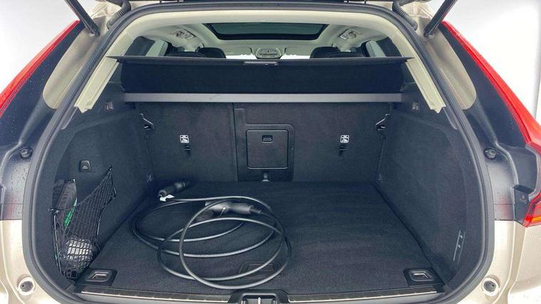 11.2" centre console touch screen, 12.3" Progressive Driver Display, 360 degree surround view parking camera with side proximity sensors, Adaptive cruise control, Adjustable steering wheel force, Android auto (Wired), Apple carplay (wired), Bluetooth handsfree system, Drive mode settings, Driver alert control with lane keeping aid, Emergency services call system, Front and rear park assist, Google Automotive Services, Intelligent speed assistance, Oncoming Lane Mitigation, PAS, Power operated tailgate with handsfree opening and closing, Service interval indicator, Speed limiter, Speed sensitive steering, Trip computer, Volvo cars services with app, Volvo on call with App, Wireless/Inductive Mobile Phone Charging, 2 phase on board charger 6.4kW (home charging limited to 3.7kW), 6m 3 phase 16amp Type 2 / mode 3 charge cable, 8 speed automatic transmission with start/stop + manual change functions, Active four-C chassis + four corner adaptive damper with electronic rear air suspension, Electric rear axle drive, Recharging port located in nearside front wing, DAB Digital radio, Low speed exterior sound speaker, Premium Sound by Bowers and Wilkins, dirac live, dolby pro logic II surround sound, 14 speakers/1100W output and subwoofer, Steering wheel remote infotainment controls, Active bending headlights with adaptive shadow technology, Adaptive brake lights with high level LED brake lights, Auto dimming interior + exterior mirrors, Automatic headlight levelling system, Automatic LED Headlights + Active high beam incorporating daytime running lights, Dark tinted windows for rear side windows and cargo area, Electric adjustable/heated/auto power folding door mirrors, Electric front+rear windows, Front aluminium tread plates, Headlight cleaning system, High gloss black door mirrors, High gloss black front and rear bumper decoratives, High gloss black mesh front grille with high gloss black surround, Home safe and approach lighting, Integrated roof rails in high gloss black, Power glass tilt and slide panoramic sunroof with sun curtain, Puddle lights, Rain sensor with automatic windscreen wiper activation, Rear side wing doors, Rear wiper, Roof antenna, Roof spoiler, Tinted windscreen, Visible VIN plate, 12V socket in front tunnel console and luggage compartment, 2 zone electronic climate control with Clean zone air quality system and pollen filter, 3 seat bench in 2nd row, A-pillar parking ticket holder, Air purifier particulate matter (PM) 2.5 filter, B Pillar ventilation, Bright metal luggage scuff plate, Centre console cupholders and storage, Charcoal floor mats, Front and rear courtesy lights, Front and rear door pocket illumination, Front cupholder illumination, Front footwell illumination, Front reading lights, Front seat cushion extensions, Glovebox compartment with illumination, Head restraints for all seats, Heated front seats, Heated steering wheel, Height/reach adjustable steering column, Illuminated luggage compartment, Illuminated vanity mirrors + ticket holder, Inner door release handle illumination, ISOFIX attachment on outer rear seats, Load cover, Load protection net, Multi directional lumbar support, Power driver seat with memory + exterior mirrors memory, Power folding rear headrests, Power passenger seat with memory, Rear armrest with cupholder, Rear footwell and front and rear side step illumination, Rear reading lights, Rear seat concealed storage, Single front passenger seat, Tailgate illumination and ambient door lighting, Underfloor stowage compartment, Versatile split folding rear seat - 60/40, Driver assist pack without Adaptive cruise control - XC60, 5 three point seatbelts, City safety with steering support with Pedestrian + cyclist + front collision warning with full auto brake and rear auto brake, Drivers knee airbag, Dual stage driver/passenger airbags, Electronic parking brake with auto hold, First aid kit, Front seats SIPS airbags, Hill descent control - Off-road drive mode, Hill start assist, IC (Inflatable Curtains) - Full Length, Passenger airbag cut-off device, Power child locks on rear doors, Run off Road Mitigation, Run off Road Protection, Seatbelt reminder and pretensioners, SIPS (Side Impact Protection System), Slippery road and hazard light alert, Stability and Traction Control with Spin control, Engine Drag Control and Corner Traction Control, Tyre pressure monitoring system, Vehicle deceleration control with Anti-lock Brake System, Electronic Brake Distribution and Emergency Brake Assist, Warning triangle, WHIPS whiplash protection system - front, Anti-theft alarm including immobiliser/volume sensor + level sensor, Key integrated remote control central locking + fuel flap with deadlocking system and auto open/close power windows, Keyless Drive (includes Keyless Entry and Keyless Start), Locking wheel nuts, Private locking for tailgate, Tailored instrument panel with contrast stitching, Summer tyres, Tyre sealant kit + 12v compressor,