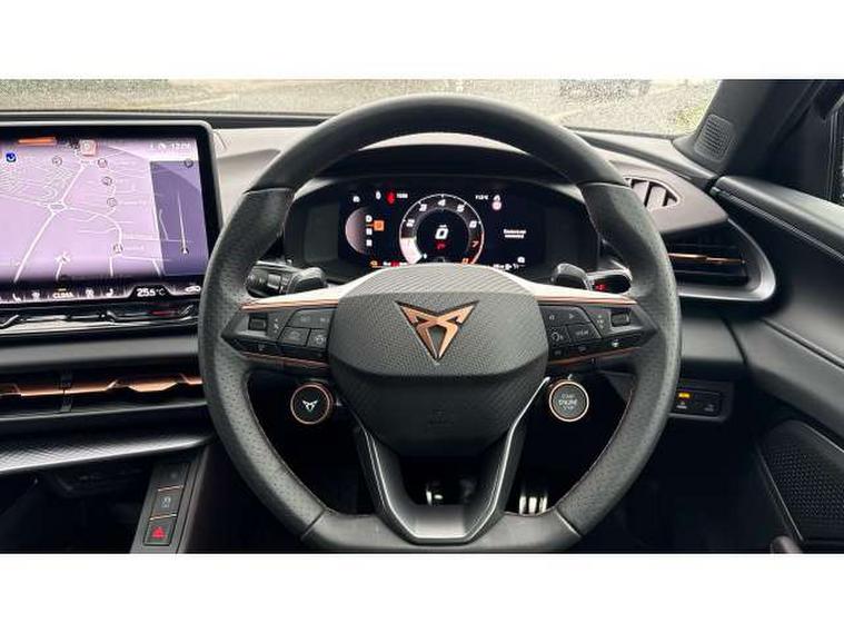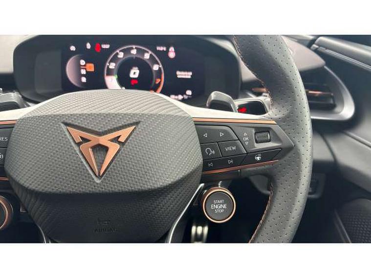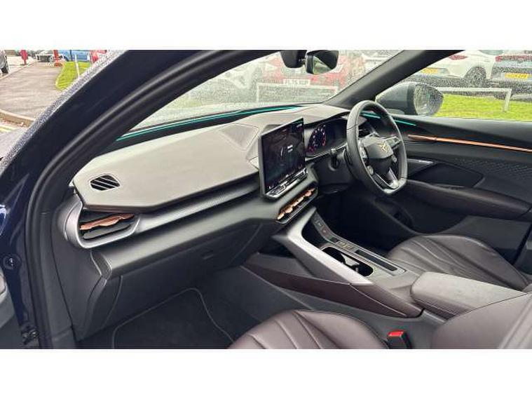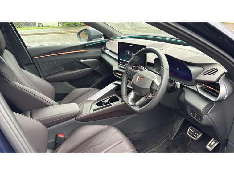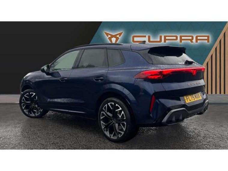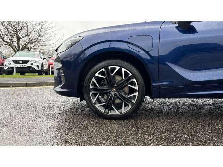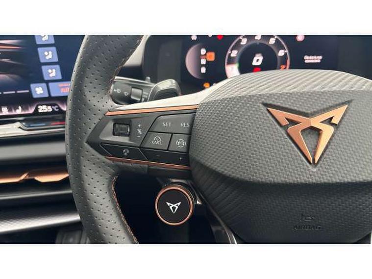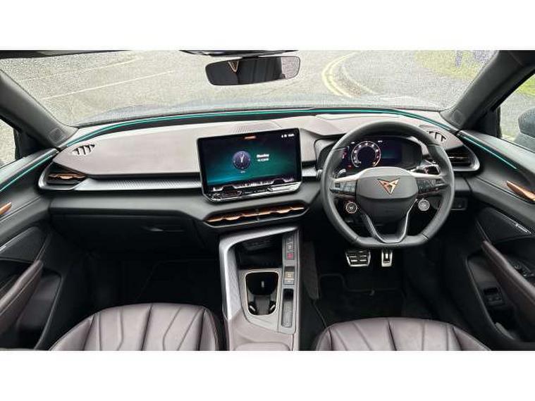10.25" digital cockpit and configurable dashboard, Adaptive cruise control with follow-to-stop and speed limiter, Advanced driver alert system, Advanced lane assist with semi-automatic vehicle control in a medical emergency and traffic jam assist, Driving profile selection (DCC- Comfort, performance, CUPRA, Individual, Dynamic road sign display, E-call, Electric tailgate with virtual pedal, Emergency steering support with turn assist, Four x USB Type C ports (2 in front and 2 in rear), Front and rear parking sensors, Front assist (Forward collision warning with automatic braking) with multifunction camera and front cross traffic assist, Head up Display, Intelligent park assist, Media system with Nav - 12.9" touch display, voice control, full link phone (wired/wireless), DAB and Steering wheel mounted controls, Rear traffic assist, Side and exit assist, Speed sensitive power steering, Start/stop system with regenerative braking, Top view camera (front camera, rear camera, 2 side cameras), Wireless phone charger, 10 amp mode 2 charging cable, 16 amp mode 3 charging cable, Adaptive chassis control with a 2-valve shock absorber, Auto dimming rear view mirror, Black roof rails, CUPRA 3D rear lights with ceremony & swiping indicator and illuminated logo, Dark tinted rear windows, Daytime running lights with automatic headlight control and Coming and Leaving home function, Door mirrors with memory function and lowing function on passenger mirror, Electric front/rear windows, Electrically adjustable, heated and folding door mirrors, Front fog lamps with cornering function, Heat reflecting windscreen, High beam assist, Rain sensing wipers, Rear fog light on one side, back up light on both sides, Rear side wing doors, Rear wash/wipe, Third brake light, Welcome lights (within exterior mirror housing), 3 seat bench in 2nd row, Black roof lining, Cupra sports pedals, Driver seat memory function, Electrically adjustable front seats including lumbar support, Front and rear head restraints, Front and rear reading lights X 4, Front centre armrest, Heated front seats, Heated leather wrapped multi function sports steering wheel with tiptronic, Illuminated interior front door sills, Isofix, Leather upholstery, Operating voltage 12V, Single front passenger seat, Smart wraparound interior lighting, Sunvisors with illuminated mirror, Three zone climate control with control panel in rear, Unsplit rear seat bench, split folding backrest, with centre armrest, Variable luggage/load compartment floor, Pure performance pack - Terramar, 3 point seatbelts in front with pretensioner and electric height adjustment, 3 point seatbelts on all rear seats, Brake control system - ESC and brake booster, Child proof door locks, Driver and front passenger airbags, Electronic parking brake, Front and rear disc brakes, Front interaction airbag, Front passenger airbag deactivation switch, Front side airbags with curtain airbags, Pre-crash front and rear seat belt tensioner, window closure and hazard lights, Tyre pressure monitoring system, Visual and acoustic seat belt reminder, electric contact in front and rear, Anti theft alarm, Keyless locking and starting system with keyless access, Locking wheel bolts, Black decorative trims, Chrome interior detailing, Breakdown kit, Performance tyres in polmer coating, Tool kit,
