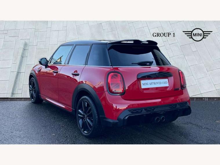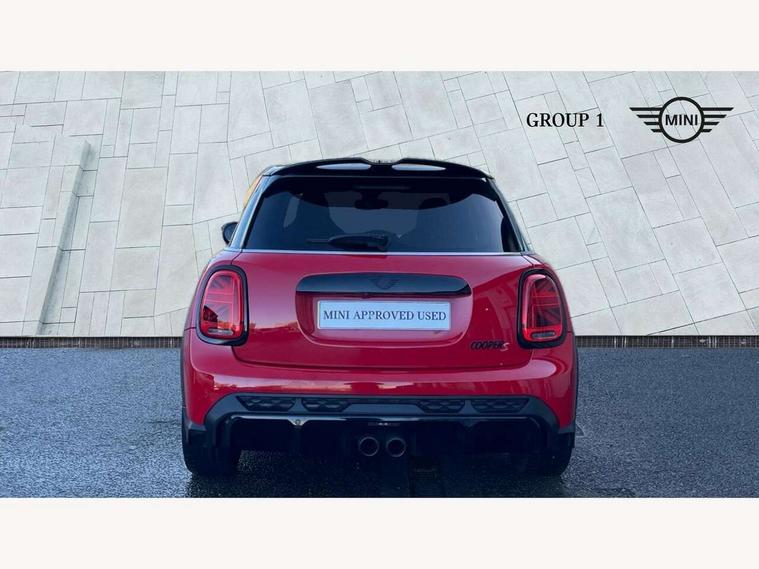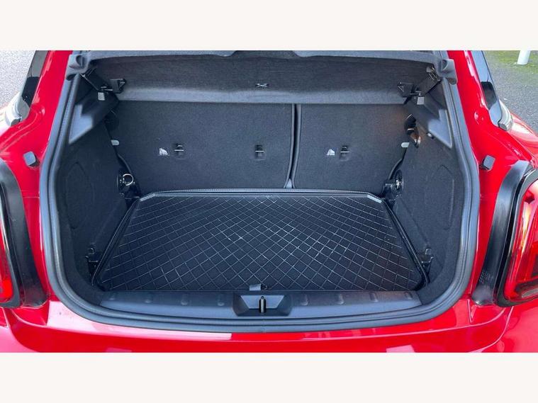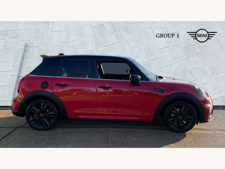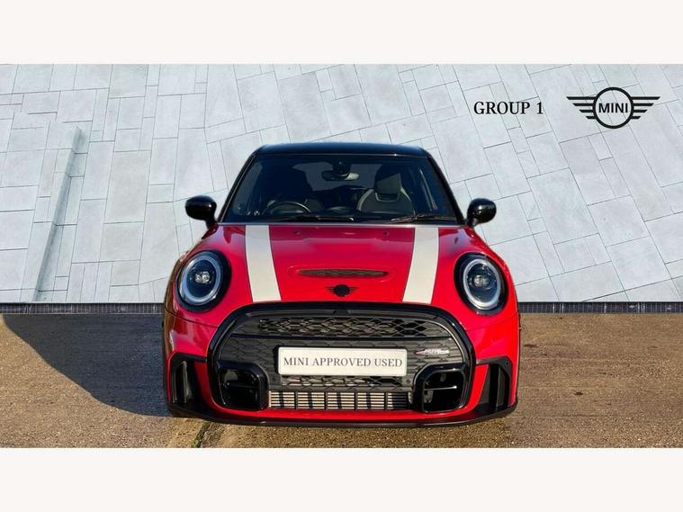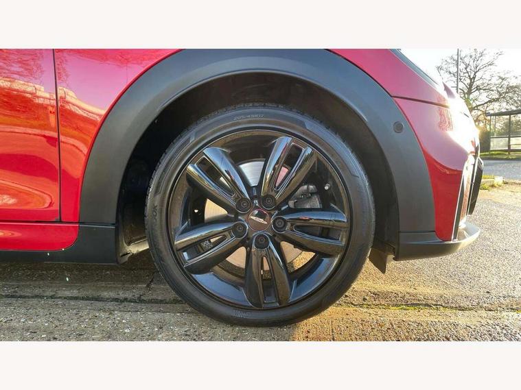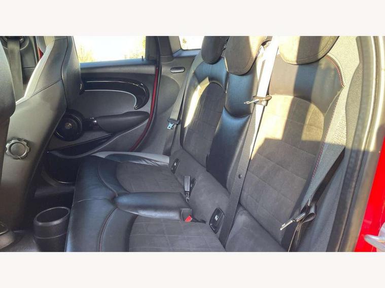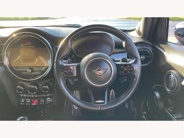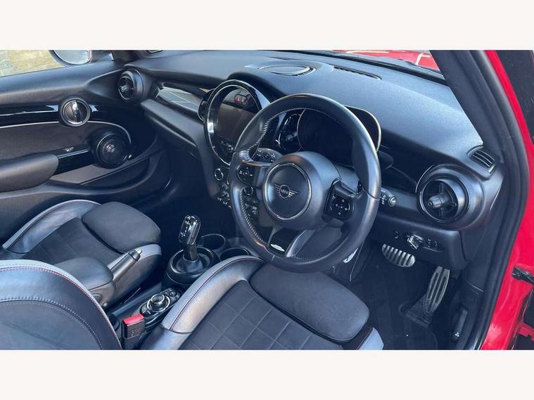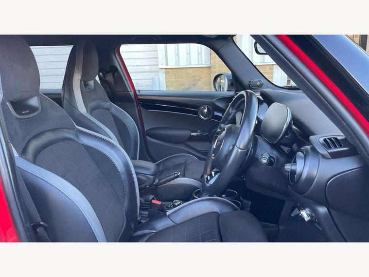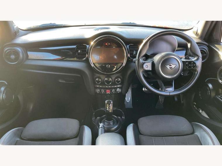 Apple CarPlay, Automatic start/stop function with brake energy recuperation, Compatible mobile phone bluetooth with audio streaming, Electro-mechanical speed dependant steering assistance, Flexible car sharing preparation, MINI Driving Modes - centre toggle switch to control driving setting (sport, mid and green), Mini E-call, MINI TeleServices, On board computer, Rear park distance control, Service interval indicator, Adaptive suspension, Double Vanos system, Fully variable valve control, Gear change indicator display, High precision injection, Performance Control, Steptronic sport transmission with double clutch and steering wheel paddles, 8.8" touchscreen with LED ring, FM tuner and DAB digital radio, 3rd brake light, Automatic headlight activation switch, Bonnet scoop, Dynamic brake lights, Electric front+rear windows, Heated rear window, Heated windscreen washer jets, JCW Aerodynamic kit - Front and rear bumpers with sporty JCW styling and part-painted side sills with MINI John Cooper Works door sill finishers, John Cooper Works rear spoiler, Metal door sill strips with Cooper S imprint, Model logo Cooper S on right of tailgate, Radiator grille chrome border with honeycomb structure including S Badge, Rain sensor window wipers, Rear fog lights, Rear LED lights with union jack design, Rear side wing doors, Rear window wiper, Side scuttle panel with integrated indicator, Sun/heat protection glass, Two central exhaust tailpipes with chrome finisher, White indicator lenses, 12V Accessory socket in centre console, 3 seat bench in 2nd row, 4 lashing eyes in luggage compartment, 60/40 split folding rear seat, Anthracite headliner including grab handles and clothes hooks, Carbon black colour line - Knee roll and door armrest, Chrome interior highlights, Cupholders, Front and rear isofix with front passenger airbag deactivation, Front and rear velour floor mats, Glove compartment, Height and length steering column adjustment, Interior lighting with 12 different colours across the dashboard, underneath door bezel with illuminated laser-engraved design on central display, JCW Sport seats with integrated headrests, adjustable thigh support and John Cooper Works logo, Leatherette gearshift lever and handbrake gaiters, LED reading lights, vanity mirror lights, front foot well light and spotlight on front seats, Mechanical seat adjustment - forward/back & backrest for front seats and driver seat height adjust, Multifunction steering wheel, Single front passenger seat, Sport leather steering wheel with speed limiter and audio/communication controls, Storage compartments in doors, Storage pocket on back of front seats, Sunvisors with vanity mirrors, Walknappa leather steering wheel with grey seam and John Cooper Works badge on Piano Black lower steering wheel spoke, Piano black exterior pack - Mini Hatchback Cooper S, 3 point seatbelts on all five seats, 6 Airbags - front, side, head and seat belt tensioners, Anti-lock braking system (ABS), Child locks on rear doors, DSC - Dynamic Stability Control, Front and rear disc brakes, Hill start assist, Two tone horn, Tyre pressure monitoring system, Alarm system with tilt sensor, monitoring doors, bonnet interior and tailgate, Electronic vehicle immobiliser, Start/stop toggle with keyless go, Piano black interior trim, Tool kit,