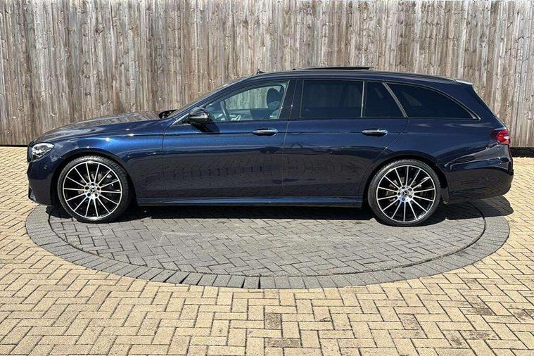 Attention assist, Brake wear warning display, Cockpit display 10.25" widescreen digital instrument cluster, Direct steer speed sensitive steering, DYNAMIC SELECT with a choice of driving modes (ECO, Comfort, Sport, Sport+ and Individual), Easy-pack tailgate - Powered opening/closing automatically, ECO start/stop function, Emergency call service, High resolution 10.25" multimedia colour display, MBUX voice control activated by keywords "Hey Mercedes", Mercedes connect me, Outside temperature display, Remote boot release, Service indicator (ASSYST), Smartphone integration via Android Auto/Apple CarPlay, Media Interface, USB and Bluetooth interface, Status display for rear seat belts in instrument cluster, Touchpad with controller, Traffic sign assist, Trip computer in multifunction display showing current fuel consumption, Wireless charging, 25 litre AdBlue tank, 66 litre fuel tank, 9G TRONIC 9 speed automatic transmission, Agility control sports suspension with selective damping system and lowered by 15mm, Diesel particulate filter, Incorrect fuelling protection, Rear air suspension with level control, 2 USB ports in centre console, 2 USB ports in the rear, Burmester surround sound system with 13 speakers and a 9 channel amplifier with total output of 590 watts, MBUX multimedia system with DAB digital radio and touchpad including satellite navigation, 3rd brake light, Adaptive brake lights, Aerial integrated in rear window, AMG bodystyling front and rear aprons and side sill panels, Chrome roof rails, Electric windows with one touch opening/closing and obstruction sensors, Electrically adjustable and heated door mirrors, Front apron in high gloss black, High gloss black exterior mirror housing, High gloss black rear bumper with chrome trim, Illuminated front door sill panels with Mercedes-Benz lettering, LED High Performance headlamps including integral LED daytime running lamps, LED rear lights, Panoramic electric glass sunroof, Privacy glass Includes rear side windows and rear windscreen, Radiator grille with integral star and 2 louvres in high gloss black, Rain sensor with automatic headlight activation, Rear side wing doors, Rear wiper, Tail lights, Top surround of side windows in polished aluminium, Visible twin pipe exhaust system integrated into bumper, Waistline trim strip in high gloss black, 3 seat bench in 2nd row, 3 spoke multifunction flat bottom AMG steering wheel with chrome inserts and touch control buttons, trimmed in black nappa leather, 40:20:40 split folding rear bench seat, Artico man-made leather upper dashboard and beltlines with contrast stitching, Automatic child seat recognition sensor, Black door pins, Black roof lining, Central stowage compartment with 12 V socket in centre console, USB socket for use with Android Auto and Apple CarPlay, Courtesy lights in rear grab handles with reading light functionality, Floor mats with AMG lettering, Four way partially front electric seat adjustment, Front centre armrest with stowage compartment, Glasses compartment in overhead control panel, Glove compartment - lockable, air conditioned and illuminated, Head restraints for driver and front passenger (four-way adjustability) and in rear (two-way), Heated front seats, Interior lighting - 64 colour Ambient lighting, Leather upholstery, Seat occupancy sensor for front passenger seat, Single front passenger seat, Sports pedals in brushed stainless steel with black rubber studs, Steering column electrically adjustable for height and reach, Steering wheel multifunction with gearshift paddles, Steering wheel touch control buttons for audio and onboard settings, Sunvisors with illuminated vanity mirrors, THERMOTRONIC automatic climate control system with 3 climate zones, Mirror pack - E Class, Parking package including 360 degree camera - E Class, Seat comfort pack - E Class, Stowage pack - E Class Estate, 3x3 point rear seatbelts, Active bonnet pedestrian safety measure which detects an impact and raises bonnet, Adaptive brake system with HOLD function and brake drying in the wet, Airbags - sidebag for driver and front passenger with combined thorax/pelvis bag, Anti-lock braking system (ABS), Childproof locks manually operated for rear doors and electrically operated for rear power windows, Driver and adaptive front passenger airbags, Drivers knee airbag, Electronic parking brake, Hill start assist, ISOFIX child seat attachment points two outer rear seats, Perforated brake discs with Mercedes Benz lettering, Pre-Safe anticipatory safety system, Tyre pressure monitoring system, Warning triangle and first aid kit, Window airbags, Alarm system/interior protection/immobiliser, Central locking with interior switch, automatic locking and crash sensor with emergency opening function, Chrome surround electric key, Keyless entry go starting function, Grey open pore ash wood trim and centre console in grey open pored ash wood, 20" AMG multi spoke light alloy wheels painted in high gloss black with high sheen finsih, Summer tyres, TIREFIT with tyre inflation compressor,