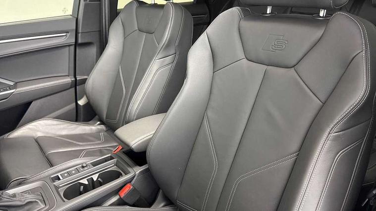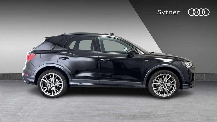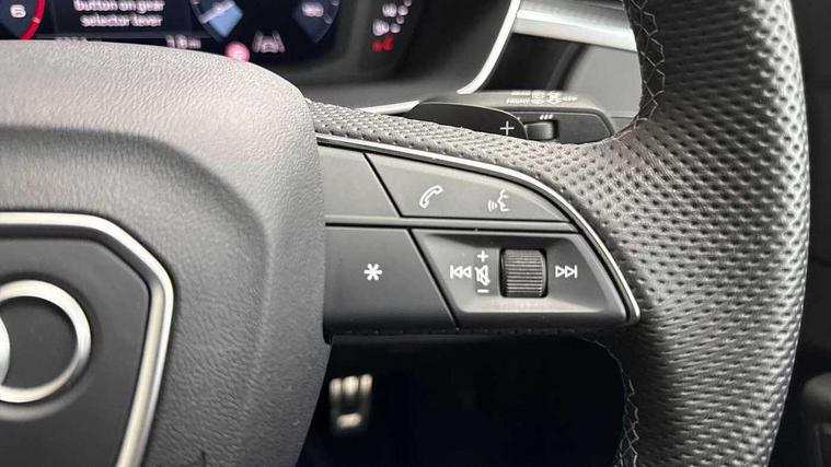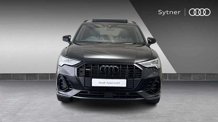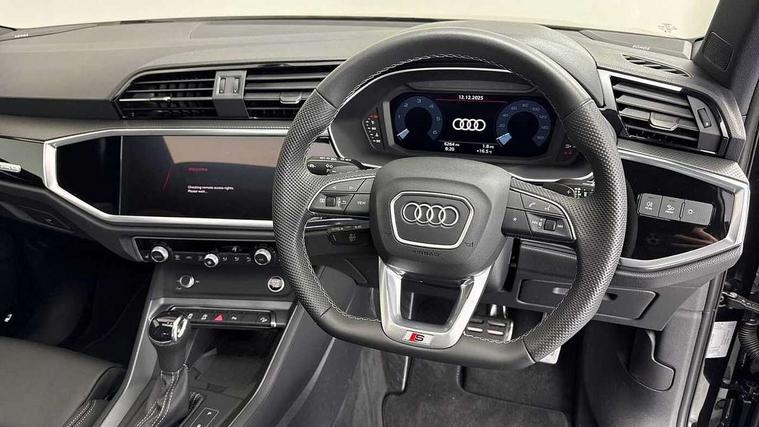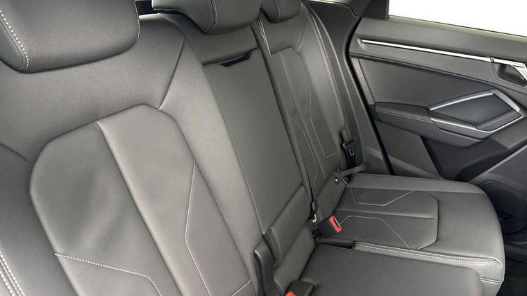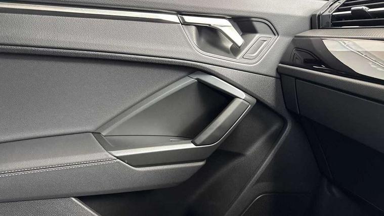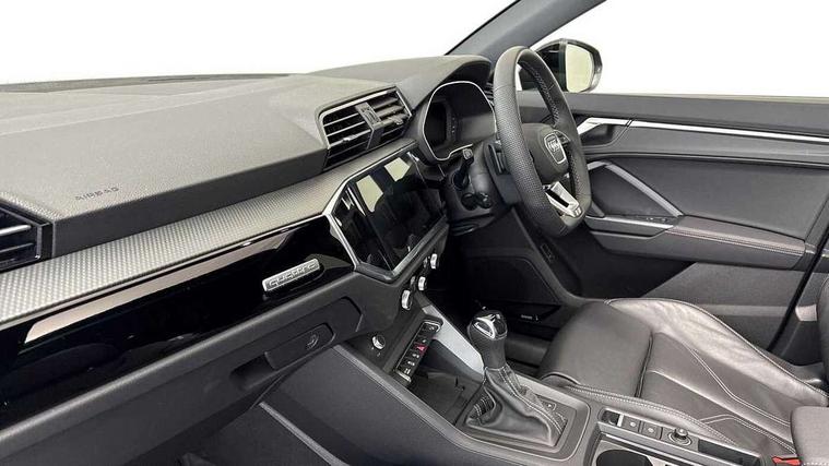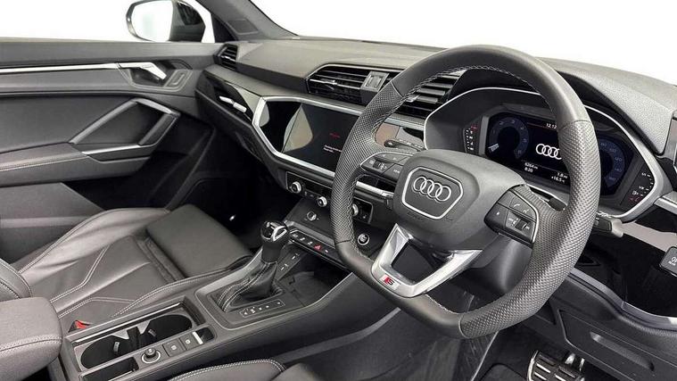 Amazon alexa Integration, Audi connect safety and service, Audi drive select, Audi lane departure warning, Audi Virtual Cockpit - 10.25" display, Bluetooth interface, Camera based traffic sign recognition, Distraction and Fatigue warning, Legal emergency call, MMI Navigation Plus with high resolution 10.1 inch touchscreen colour display, Power operated tailgate, Progressive steering, Service interval indicator, Smartphone interface includes wireless Apple carplay/Android Auto, Start stop system with recuperation, Voice control system with natural language interaction, Diesel particulate filter, Sports suspension, 2 USB-C ports with charge and data functions, 6 passive loudspeakers, DAB digital radio module, Acoustic windscreen, Audi Beam uses LEDs to project the Audi logo onto the ground as you exit your Q3, Auto dimming door mirrors, Auto dimming frameless rear view mirror, Black roof rails, Electrically folding, adjustable and heated door mirrors with integrated LED side indicators and kerb view function for passenger side, Front and rear electric windows, Front fog lights, Grille vertical bars in aluminium silver/Matt, High gloss black finish B and C pillars, LED Dynamic rear indicators, LED headlights with LED daytime running lights, LED rear lights, LED third brake light, Privacy glass dark tinted rear and rear-side windows (from B-pillar backwards), Rain and light sensors, Rear diffuser grille in grained matt black, Rear diffuser strip in matt anthracite black, Rear side wing doors, Rear wiper, S line bumpers in contrasting Manhattan grey, Variable front intermittent wipers, 12V socket in rear centre console, 3 seat bench in 2nd row, 40:20:40 folding with manual adjustment for 60:40 forwards/backwards position and backrest angle, Adjustable rear seat bench/backrest with centre armrest and cupholder, Black cloth headlining, Dual zone electronic climate control, Electric lumbar support, Front and rear black floor mats with contrast stitching in rock grey, Front and rear headrests, Front centre armrest, Height and reach adjustable steering wheel, Illuminated door sill trims with S logo, ISOFIX child seat mounting for front passenger with airbag deactivation and outer rear seat including top tether attachment point for outer rear seats, Manual front seats with height adjustment, Perforated leather gearknob, Single front passenger seat, Stainless steel luggage compartment sill finisher, Stainless steel pedals, Twin leather upholstery with front sport seats + S embossing, Black styling pack - Q3, Non smoking pack - Q3, 3x3 point rear seatbelts, 6 airbags - Driver, front passenger, curtain and side windows, Audi pre-sense front with pedestrain and cyclist recognition, Electrically operated child locks on rear doors, Electromechanical parking brake, Electronic stabilisation control including ABS, ASR and EDL, Front seatbelt reminder, Hill descent control, Hill hold assist, Pre sense basic, Seatbelt monitoring, Tyre pressure warning, Warning triangle and first aid kit, Anti theft wheel bolts, Immobiliser, Remote central locking, Thatcham approved category 1 anti theft alarm, Aluminium look interior elements, Detail dashboard around MMI touch colour display in glass look, black with surround in aluminium look, Leatherette door armrest, Piano black inlay,