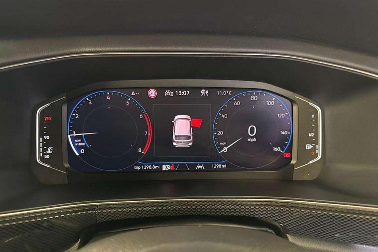 'Lights On' Reminder warning buzzer, 10.25" Digital cockpit pro, Advanced driver attention and drowsiness monitor, Blind spot monitoring, Car information display, Driver profile selection including ECO function, Dynamic road sign display, E-Sim card for online connectivity, eCall emergency call system, Front and rear parking sensors, Front assist, forward collision warning, autonomous emergency braking and speed limiter, Low washer fluid warning light, Multifunction computer with visual gear change recommendation for fuel consumption, Multifunction front facing camera for distance control, Operating permit alteration, Power assisted steering, Predictive adaptive cruise control, Preparation for navigation system with media and internet package, Preparation for We connect and We connect plus, Semi-automated driving assistance, travel assist including lane keeping system Lane Assist and emergency assisst, Speedo, rev counter, electronic odometer, trip, service interval display, exterior temperature and fuel gauge, Warning sound and light for doors and tailgate open, Warning sound and light for front seatbelts unfastened, Wireless Car net app connect with Apple CarPlay, combined functionality of Apple CarPlay/Android Auto and MirrorLink, Wireless charging, Misfuel prevention device, Start-stop system with battery regeneration (recuperation - energy recovery during braking), 2 USB C ports in front, 2 USB charging sockets on the centre console in the rear charging capacity upto 45W, Diversity antenna for FM reception, Music playback - MP3, WMA and AAC files, Radio, Automatic dimming interior rear view mirror, Automatic hazard lights activation under emergency braking, Automatic headlight control with LED separate daytime running light and coming home and leaving home feature, Body colour door handles, Body colour door mirrors, Body coloured bumpers, Dynamic headlight range control with self adjusting whilst driving, Electric folding door mirror, adjustable, heated with front passenger exterior mirror lowering function, Exterior mirrors convex on the left and aspherical on the right, Front and rear electric windows, Front door sill protectors with R-Line logo, Galvanised body, Heat insulating and laminated safety glass windshield, Heat insulating darkened glass in side and rear windows, High Beam Assist, automatic sensing for switching between dipped and main beam, LED rear combination lights, LED third brake light, Lower door sills and door pillars in black, Privacy glass for rear side windows and rear window, Rain sensor, Rear fog light on one side, reversing light on both sides, Rear side wing doors, Rear window aerial, Rear window wiper with intermittent control, Reflectors in all doors, Scuff plates, Tailgate with integrated roof spoiler, 12V Accessory socket in centre console, 2 Front and rear reading lights incorporating LED technology, 3 rear head restraints, 3 seat bench in 2nd row, 60/40 split folding rear seat backrest, Air care climatronic 2 zone air conditioning system, Ambient lighting, Brushed stainless steel pedals, Chrome plated radiator grille inserts, air vent surrounds and light switch surrounds, Cloth upholstery, Comfort front sport seats, Door and side trim panel, Drawer under drivers seat, Driver and front passenger sunvisor with vanity mirror, Dust and pollen filter, Front + rear carpet mats, Front centre armrest with storage compartment, Front footwell illumination, Front seat back storage pockets, Glove compartment door with light, Heated front seats, Heating and fresh air system with 4 stage blower, Height/reach adjust steering wheel, Instrument lighting white adjustable panel illumination, Interior light with switch off delay and dimmer, Isofix anchors for child seats on outer rear seats and front passenger seats, Leather gearshift handle, Leather wrapped multifunction steering wheel, Luggage compartment floor, Luggage compartment lighting, Manual front seats with height adjustment, Padded dashboard, Removable luggage compartment cover, Single front passenger seat, Storage compartment in drivers and front passengers door, Titanium black roof lining, Unsplit sliding rear seat bench, 3 point outer rear seat belts with ECE label, 3 Point seatbelt for centre rear seat, Anti-lock Braking System (ABS) with Hydraulic Brake Assist (HBA), Automatic post collision braking system, Disc brakes in front, Disc brakes in rear, Driver and front passenger safety-optimised head restraints, Drivers and Front Passengers airbags with front passengers airbag deactivation switch, ESC with EDL and ASR (traction control), Extended and predictive pedestrian/cyclist protection, Front and rear passenger curtain airbag system including front side airbags, Height adjustable front 3 point seatbelts + pretensioners, Hill start assist, Pre crash preventive occupant protection, Proactive passenger protection system in combination with front assist, Rear door child safety locks, Rigid safety cell with front and rear crumple zones, Single tone horn, Tyre pressure loss indicator, Volkswagen roadside assistance, Alarm with interior protection, Anti theft alarm system, Electronic engine immobiliser, Remote tailgate unlocking using key fob, Titanium Black Decorative inserts - R Line, Low rolling resistance tyres,