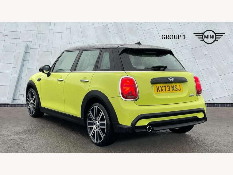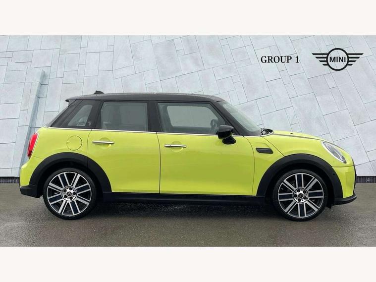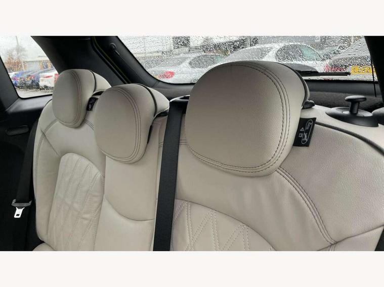 Apple CarPlay, Automatic start/stop function with brake energy recuperation, Compatible mobile phone bluetooth with audio streaming, Electro-mechanical speed dependant steering assistance, Flexible car sharing preparation, MINI Driving Modes - centre toggle switch to control driving setting (sport, mid and green), Mini E-call, MINI TeleServices, On board computer, Rear park distance control, Service interval indicator, Double Vanos system, Fully variable valve control, Gear change indicator display, High precision injection, Performance Control, Steptronic transmission with double clutch, 8.8" touchscreen with LED ring, FM tuner and DAB digital radio, 3rd brake light, Automatic headlight activation switch, Body colour fuel filler cap, Chrome line exterior - radiator grille bars, tailgate handle, lower front grille grating and rear central fog-light, Dynamic brake lights, Electric front+rear windows, Heated rear window, Heated windscreen washer jets, Metal door sill strips with MINI imprint, Model logo Cooper on right of tailgate, Rain sensor window wipers, Rear fog lights, Rear LED lights with union jack design, Rear side wing doors, Rear window wiper, Side scuttle panel with integrated indicator, Sun/heat protection glass, White indicator lenses, 12V Accessory socket in centre console, 3 seat bench in 2nd row, 4 lashing eyes in luggage compartment, 60/40 split folding rear seat, Anthracite headliner including grab handles and clothes hooks, Carbon black colour line - Knee roll and door armrest, Chrome interior highlights, Chrome line interior - air vents, gear lever base, door handles and speakers in doors, Cupholders, Front and rear head restraints, Front and rear isofix with front passenger airbag deactivation, Front and rear velour floor mats, Glove compartment, Height and length steering column adjustment, Interior lighting with 12 different colours across the dashboard, underneath door bezel with illuminated laser-engraved design on central display, Leatherette gearshift lever and handbrake gaiters, LED reading lights, vanity mirror lights, front foot well light and spotlight on front seats, Mechanical seat adjustment - forward/back & backrest for front seats and driver seat height adjust, MINI yours badge on exterior pillar, Multifunction steering wheel, Single front passenger seat, Storage compartments in doors, Sunvisors with vanity mirrors, Walknappa leather steering wheel with grey seam and MINI Yours badge on Piano Black lower steering wheel spoke, 3 point seatbelts on all five seats, 6 Airbags - front, side, head and seat belt tensioners, Anti-lock braking system (ABS), Child locks on rear doors, DSC - Dynamic Stability Control, Front and rear disc brakes, Hill start assist, Single tone fanfare horn, Tyre pressure monitoring system, Alarm system with tilt sensor, monitoring doors, bonnet interior and tailgate, Electronic vehicle immobiliser, Start/stop toggle with keyless go, Tool kit,