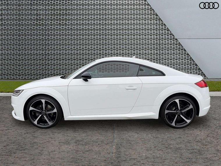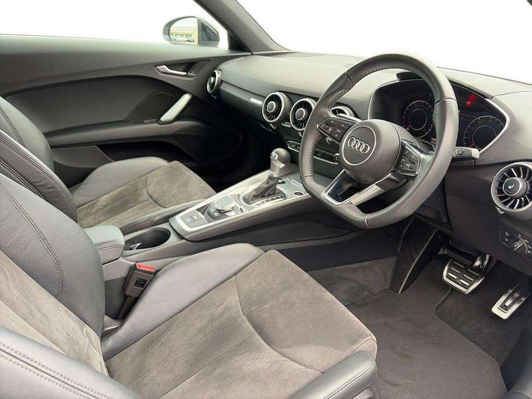 Audi drive select with 4 Pre configured modes, Audi smartphone interface, Audi virtual cockpit - 12.3" high-resolution LCD display with fully customisable instrument cluster, Cruise control + speed limiter, Emergency call service, MMI touch panel, Mobile phone preparation with bluetooth interface, Progressive power assisted steering, Service interval indicator, Start/Stop system with energy recuperation, TP memo, Sports suspension, AM/FM radio, Bluetooth audio streaming, DAB Digital radio, MMI Radio with CD player and SD/XC card slot, Auto dimming rear view mirror, Electric folding door mirrors, Electric front windows, Electrically adjustable and heated door mirrors with integrated LED side indicators, Front fog lights, Green tinted heat insulating glass, LED 3rd brake light, Light and rain sensors, Rear boot, Retractable rear boot spoiler, Sunband for windscreen, Xenon headlights with LED daytime running lights with automatic headline range control + LED rear lights, brake lights and rear indicators, 12V socket, 2 rear seats, 3 spoke flat bottomed high multi-function leather sport steering wheel with gearshift paddles, Alcantara/Leather upholstery includes seat centre panels, door trim inserts in black Alcantara with side bolsters, head restraints in black leather, Aluminium door sill trims, Front centre armrest, Front passenger seat, Front sports seats, Heated front seats, Height adjustable driver's seat, Height adjustable front head restraints, Height/reach adjust steering wheel, ISOFIX child seat mounting for front passenger seat with airbag deactivation, Rear head restraints, Rear top tether child seat ISOFIX attachment, Split folding rear seat, Black styling pack - TT, Non smoking pack - TT/TT RS, 3 point front seat belts, ABS, ASR traction control, Curtain airbags, Driver and front passenger airbag with front passenger airbag deactivation, EDL traction control, Electromechanical parking brake, ESP, First aid kit, Front side airbags, Head airbags, Hill hold assist, Seatbelt warning, Tyre pressure loss indicator, Warning triangle, Anti theft alarm, Anti theft wheel bolts, Immobiliser, Keyless Go, Remote central locking, Aluminium design inlays, Tool kit, Tyre repair kit,