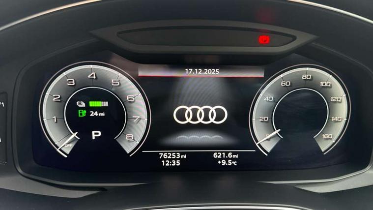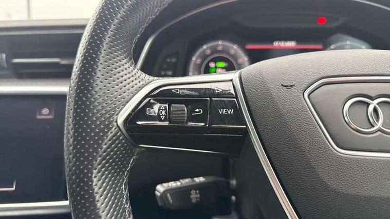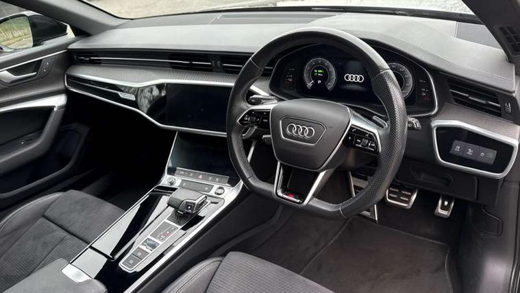 7" high resolution colour driver information display system, Audi connect safety and service (e-call), Audi connect with Amazon Alexa Integration, Audi drive select, Automatic start/stop system with coasting functionality, Bluetooth interface, Electric boot lid release, Lane departure warning system, Progressive steering, Service interval indicator, Smartphone interface includes wireless Apple carplay/Android Auto, Voice control system, 3 pin 10 amp domestic charging cable, 52 litre fuel tank, 7.4 kW onboard charger, Hybrid propulsion system, Quattro on demand, Sports suspension, Type 2 mode 3 32 amp charging cable, Type 2 socket for AC charging, Audi front music interface, Auxiliary input socket, DAB Digital radio, USB connection, All weather LED headlights, Black roof rails, Electric front/rear windows, Frameless auto dimming interior rear view mirror, Front intermittent wipers, Gloss black highlights on the exterior area of the Audi Single frame, Gloss black highlights on the front and rear bumpers, Gloss black highlights on the radiator grille, Gloss black highlights on the side windows trim strips, Headlight washers, Heat insulating darkened glass in side and rear windows, Heat insulating glass in windshield, LED rear lights, LED signature front daytime running light, LED third brake light, Matt black rear diffuser with diffuser strip and tailpipes in chrome, Matt black side air intake grille with inlay in matt aluminium, Privacy glass, Rain and light sensors, Rear side wing doors, Rear wiper, 4 way electric lumbar support for driver and front passenger, 4 zone deluxe automatic climate control, 40/20/40 split folding 3 rear seat bench in 3 parts with rear centre armrest, Black cloth headlining, Black front and rear carpet floor mat, Black steering wheel insert, Electrically adjustable front seats with driver memory, Front centre armrest, Front head restraints, Heated front seats, Height/reach adjust steering wheel, Illuminated door sill trims with S logo, Illuminated sun visors with vanity mirrors, ISOFIX child seat mounting and Top Tether with front passenger airbag deactivation, Leather gear knob, Rear headrests, Single front passenger seat, Stainless steel pedals and foot rest, Comfort and sound pack - A6, Non smoking pack - A6, Technology pack - A6, 3 point seatbelts on all seats, Airbags - Front side, front and rear including head, Audi pre-sense front, Black seatbelts, EBD - Electronic brakeforce distribution, Electromechanical parking brake, Electronic Stability Control (ESC) including ABS, ASR and EDL, Extended pedestrian protection measures, Manual child proof rear door locks, Seatbelt monitoring, Tyre pressure warning light, Warning triangle and first aid kit, Anti theft alarm with tow away protection, Anti-theft wheel bolts and wheel loosening detection, Immobiliser, Remote central locking, Carbon twill inlays, 20" 5 V spoke star design Audi sport cast aluminium alloy wheels in matt titanium look, Tool kit, Tyre repair kit,