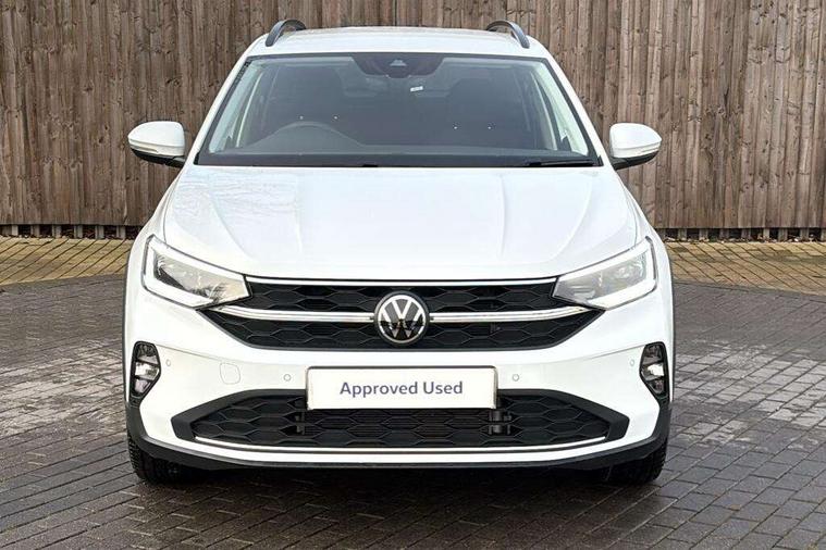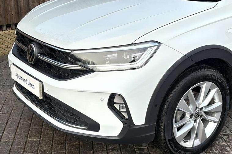 8" Digital cockpit basic display, Advanced driver attention and drowsiness monitor, Dynamic road sign display, e-Call (emergency call), Power Steering, Predictive adaptive cruise control, Rear view camera, Travel assist including emergency assist, Washer fluid level indicator, Wireless Charging including Bluetooth, Start-stop system with battery regeneration (recuperation - energy recovery during braking), Digital radio reception (DAB+), WeConnect plus, Ambient lighting with logo projection, Aspherical driver's exterior mirror, Body coloured bumpers, Body coloured exterior mirror housings and door handles, Electric windows, External USB type C socket and charging sockets, Heat insulating glass windscreen, LED rear combination lamp, LED third brake light, Left convex exterior mirror, Power folding adjustable/heated exterior mirrors and front passenger exterior mirror lowering function, Rear fog light on one side, reversing light on both sides, Rear side wing doors, Rear wash/wipe with intermittent wipe setting, Side windows in heat-insulating glass, from B-pillar and rear window dark tinted, 'Slash/ Austin' Cloth upholstery, 12V socket in centre console, 2 front reading lights, 3 rear head restraints, 3 seat bench in 2nd row, Black carpets, Ceramique headliner, Child seat anchor for child seat system i-Size, 2x top tether and child seat anchor in front on front passenger side, Door and side trim panels in titan black, Driver and front passenger seat height adjustment, Front centre armrest, Handbrake lever handle in leather, Height and reach adjustable steering wheel, Leather trimmed gear knob, Leather wrapped multifunction steering wheel, Luggage compartment floor, Luggage compartment light, Lumbar support for driver's and front passengers seat, Seat covers in titanium black, Single front passenger seat, Split folding backrest with centre armrest and unsplit rear seat bench, Storage compartment under front seats, Sun visors with illuminated vanity mirrors, Titanium black instrument panel, Chrome Package - Taigo, Drivers assistance package - Taigo, Light and sight pack - Taigo, 2 x 3-point seatbelts/outer rear seats with ECE label, 3-point seat belts in front with pretensioner and height adjustment, 3-point seatbelt for centre rear seat, Driver and front passenger airbag with front passenger airbag deactivation, Driver and front passenger safety-optimised head restraints, Electronic stability control, Extended and predictive pedestrian/ cyclist protection, Front and rear disc brakes, Front curtain and side airbags with center airbag, Hill start assist, Manual rear child locks, Single tone horn, Tyre pressure loss indicator, Anti-theft alarm system with interior monitoring, backup horn, and towing protection, Keyless locking and starting system keyless access with safelock, Black (slush) Dashboard, Lava stone black gloss/matt decorative inserts in dash and front door panels, Low rolling resistance tyres,