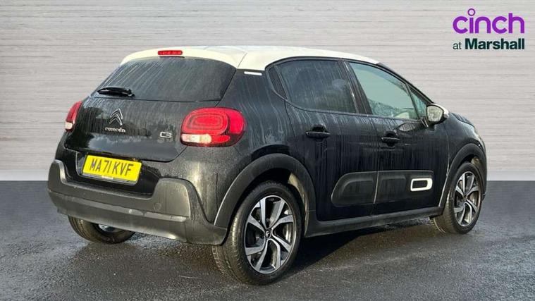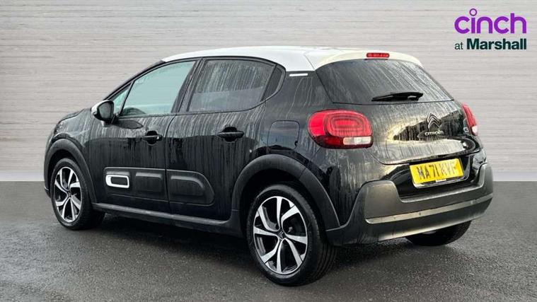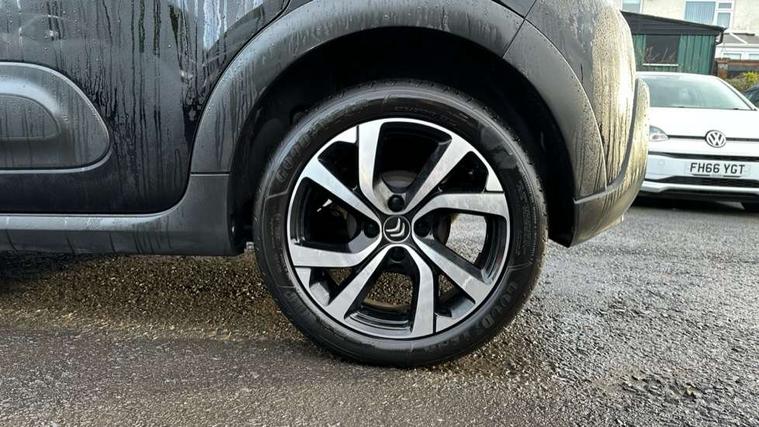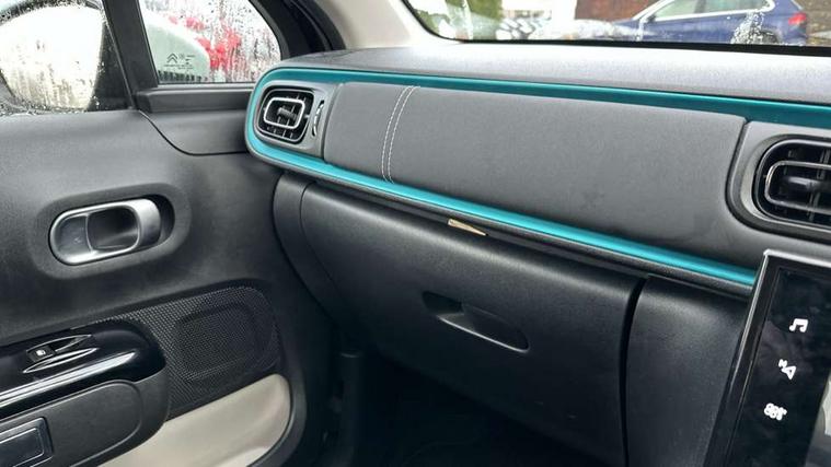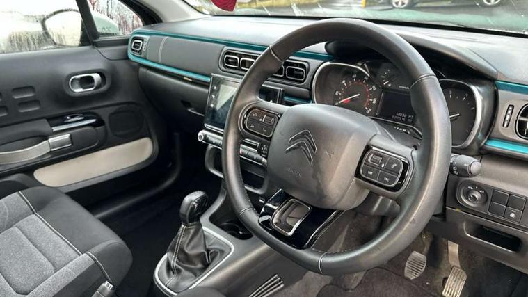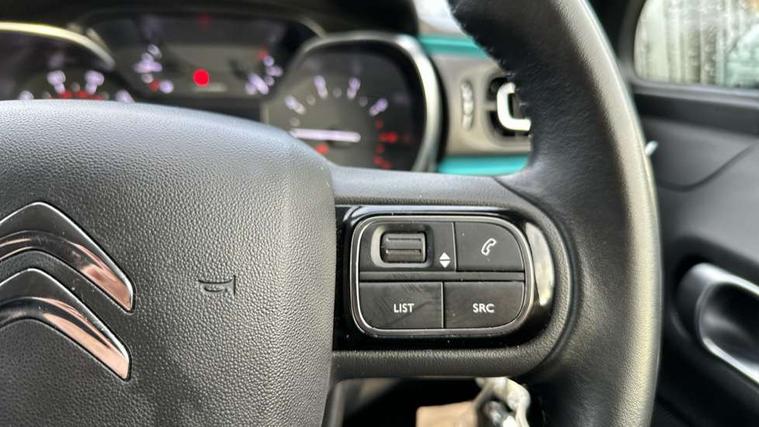 Citroen connect box emergency and assistance system, Coffee Break Alert, Cruise control + speed limiter, Exterior temperature display, Multi function trip computer, Rear parking sensors, Reversing camera, Satin chrome surround instrument cluster with white LCD and analogue gauges, Variable assistance power steering, USB connection, 3D rear light signature, Automatic activation of hazard warning lights, Body colour bumpers, Body colour door handles, Chrome decoration on front face, under chevrons and around daytime running lights, Citroen illuminated signature in LED headlights and LED daytime running lights, Dark tinted tailgate and rear side windows, Electric folding and heated door mirrors, Electrochrome auto dimming interior rear view mirror, Fog lights integrated into front bumper, Front sequential electric windows with one-touch open/close and anti-pinch system, Gloss black finish B pillar, LED Headlights, Rear sequential electric windows with one-touch open/close and anti-pinch system, Rear windscreen wiper with intermittent mode linked to vehicle speed and automatic activation when reverse gear selected, Roof colour rear view mirror caps, 1/3 to 2/3 split folding rear seat, 12V socket, Automatic air conditioning, Boot light, Cloth/leather effect upholstery, Driver and passenger's sun visor with courtesy mirror, Driver's central armrest, Driver's seat height adjustment, Front lighting panel with map reading lights, Front seats adjustable with forward back slide and adjustable backrest, Height adjustable front head restraints, Height/reach adjust steering wheel, ISOFIX mounting on outer rear seats with top tether and labels indicating fixing points, Leather steering wheel with gloss black + satin chrome elements and audio/telephone controls, Leather trimmed gear lever with leather effect gaiter and overstitching, Map pockets in back of driver and front passenger seats, Parcel shelf, Seatbelt unfastened on the move audible and visual alert for front and rear seats, Storage space under touchscreen with rubber mat, Three rear seats with head restraints, Upholstered armrest in front and rear doors, Safety pack 1 - C3, Safety Pack 2 - C3 Shine Plus, Shine Technology Pack - C3 Shine Plus, Visibility pack with automatic lights - C3, ABS with Electronic brakeforce distribution and Emergency braking assistance, Driver and front passenger seatbelts with pyrotechnic pretensioners and force limiters, Driver's airbag, Electric child locks, ESP with anti skid system, Front passenger airbag, Front passenger airbag deactivation, Front side airbags + front/rear curtain airbags, Hill start assist, Manual parking brake with leather handle and chrome finish button, Mono-tone horn, Outer rear seats with pretensioners and force limiters, Three rear 3-point seatbelts, Tyre pressure monitoring system, Anti theft alarm, Automatic door and boot locking when moving off with automatic unlocking in case of impact, Central locking with locked indicator and interior one touch lock button, Immobiliser, Remote control central locking with two plip keys, 17" Vector diamond cut alloy wheels, Tyre puncture repair kit,
