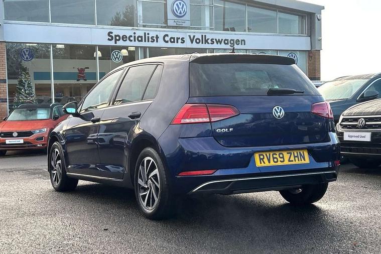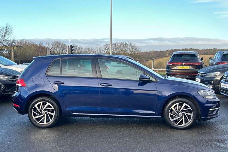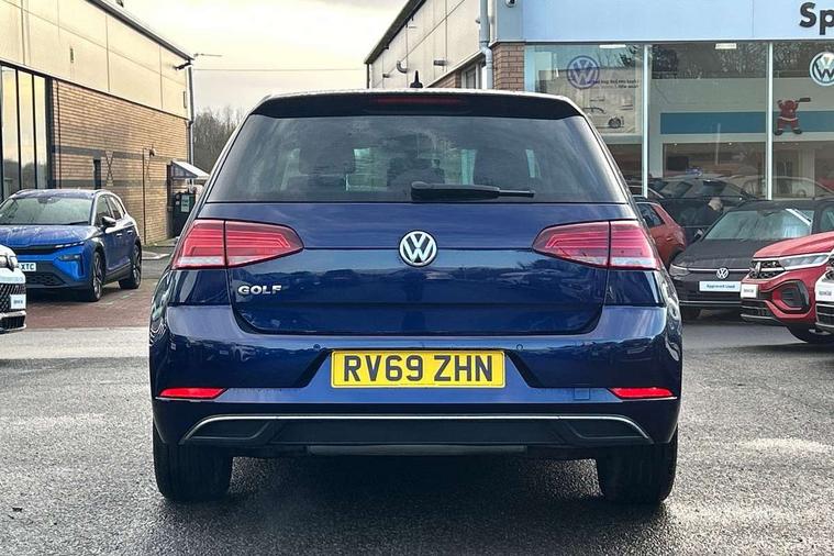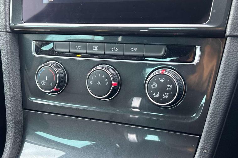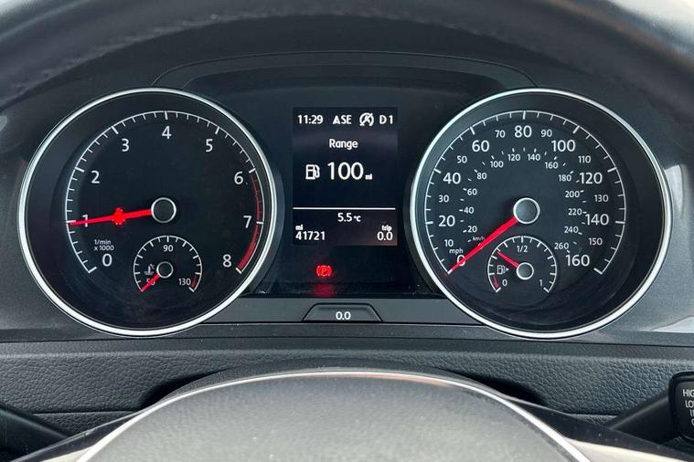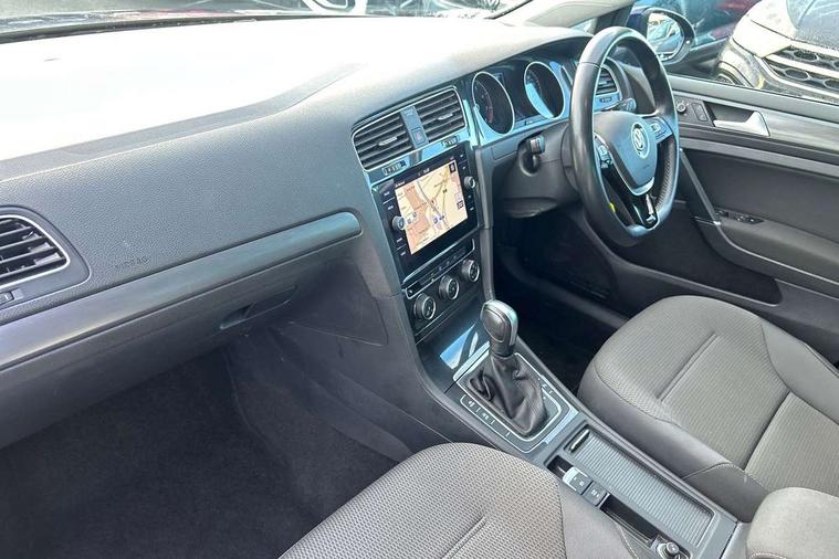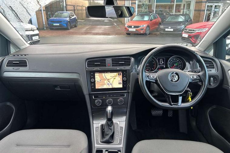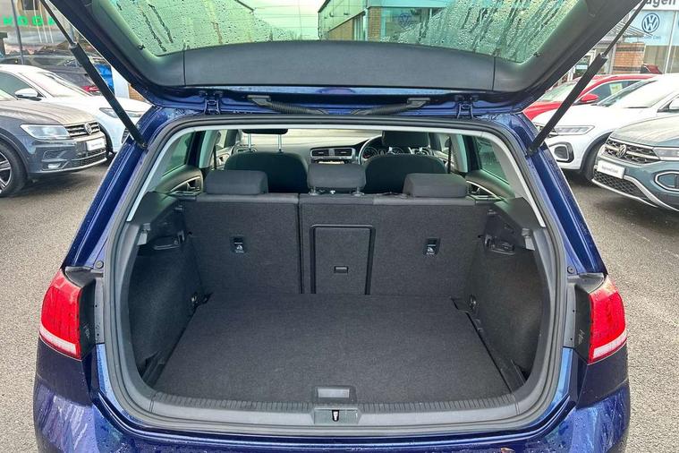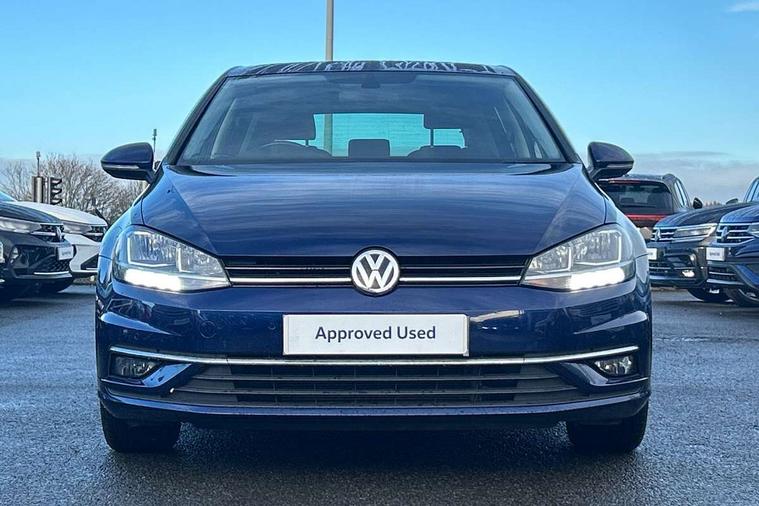 'Lights On' Reminder warning buzzer, ACC - Adaptive cruise control with front assist, forward collision warning, distance monitoring, city emergency brake and speed limiter, Bluetooth telephone and audio connection for compatible devices, Brake pad wear indicator warning light, Driver alert system, Driving Mode Selection with four preset modes - Eco, normal, sport or individual modes, Instrument cluster in white, Multifunction computer with visual gear change recommendation for fuel consumption, Power assisted speed sensitive electro-mechanical steering, Push tank flap, Speed limit display, Speedo, rev counter, electronic odometer, trip, service interval display, exterior temperature and fuel gauge, Stop/start system, Think blue trainer driver tips and journey analysis, Warning buzzer and light for front seatbelts unfastened, We Connect Go Dongle, Battery regeneration during braking, XDS electronic differential lock, Composition media system, DAB Digital radio receiver, Driver Personalisation profile selection, MP3/WMA compatability, Multi device interface (MDI) with USB connection, Personalisation 1.1 profile for media, Premium USB cable in choice of either Apple or Android smartphone compatibility, SMS Functionality, Title and cover art display, 4 X 20W output, USB connection and socket, USB and SD card connectivity, Auto dimming rear view mirror, Black front air intake and radiator grille with chrome insert, Black rear diffuser, Body colour bumpers, Body colour door handles, Body colour door mirrors with integrated indicators, Dusk sensor + automatic driving lights, Electric front windows, Electric rear windows, Electrically adjustable and heated door mirrors, Fully galvanised body, Heated rear windscreen, Hidden exhaust pipe, High level 3rd brake light incorporating LED Technology, LED front fog lights with static cornering light function, Range adjustable headlights via infotainment system with LED daytime running lights, Rear fog lamp, Rear number plate lights incorporating LED technology, Rear tinted glass 65% light absorbing from B pillar backwards, Rear window aerial, Rear window wash/wipe with intermittent wipe, Reflectors in all doors, Remote electrically foldable door mirrors, door mirror puddle lights and reverse activated kerb-view adjustment on passengers door mirror, Tailgate with integrated rear roof spoiler, Windscreen wipers/ intermittent wipe + 4 position delay, 12V socket in luggage compartment, 3 rear headrests, 4 load lashing points in luggage compartment, 60/40 split folding rear seat backrest, Auto fold down lever in rear seat backrest, Bag hook in luggage compartment x 2, Black decorative sleeve on gear handles, Cooled glovebox, Cover for storage compartment in centre, Cupholder cover, Dust/pollen filter, Front and rear reading lights X 2, Front centre armrest with storage compartment and two rear air vents, Front seat back storage pockets, Grab handles front x 2, rear x 2 with integrated coat hooks, Height and reach adjustable steering wheel, Illuminated vanity mirrors, Instrument lighting white adjustable panel illumination, Interior light delay, Isofix preparation for 2 rear child seats, Load through provision with rear centre armrest and cupholders x2, Luggage compartment lighting, Overhead storage box, Passenger underseat drawer, Pearl grey headlining, Storage box in luggage compartment, Storage compartment in roof console with cover, Storage compartments in centre console, Storage compartments in front doors, Storage compartments in rear doors, Stowable luggage compartment cover, Sun visors, Variable boot floor, height adjustable and removable, Convenience Pack - Golf, Light and Sight pack - Golf, Mirror pack - Golf, 3 rear three point seatbelts, Airbags - Driver's and front passenger's, curtain airbag, Driver's knee, front side impact and passenger's airbag deactivation switch, Anti-lock Braking System (ABS) with Hydraulic Brake Assist (HBA), Automatic post collision braking system, Child locks on rear doors, Driver/Passenger optimised head restraints, Electronic parking brake with auto hold, Electronic stability control (ESC) including Electronic differential lock (EDL) and ASR (Traction control) with deactivation via infotainment system, Front ventilated disc brakes and rear disc brakes, Pre crash preventive occupant protection, Three point height adjustable front seatbelts with tensioners, Tyre pressure loss indicator, Alarm with interior protection and deactivation via infotainment system, Electronic engine immobiliser, Brushed dark silver decorative inserts in dash and door panels, Chrome plated air vent surround, Chrome-plated light switch surround, Polar night black decorative inserts in centre console, Steel space saver spare wheel,