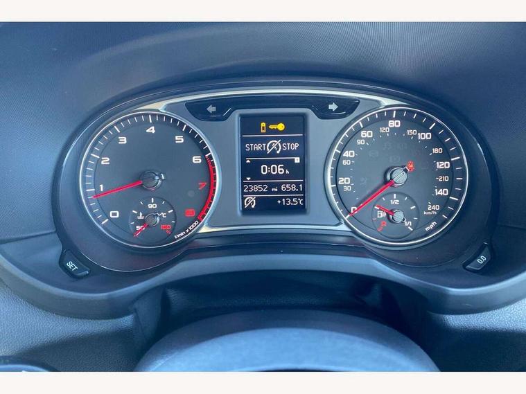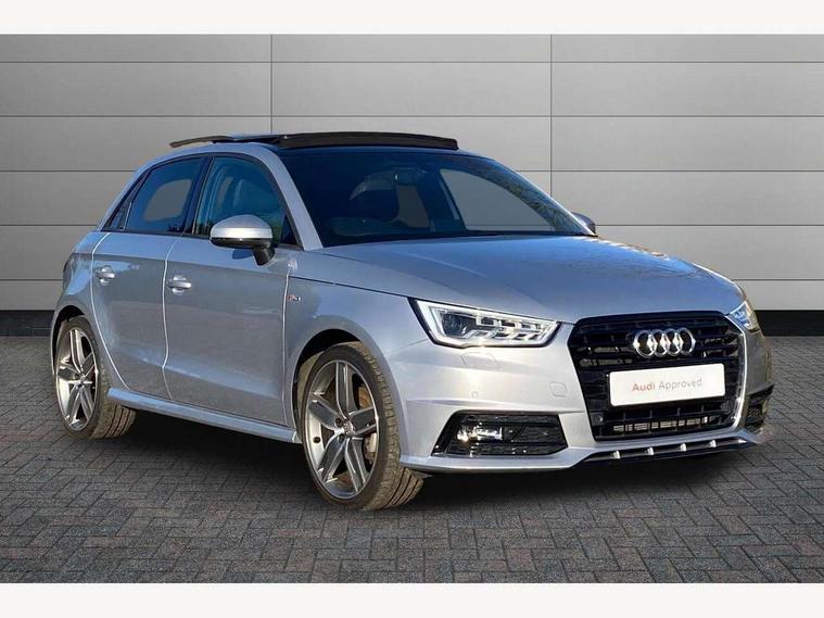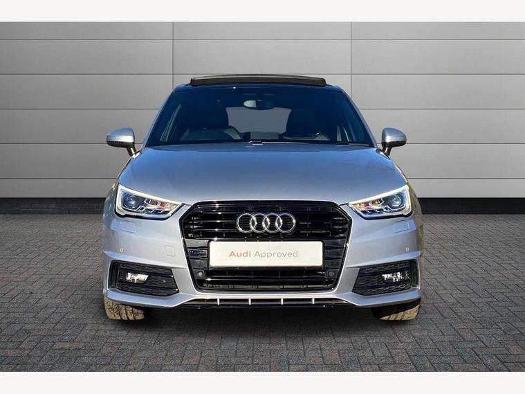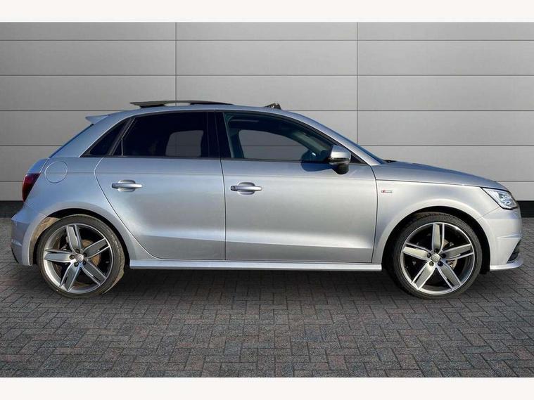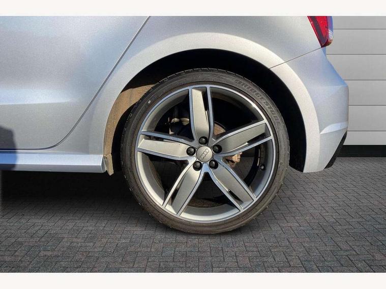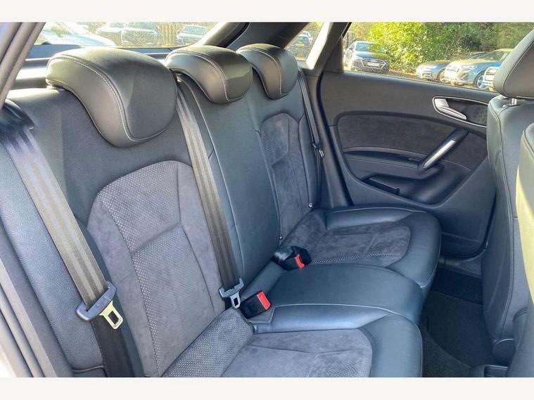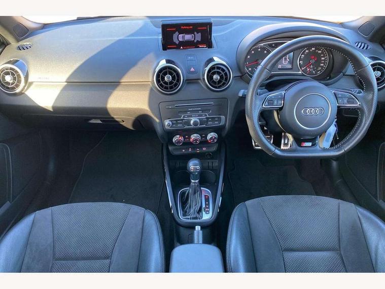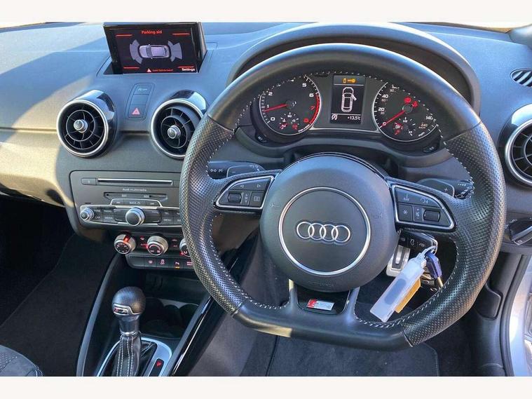 Audi drive select, Electro-mechanical PAS, Low washer fluid indicator, Service interval indicator, Voice control system, Additional SD card reader, Audi music interface, Bluetooth audio streaming, DAB Digital radio, Adaptive brake lights, Body coloured bumpers, Body coloured door mirrors, Electric adjustable door mirrors, Electric front windows, Electric rear windows, Front fog lights, Heat insulating glass, Heated door mirrors, Heated rear windscreen, Privacy glass, Rain and light sensors, Rear diffuser, Rear wiper, Roof spoiler, S Line body styling, Xenon plus headlights including automatic headlights, LED daytime running lights, LED rear lights, dynamic range control and headlight washers, 12V Accessory socket in centre console, 3 spoke flat bottom multi-function leather steering wheel including paddle shift, Adjustable rear head restraints, Black cloth headlining, Cupholders in centre console, Door sills trims with aluminium inlays, Electronic climate control (ECC), Front floor mats, Front head restraints, Height adjustable front seats, Illuminated glovebox, Isofix attachments on outer rear seats, Jack and tool kit, Leather gear knob, Leather handbrake, Lumbar adjustment for front seats, Rake/reach adjustable steering wheel, Split folding rear seats, Stainless steel pedals, Connectivity pack - A1, High-gloss black styling pack - A1, ABS/EBD, Brake assist function, Driver and passenger side airbags, Driver/Front Passenger airbags, EDL, ESP with ASR, First aid kit, Front and rear seatbelt reminder, Front passenger airbag deactivation, Head airbags, Height adjustable front seatbelts, Hill hold assist, Tyre pressure monitor, Warning triangle, Locking wheel bolts, Remote control central locking, Thatcham category 1 alarm + immobiliser, Aluminium trim, High gloss black air vent sleeves, Tyre repair kit,