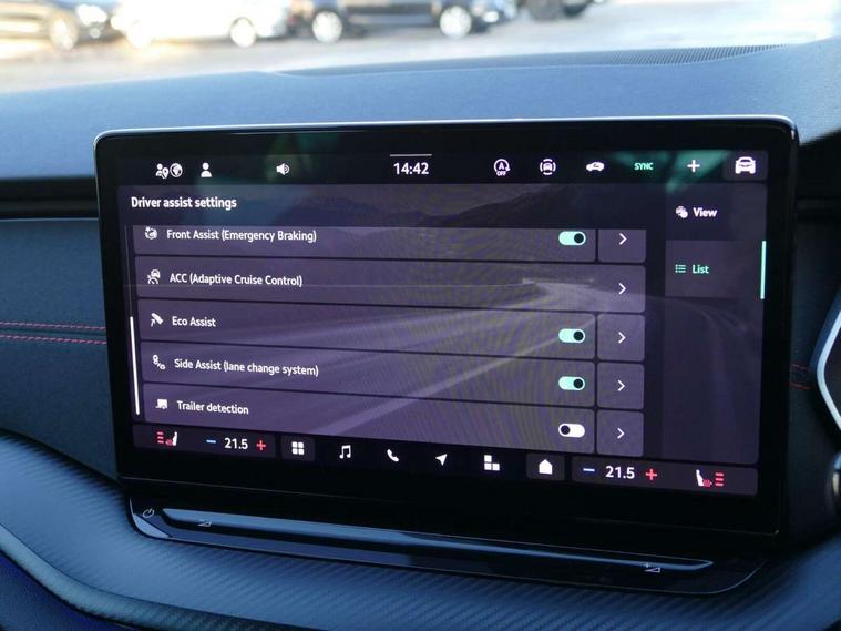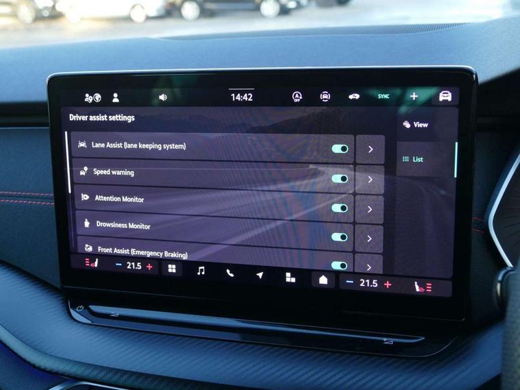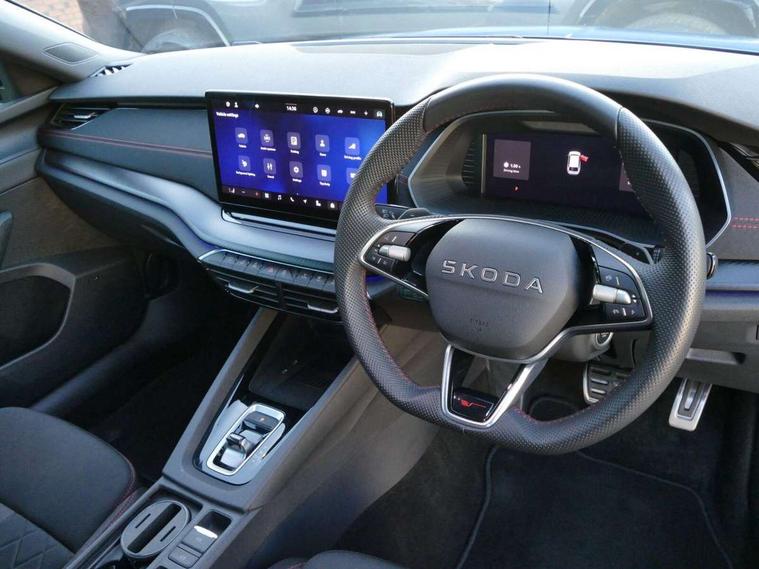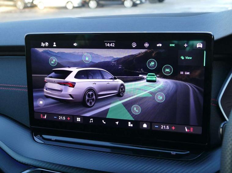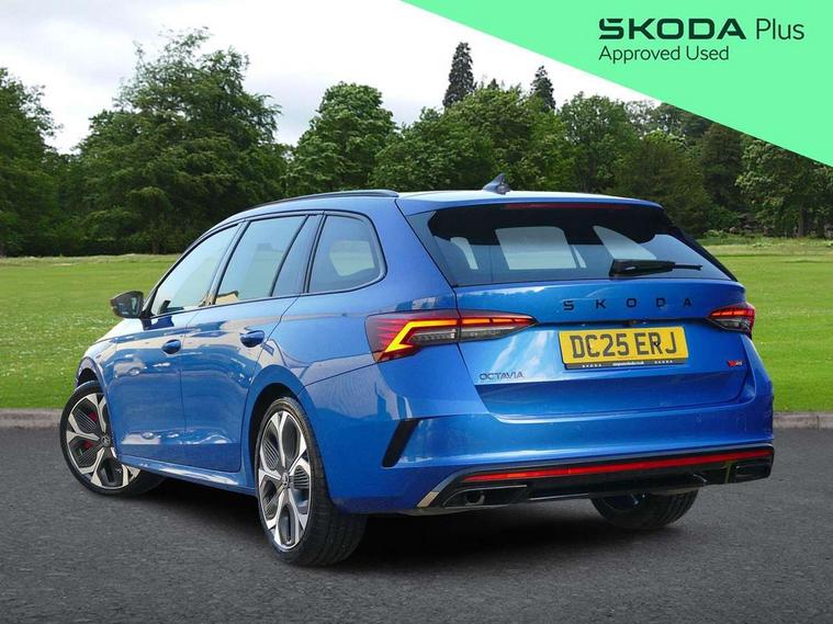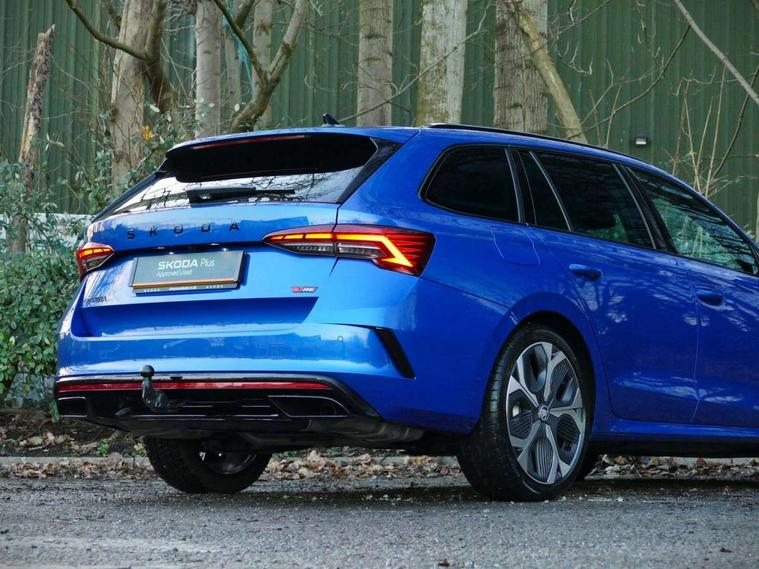 1x USB Typc C port in rear view mirror, 4x USB Type C ports - 2x in front centre console and 2x in rear (45W), Drive mode selection, Driver fatigue sensor, eCall emergency system, Electronic engine sound, Front assist system, Progressive dynamic steering, Traffic sign recognition, Turn Assist, Virtual Cockpit - 10.25" digital display, Voice control system, Wireless charging (15W) with cooling function, Wireless SmartLink for Apple CarPlay and Android Auto, Electronically controlled limited slip differential, vRS suspension, 13" touchscreen display with navigation, DAB Digital radio, Aero front windscreen wipers with intermittent function, Auto dimming rear view mirror, Black sport exhaust pipes, Body colour bumpers, Body colour door handles, Bumpers with rear red reflector strip, Electric front and rear windows, Exterior gloss black sports styling including front grille, window surrounds, door mirrors and badging, Gloss black diffuser, Gloss black roof rails, Gloss black spoiler, Heated rear windscreen, High beam control, High level third brake light, Ice scraper in fuel cap, LED daytime running lights, Logo projection in front doors, Rain and light sensors, Rear fog light on one side and reversing lights on both sides, Rear privacy glass, Rear side wing doors, Rear window wiper, Unique vRS bumpers and exterior styling, 12 volt socket in boot, 2x umbrella in door, 3 rear headrests, 3 seat bench in 2nd row, 4 foldable roof handles, Aluminium pedals, Front head restraints, Front sport seats, Heated front seats, Illuminated glovebox, Interior door handles in dark chrome, Jumbo Box storage, Luggage compartment lighting x2 lights, Mechanical rear seat release from boot, Single front passenger seat, Steering wheel in black leather with black stitching, Storage compartments in left and right of boot, Sun visors with mirrors, Sunglasses storage, Three spoke leather sports multifunction steering wheel with paddles, Ticket holder, Unsplit rear bench seat, split folding backrest with centre armrest with cupholder, Waste bin in door panel, Comfort package - Octavia Estate, Family package - Octavia, Light and view package plus - Octavia, vRS Design Selection pack - Octavia, 3x3 point rear seat belts, Alarm with interior monitoring, tilt sensor and back up horn, Curtain airbags and front side airbags, Driver and front passenger airbags, Drivers knee airbag, Electronic parking brake, ESC including ABS, EBV, MSR, ASR, EDS, HBA, DSR, Front central airbag, Hill hold assist, ISOFIX on front passenger seat and outer rear seats, Passenger airbag deactivate switch, Red brake calipers, Three point seat belts in front and rear, Two tone horn, Tyre pressure monitor, Visual and acoustic seat belt reminder, Warning reflectors in front door, Anti-theft wheel bolts, Keyless entry and start/stop, Remote central locking, Gloss black air vent surrounds, 19" Elias anthracite alloy wheels,