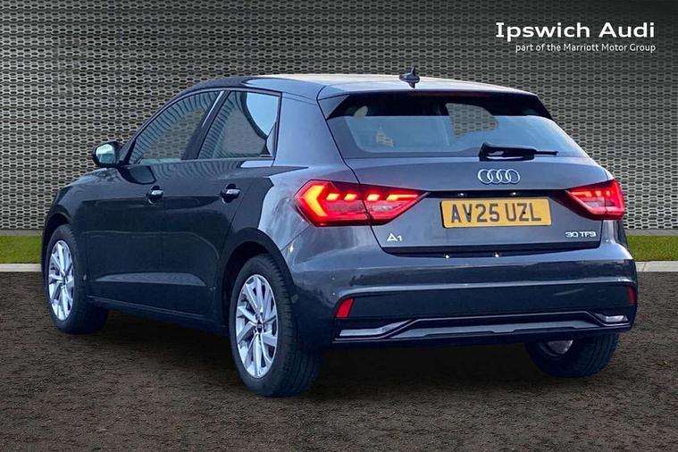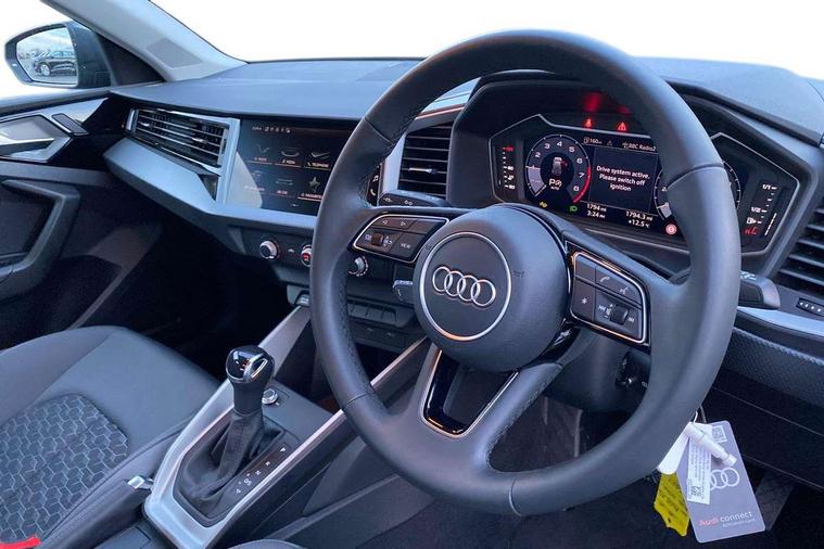 10.25" Digital instrument cluster display screen, Audi connect safety emergency and service including E-call, Audi drive select, Audi smartphone interface, Automatic start/stop system, Bluetooth interface, Driver's information system, Electromechanical power steering, Lane departure warning system, Service interval indicator, Speed limiter, Voice control system, Washer fluid level indicator, Dynamic suspension, 1 x SDXC card reader, 1 x USB type C and 1 USB type A charging points, Audi music interface, Bluetooth audio streaming, DAB Digital radio, MMI radio plus with 8.8" colour MMI display screen and MMI touch, Adaptive brake lights, Auto dimming rear view mirror, Body coloured bumpers, Body coloured door mirrors, Electric front and rear windows, Front side air inlets in grained matt black and C frame in titanium black, Heat insulating glass windscreen and side windows, Heated rear windscreen, LED headlights with LED rear lights + dynamic rear indicators, Radiator grille in matt titanium black, Radiator protective grille frame in matt aluminium silver, Rain and light sensors, Rear fog lights, Rear wiper, Side front spoiler lips in grained matt black, Titanium black matt diffuser, 12V socket in centre console with two cup holders, 3 rear seats, Door sills trims with aluminium inlays, Driver and passenger seat with manual height adjust with forward and backwards adjustment, Front head restraints, Front/rear floor mats, Height and reach adjustable steering wheel, Illuminated glovebox, ISOFIX child seat mounting in front passenger and rear outer seats, Leather gear knob with aluminium trim, Leatherette handbrake grip, Luggage compartment light with front and rear reading lights, Lumbar adjustment for front seats, Novum cloth upholstery with front sport seats, Rear head restraints, Split folding rear seats, Titanium grey cloth headlining, 3x3 point rear seatbelts, Audi pre-sense front with pedestrain and cyclist recognition, Brake assist function, Driver and front passenger airbag with front side and head airbags, Electronic Stability Control including ABS, EBD, ASR and EDL, Front and rear seatbelt reminder, Front passenger airbag deactivation switch, Hill hold assist, Seatbelt height adjustment for front seats, Seatbelt monitoring, Tyre pressure warning light, Warning triangle and first aid kit, Anti theft alarm, Anti theft wheel bolts and loose wheel warning, Immobiliser, Remote central locking with 2 remote folding keys, Aluminium trim for control switches, air vents and digital instrument cluster, Silver grey accent areas including air vents, door handle recesses and centre console in diamond paint finish, Slate grey inlays polygon structure in fine paint finish,