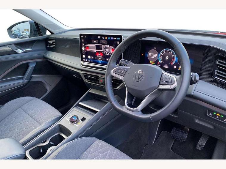 Adaptive cruise control (ACC), Advanced driver attention and drowsiness monitor, Bluetooth mobile phone interface, Digital Cockpit Pro - 10.25" high resolution dash display screen with customisable menus and information, Dynamic road sign display, E-Sim card for online connectivity, eCall emergency call service, Front Assist - Autonomous emergency braking with pedestrian and cyclist monitoring, Lane change system, Side assist, Rear traffic alert and Exit warning system, Lane keeping system Lane Assist, Multifunction front facing camera, Oncoming vehicle braking when turning including swerve support, Park assistance plus with front and rear parking sensors, Power assisted steering with speed sensitive, Start/stop system with regenerative braking, Warning signal and warning light for front and rear seatbelts not fastened, Wireless App-Connect, Front wheel drive, Digital radio reception (DAB), Diversity antenna for FM reception, Ambient lighting with logo projection, Auto dimming interior rear view mirror, Automatic headlight control system, Body coloured bumpers and air intake with chrome trim, Body coloured door handles, Body-coloured exterior mirror housings, Coming/leaving home lighting function, Heat insulating glass in side and rear windows, Heat insulating windshield, Heated rear window, High level 3rd brake light, Illuminated door handle recesses, Illuminated lightline between headlamps, Rain sensor windscreen wipers, Rear fog light on one side, reversing light on both sides, Rear side wing doors, Rear wiper, 12V outlet in center console rear and in luggage compartment, 12V socket in centre console, 3 bench rear seats in 2nd row, Air care climatronic 3 zone air conditioning system with rear air conditioning control panel, Carpet mats, front and rear, Centre console with illuminated storage compartment with sliding cover and two drinks holders, Ceramique headlining, Door and side trim panel in foam film and woven fabric, Front centre armrest, ISOFIX anchors for child seats on outer rear seats and front passenger seat compatible with i-Size, Mechanical rear seat release, Power adjustable lumbar support in front, Rear bench seat, split folding, longitudinally movable and folding with load-through hatch and centre armrest, Safety optimised front head restraints, Single front passenger seat, Sun visors with illuminated vanity mirrors, Three rear head restraints, Variable luggage compartment floor, Comfort package incl. Memory feature for Park assist and Safelock - Tiguan, Design package - Tiguan, 3 point seat belt for centre rear seats, 3 Point seat belts in front with pretensioners, 3 point seatbelts in outer rear with ECE label, Driver and front passenger airbag with front passenger airbag deactivation, Electronic parking brake with auto hold, Front and rear curtain airbags, Front and rear side airbags, Front centre airbag, Front disc brakes, Manual child proof rear door locks, Rear disc brakes, Two tone horn, Warning triangle, Anti theft wheel bolts, Soul instrument panel,
