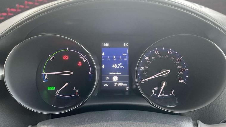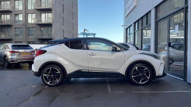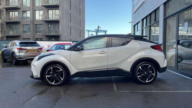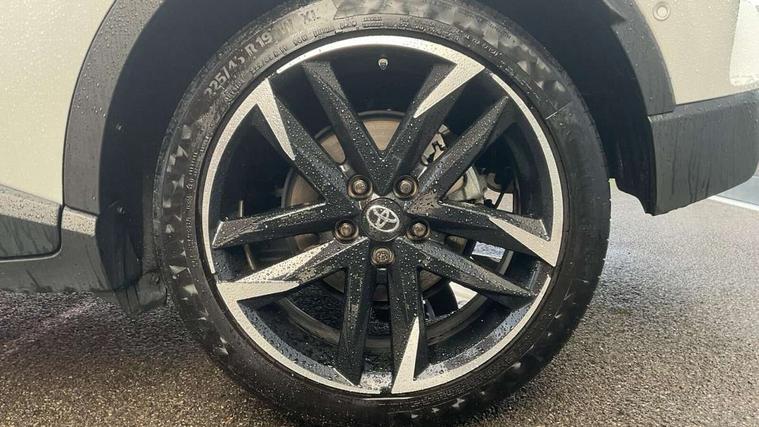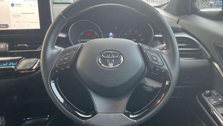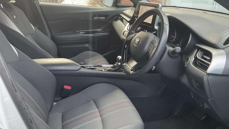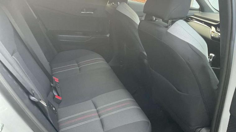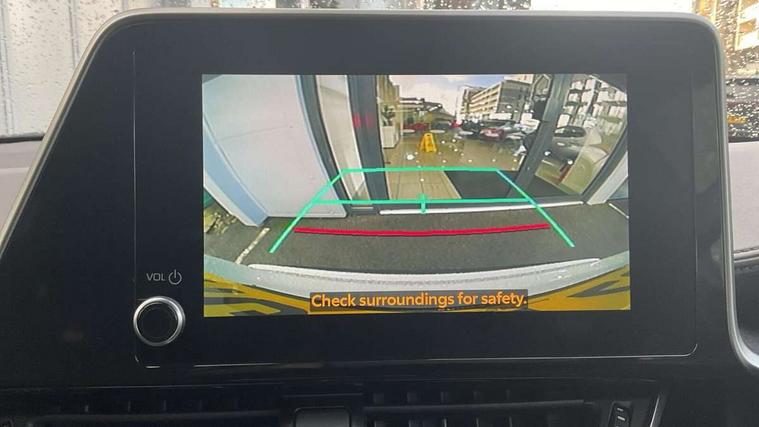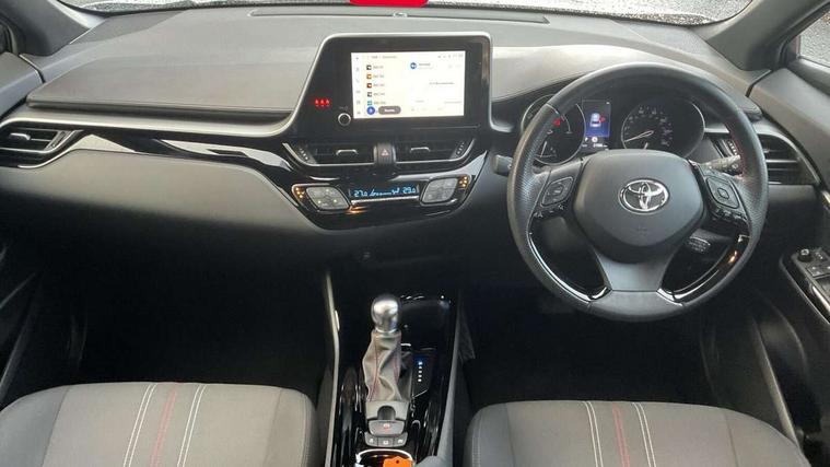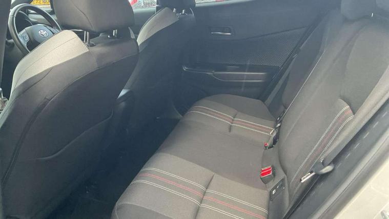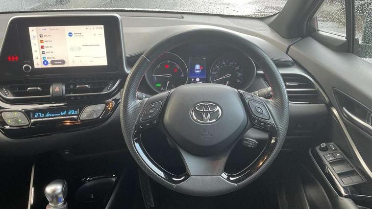 4.2" coloured TFT screen for multi-information display, Adaptive cruise control, Apple car play and Android auto, Bluetooth connectivity, E-call, Electric power steering, Hybrid system indicator, Lane departure alert with steering control, Lane trace assist, Push button tailgate release, Remote boot door release in cabin, Remote boot door release in key, Reversing camera, Road sign assist - RSA, Simple Intelligent parking assist, Smart voice assist, Touch 2 Go navigation system, Trip computer, Voice recognition, Wireless smartphone integration, Vehicle Stability Control (VSC), 6 speakers, AM/FM radio, DAB Radio (Digital Audio Broadcasting), Toyota touch 2 multimedia system with 8" display, USB connector, Wi-fi connectivity, Adaptive front light system, Adaptive LED Headlights, Anti-jam protection on power windows, Auto high beam, Auto up and down function on all power windows, Automatic headlight levelling, Automatic headlights, Automatic headlights cut-off, Black and body coloured rear bumper, Black upper front grille, Body colour door handles, Body colour door mirrors, Body coloured front bumper, Boot door release with push button, Chrome front lower bumper, Electric heated door mirrors, Follow me home headlights, Front and rear power windows, Front spoiler lip in black, Headlight cut off reminder, Honeycomb lower front grille, LED daytime running lights, LED fog lights, LED front light guide, LED High mounted stop light, LED rear brake lights, LED rear combination lights, Noise reduction layer on front windows and windscreen, Power adjustable door mirrors, Privacy glass, Rain sensor, Rear sequential indicators, Rear side wing doors, Rear spoiler, Rear tailgate, Rear window defogger, Rear window wiper, Shark fin antenna, UV-filter on driver and passenger windows, UV-filter on rear windows, Variable front intermittent wipers, 12v power outlet - front, 3 rear headrests, 3 seat bench in 2nd row, 3 spoke perforated leather steering wheel, 60/40 split folding 2nd row rear seats, Adjustable rear headrests, Adjustable speed limiter switch on steering wheel, Assist grips front and centre pillar, Audio and telephone switches on steering wheel, Black front door assist grips, Blue ambient lighting on front cup holders, Blue ambient lighting on front doors, Boot light, Chrome interior door handles, Cloth upholstery, Driver and front passenger personal light, Driver and front passenger Whiplash Injury Lessening seats, Driver and passenger seatback pockets, Dual zone automatic air conditioning, Floor mats, Front cupholders, Front head restraints, Front sports seats, Glovebox with internal light, Hard tonneau cover, Heated driver and front passenger seats, Hooks for luggage holding net, Humidifying Nanoe air purifier, Illuminated entry system, Isofix attachments on outer rear seats, Leather gearshift, Light on driver sun visor, Light on passenger sun visor, Manual telescopic steering wheel, Manual tilt steering wheel, Manually height adjustable driver seat, Manually height adjustable front passenger seat, Manually reclining driver seat, Manually reclining front passenger seat, Manually sliding driver seat, Manually sliding front passenger seat, Microphone on front personal light, Mirror on driver sun visor, Mirror on passenger sun visor, Multimedia switches on steering wheel, Pollen filter, Power adjustable lumbar support on driver seat, Shopping bag hooks, Single front passenger seat, Slow opening on lower glovebox, Voice recognition switch on steering wheel, Tech with parking sensor pack - C-HR, 16 Disk front wheel brake, 3x3 point rear seatbelts, ABS+EBD+Brake assist, Electronic parking brake, Front and rear seatbelt reminder, Front passenger airbag on/off switch, Hill start assist control (HAC), Pre collision system with pedestrian detection, Pre-tensioners and force limiters, Rear door child safety locks, SRS Airbags - Driver + Front passenger, front side, front and rear curtain and driver's knee airbags, Toyota safety sense, Tyre pressure monitoring system, Tyre pressure warning system, Acoustic vehicle alert system (AVAS), Glass-breaking alarm sensors, Immobiliser, Intrusion alarm, Intrusion sensor, Motion sensor alarm, Power door locks, Power passenger window lock, Remote central locking, Black lower dashboard, Black upper dashboard, Piano black console, Silver deco line on upper dashboard, 19" Black machined alloy wheels, Tyre repair kit,