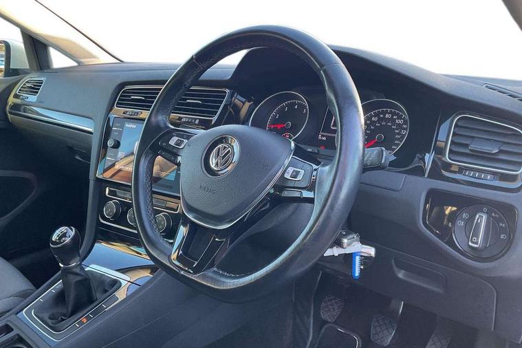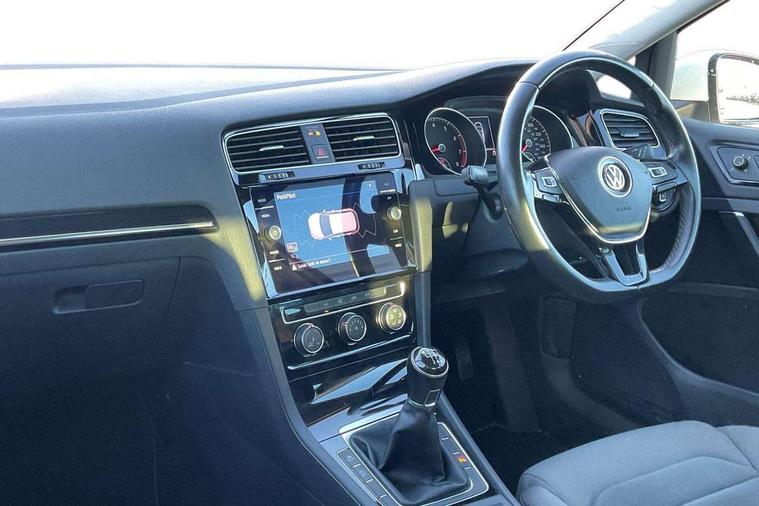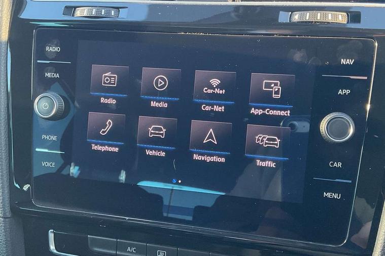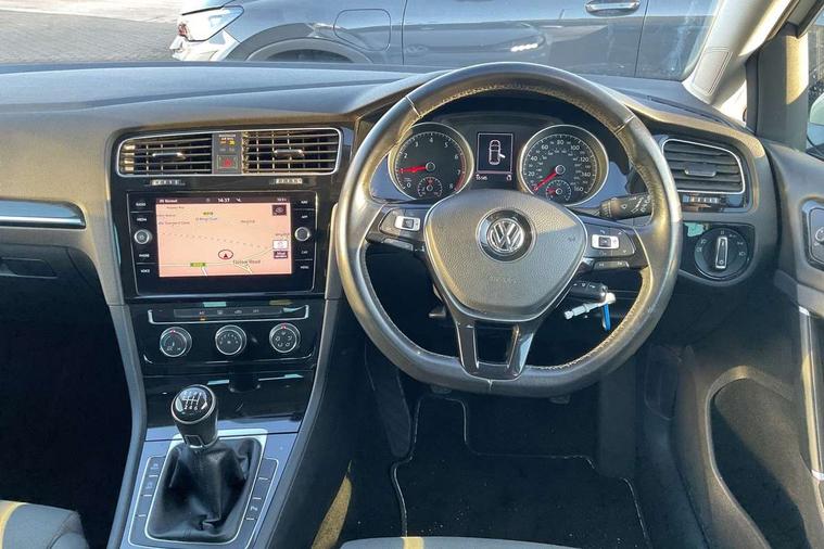 App-Connect, 'Lights On' Reminder warning buzzer, 8" touch screen, Adaptive Cruise Control with pedestrian detection and speed limiter, Bluetooth hands free telephone connection, Brake pad wear indicator warning light, Driver alert system, Driver profile selection, Exterior temperature gauge, Front assistant collision mitigation, Instrument cluster in white, Multifunction computer, PAS - speed related, Rev counter, Trip and service interval display, Ultrasonic front and rear optical and audible parking sensors, Warning buzzer and light for front seatbelts unfastened, Lowered sports suspension, XDS electronic differential lock, CD/MP3/WMA, USB and SD card reader, aux-in, Composition media system, DAB Digital radio, Auto dimming rear view mirror, Automatic coming/leaving home lighting function, Automatic headlights, Black front air intake and radiator grille with chrome insert, Black rear diffuser, Body colour bumpers, Body colour door handles, Body colour door mirrors, Chrome grille surround, Electric front windows, Electric rear windows, Electrically adjustable and heated door mirrors, Heat insulated tinted glass 65% light absorbing from B pillar back, Heated rear windscreen, LED daytime running lights, LED front fog lights with static cornering light function, LED rear lights, Rain sensor, Rear roof spoiler, Rear windscreen washer and wiper with interval delay, 12V socket in luggage compartment, 3 rear headrests, 3 spoke steering wheel, 60/40 split folding rear seat, Bag hook in luggage compartment, Boot lashing points, Cooled glovebox, Courtesy light delay, Cover for storage compartment in centre, Dust/pollen filter, Front + rear carpet mats, Front centre armrest with storage box and rear air vents, Front passenger seat height adjust, Front seat back storage pockets, Grab handles, Height/reach adjust steering wheel, Illuminated vanity mirrors, Isofix preparation for 2 rear child seats, Load through provision with rear centre armrest and cupholders x2, Luggage compartment cover, Luggage compartment lighting, Multifunction leather steering wheel with leather gear knob/handbrake grip, Overhead storage box, Pearl grey headlining, Storage box in luggage compartment, Storage compartments in doors, Sun visors, Variable boot floor, height adjustable and removable, Ambient lighting pack - Golf, Mirror pack - Golf, 3 point height adj front seatbelts + pretensioners, 3 rear 3 point seatbelts, ABS, Automatic post collision braking, Child locks on rear doors, Driver/Front Passenger airbags, Driver/Passenger whiplash optimised head restraints, Drivers knee airbag, Electronic parking brake with auto hold, ESP with EDL + ASR, Front and rear curtain airbags, Front passenger airbag deactivation, Front side airbags, Pre crash system, Tyre pressure monitor, Alarm with interior protection, Electronic engine immobiliser, Remote central locking with 2 remote folding keys, Chrome-plated light switch surround, Piano black centre console, Tumbler decorative inserts, Steel space saver spare wheel,