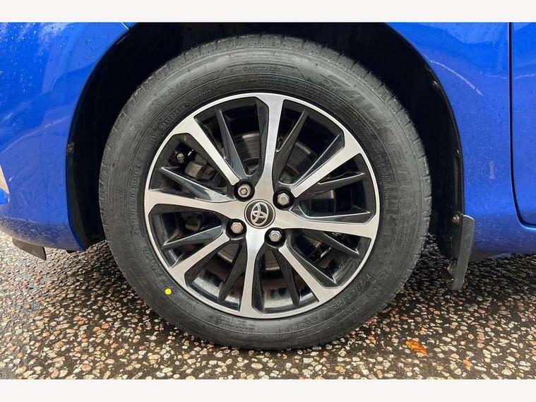 Bluetooth system, Cruise control, External temperature gauge, Fuel indicator with low level warning, Lane departure warning system, Lights on warning, Multi-information display, Power Steering, Push button starter, Rear parking sensor, Rear view camera, Road sign assist - RSA, TFT display screen, Touch 2 Go navigation system, Trip computer, 6 speakers, Auxiliary input socket, DAB Digital radio, Steering wheel mounted audio/telephone controls, Touch 2 touchscreen Radio with iPod connectivity, USB connection, 2 speed front wipers + intermittent wipe, Auto high beam, Auto up and down function on drivers window, Body colour bumpers, Body colour door handles, Body coloured door mirrors, Chrome fog light surround, Daytime running lights, Door mirror integrated indicators, Drivers window one touch up/down, Electric adjustable heated door mirrors, Electric front windows, Follow me home headlights, Front fog lights, Green tinted glass, Heated rear windscreen, Projector headlamps, Rain sensitive windscreen wipers, Rear wiper, Turning signal integrated indicators in door mirrors, 3 spoke leather steering wheel, 60/40 split folding rear seat, Active headrests, Boot light, Cloth upholstery, Driver seat height adjust, Driver/passenger vanity mirrors with covers, Dual zone automatic climate control, Front cupholders x 2, Front map reading lights, Front seats with lumbar support, Glovebox, Height adjustable front head restraints, Height adjustable rear seat head restraints (x3), Isofix system on outer rear seats, Leather gear knob, Leather parking brake handle, Rear cupholder, Removable rear parcel shelf, Sliding front seats, Tilt/telescopic steering column, 3 point seatbelts on all rear seats, ABS+EBD+Brake assist, Collision mitigation braking system, Curtain airbags, Driver and passenger airbags, Drivers knee airbag, Emergency brake light system (EBS), Front passenger airbag on/off switch, Front seatbelt reminder, Front side airbags, Height adjustable front seatbelts with pre-tensioners and load limiters, Hill start assist control (HAC), Passenger airbag deactivate switch, Rear child proof door locks, Rear seat belt reminder, Road sign information display, Seatbelt warning lamp and buzzer, Toyota safety sense including Road sign assist, Pre collision system, auto high beam and lane departure alert), Tyre pressure monitoring system, Vehicle stability control VSC + traction control, Engine immobiliser, Remote central locking, Instrument panel in grey, Space saver spare wheel,