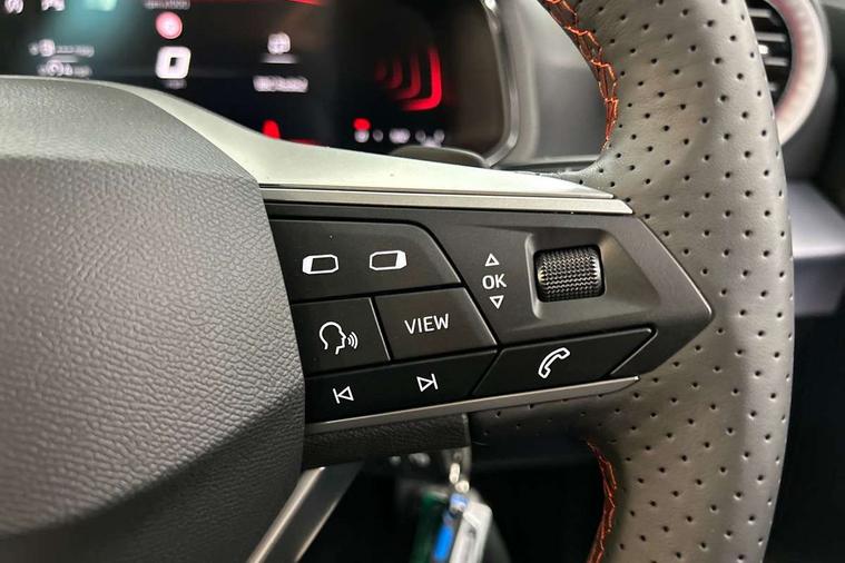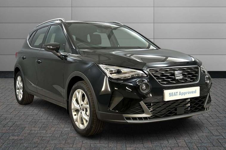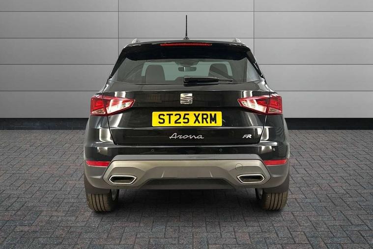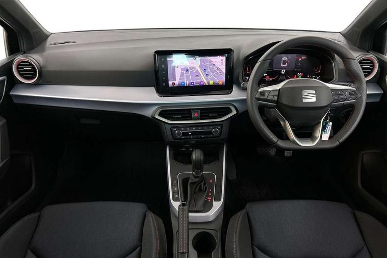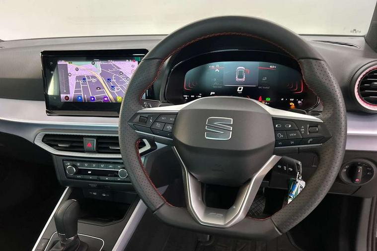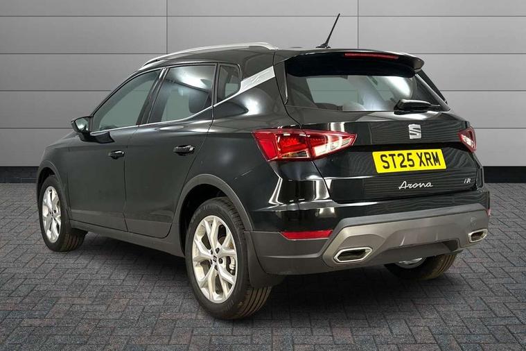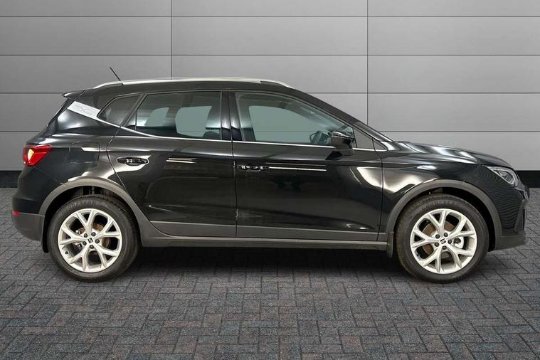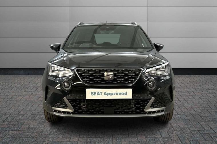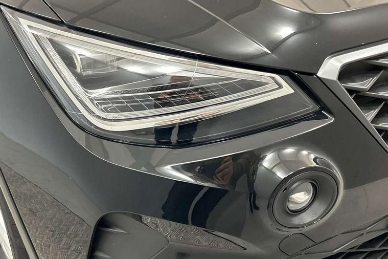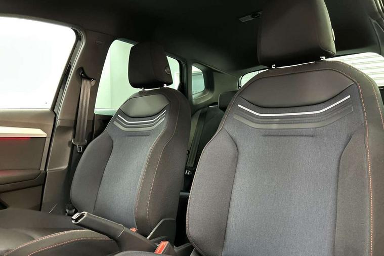 'Lights On' Reminder warning buzzer, 8" Digital cockpit, Digital clock, E-call, Electric speed sensitive power steering, Full link smartphone integration with mirror link, wireless apple carplay, Google android auto + USB Type C cable for apple and android devices, Lane keeping system, Low fuel warning light, Outside temperature display, RPM counter, SEAT Drive profile - Four different models normal-sport-eco-individual, steering response, throttle response and gear shifts mode, Trip computer, Wireless phone charger, 6 speakers, 9.2" colour touchscreen with navigation system, voice control and USB port (type c), Bluetooth interface for hands free and audio streaming, DAB digital radio and AM/FM radio, Steering wheel mounted audio controls, Anti theft roof antenna, Auto dimming interior rear view mirror, Automatic activation of hazard warning lights, Body coloured bumpers, Body coloured door handle inserts, Chrome roof rails and window surrounds, Dark tinted rear windows, Electric front/rear windows, Electrically adjustable, heated and folding door mirrors, Front fog lights with cornering function and rear fog light, FULL LED automatic headlights with dynamic headlight range control, coming and leaving home, LED daytime running lights, LED rear tail lights and licence plate lights, Protective side mouldings, Rain sensing wipers, Rear side wing doors, Rear spoiler, Rear window wash/wipe, Roof colour door mirrors, Third brake light, Twin exhaust pipe styling hidden exhaust pipe, Visible VIN plate, 2 cupholders, 3 seat bench in 2nd row, 60/40 split folding rear seat, Aircare filter, Black interior roof, Cloth upholstery, Double boot floor, Driver sunvisor with covered mirror + card holder, Dual zone climate control, Front courtesy light with front reading lights, Gear shift indicator, Height adjustable front seats, Height/reach adjustable steering column, Illuminated air vent surrounds, Illuminated boot, Instrument lighting with brightness control, Interior ambient lighting, Interior light in footwell, central console and door panel, ISOFIX points in outer rear seats with top tether anchorage points, Passenger sunvisor with vanity mirror, Perforated flat bottomed leather steering wheel/gear knob/handbrake with red stitching and FR logo, Potentiometer, Single front passenger seat, Steering wheel mounted gearshift paddles, Two front and three rear height adjustable headrests, Interior chrome pack - Arona, Safe and driving pack (S) - Arona, 3 point seatbelts on all rear seats, ABS, Active front headrests, Child locks on rear doors, Driver and front passenger airbags with front passenger airbag de activation, front side and curtain airbags, Emergency Brake Assist (EBA) and front assist, Front and rear seatbelt reminder, Hill hold control, Multi-Collision braking, Tiredness recognition system, Traction control, Tyre pressure monitoring system, Alarm with back up horn with tow away protection, Deadlock, Electronic engine immobiliser, Locking wheel bolts, Remote central locking, Titan black dashboard, 17" Dynamic alloy wheels,