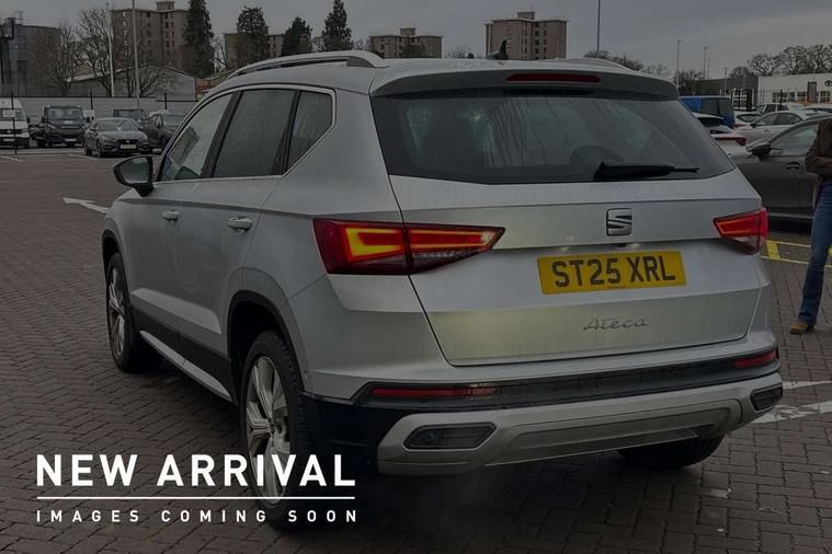 8" Digital cockpit, Colour multi-function on board computer display, E-call, Electric tailgate, Outside temperature gauge, Progressive power assisted steering, Rear view camera, SEAT drive profile with driving experience button - Normal, Sport, Eco and Individual mode, gearshift, steering and throttle response, Self parking functionality (includes front and rear parking sensors), Start/stop system, Trip computer, wired and wireless full link smartphone integration, Wireless phone charger, Steering wheel mounted audio/phone controls, Black wheel arch surrounds, Body colour bumpers, Chrome front grille frame, Chrome roof rails, Chrome side window trim, Dark tinted rear windows, Daytime running lights, Door mirrors with welcome light silhouette, Dynamic headlight range control with self adjusting whilst driving, Electric adjustable/heated/folding door mirrors, Front and rear electric windows, Front grille hot stamping, Full LED headlamps with lens and LED front fog lamps with cornering function, Heat reflecting windscreen, Illuminated aluminium front door sill, LED 3rd brake light, LED rear tail lights with dynamic indicators, Rear exhaust tailpipe, Rear fog lights, Rear side wing doors, Rear wash/wipe, Reflex silver side mouldings, Variable front intermittent wipers, 12V socket in front, 3 seat bench in 2nd row, 60/40 split folding rear seat, Dinamica upholstery with front comfort seats, Drawer under right front seat, Dual zone climate control, Front and rear head restraints, Front centre armrest, Front seat back storage pockets, Height adjustable driver and passenger seat with lumbar adjustment, ISOFIX points in outer rear seats with top tether anchorage points, Leather sports steering wheel and gear knob, Rear armrest and easy back seat release mechanism from boot, Single front passenger seat, Steering wheel mounted gearshift paddles, Convenience pack - Ateca, Interior lighting pack - Ateca, Navigation system pack with DAB - Ateca, Safety and driving pack (M) - Ateca, Safety and driving pack with attention and drowsiness assist - Ateca, 3x3 point rear seatbelts, ABS, Traction control system (TCS), Electronic stability control (ESC) and Electronic differential lock system (XDS), Airbags - Driver and front passenger airbag with deactivation, front side, two curtain and driver's knee airbags, Electric parking brake with auto hold function, Front and rear seatbelt reminder, Hill hold control, Manual rear child locks, Single tone horn, Tiredness recognition system, Tyre pressure monitoring system, Alarm, Keyless entry, Locking wheel bolts, Remote central locking, Chrome interior detailing, 18" Brillaint silver alloy wheels,