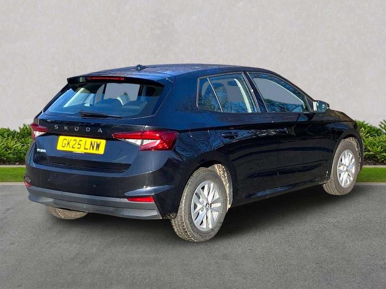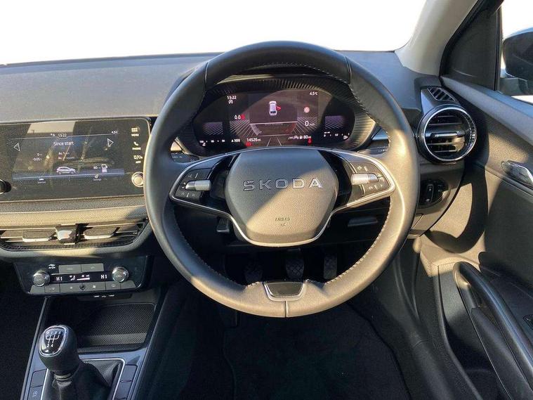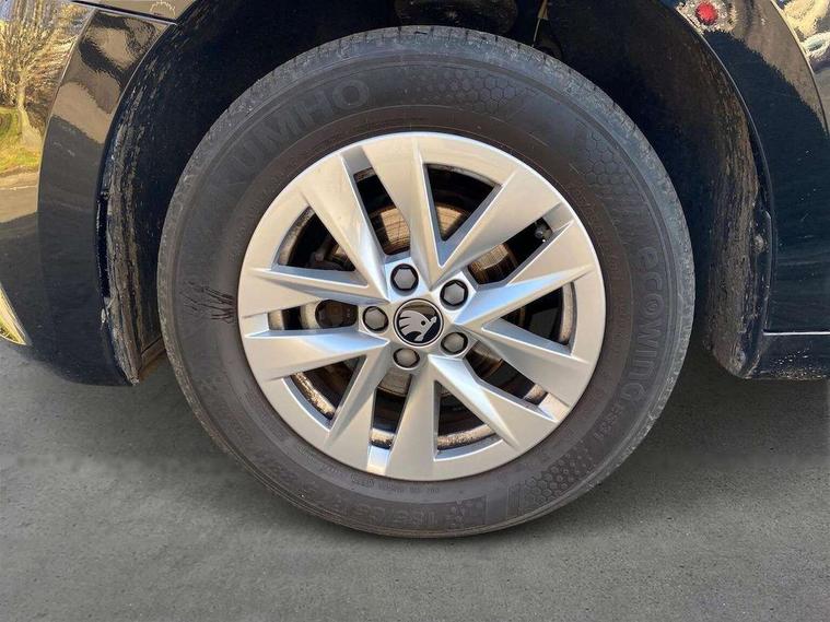 8" Digital instrument display, Advanced driver attention and drowsiness monitor, Bluetooth connection, Electromechanical power steering, Exterior temperature gauge, Service interval indicator, Traffic sign recognition, Wireless SmartLink for Apple CarPlay and Android Auto, 6 Speakers (4 in front and 2 in rear), 8.25" Skoda infotainment touchscreen display, Auxiliary socket for external MP3 player, DAB digital radio reception, Auto dimming rear view mirror, Body colour door mirrors, Body coloured bumpers, Door mirror integrated indicators, Front and rear electric windows, Front window wiper intermittent control, Headlight range control - Automatic, Ice scraper in fuel cap, LED 3rd brake light, LED daytime running lights with coming and leaving home feature, LED rear lights, Rear LED fog light, Rear side wing doors, Rear window wiper with washing nozzles, Roof mounted spoiler, SKODA tailgate lettering in chrome, Unique dark chrome design logo on alloy wheels, 2 reading lights in front and 2 reading lights in rear, 3 rear headrests, Backrest split and folding, Central console with removable cup holder and storage box, Chrome handbrake release button, Dual zone air conditioning with climatronic electronic control, Fabric upholstery, Front centre armrest, Gearshift knob/handle in leather, Grain satin black interior door handles, Hand brake lever handle in leather, Height adjustable front headrests, Height adjustable front seats, Height adjustable steering wheel, ISOFIX and TopTether anchorage points to the outer rear seats, ISOFIX and TopTether on the front passenger seat, Luggage compartment lighting, Manually adjustable lumbar support in front seats, Pollen filter, Rear seat bench unsplit, Single front passenger seat, Skoda lettering on steering wheel, Storm grey headlining, Sun visors with mirror and airbag label on passenger side, Textile floor mats, Ticket holder, Umbrella in drivers door, 3-point height adjustable front seats belts with pretensioner and force limiter, Automatic warning lights in case of crash, Driver and passengers airbag with switch off function, e-Call+, ESC including ABS, MSR, ASR, EDS, HBA and XDS, Front and rear seat belt warning, FRONT ASSIST (AEB City and AEB Inter Urban), Front side airbags, Head airbags, One tone horn, Pedestrian protection, Three rear 3-points safety seat belts with pretensioner and force limiter including stop function for outer rear seat belts, Tyre pressure monitoring system, Anti-theft alarm system including immobiliser, interior monitoring, backup horn, and towing protection, Central locking with radio remote control, interior controls, SAFE function and 2 foldable keys, Black painted air vents, Grain satin black central console cover, Metallic grey upper decorative trim, Satin black door and side trim panel in front, Textile Kota grey lower decorative inserts, Anti-theft wheel bolts protection, Super-low rolling resistance tyres,