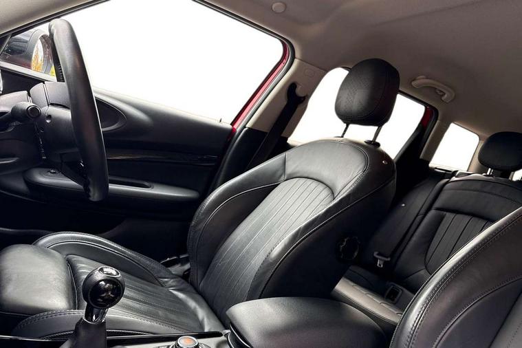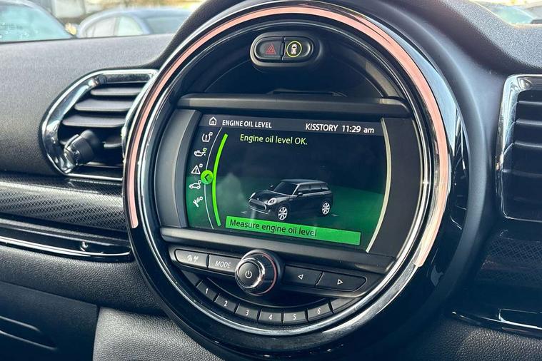 Active Guard incl speed limiting and lane departure functions with auto steering, and front collision warning with brake intervention, Automatic start/stop function with brake energy recuperation, Compatible mobile phone bluetooth with audio streaming, Digital cockpit, Electro-mechanical speed dependant steering assistance, Instrument cluster, Mini E-call, MINI TeleServices, On board computer, 6 Speed manual transmission including gear change indicator display, Double Vanos system, Fully variable valve control, High precision injection, FM tuner and DAB digital radio, Body colour fuel filler cap, Chrome line exterior, Chrome lower front grille grating, Chrome radiator grille bars, Door sill strips, Dynamic brake lights, Electric windows, Heated rear window, Heated windscreen washer jets, LED headlights with closed ring as daytime driving lights, LED rear light with union jack design, Left exhaust tailpipe with chrome finisher, Model logo, Model logo on rear doors, Rain sensor with auto headlights, Rear fog lights, Rear window wiper, Side scuttle panel with integrated indicator, Split rear doors, Sun/heat protection glass, White indicator lenses, 12V Accessory socket in centre console, 360L luggage compartment capacity, 4 lashing eyes in luggage compartment, 60/40 split folding rear seat, Chrome air vents, gear lever base and door handles, Chrome interior highlights, Cupholders, English handbook, Front and rear head restraints, Glove compartment, Height and length steering column adjustment, Interior lighting with 12 basic colours selectable via toggle switch in roof, Isofix rear child seat preparation, Leather gearshift lever and handbrake gaiters, LED reading lights, vanity mirror lights, front foot well light and spotlight on front seats, Manual air conditioning, MINI Yours fine walk nappa leather steering wheel with contrast stitching in silver and MINI Yours badge, Multifunction steering wheel, Storage compartments in doors, Sunvisors with vanity mirrors, Toolkit, Excitement pack - Clubman, Navigation pack - Clubman, 2 tone horn, 3 point seatbelts on all seats, 6 Airbags - front, side, head and seat belt tensioners, Anti-lock braking system (ABS), DSC - Dynamic Stability Control, Electronic handbrake, Front and rear disc brakes, Tyre pressure monitoring system, Alarm system with tilt sensor, monitoring doors, bonnet interior and tailgate, Auto drive away locking, Deadlocking function, Electronic vehicle immobiliser, Locking wheel bolts, Start/stop toggle with keyless go, Chrome line interior,