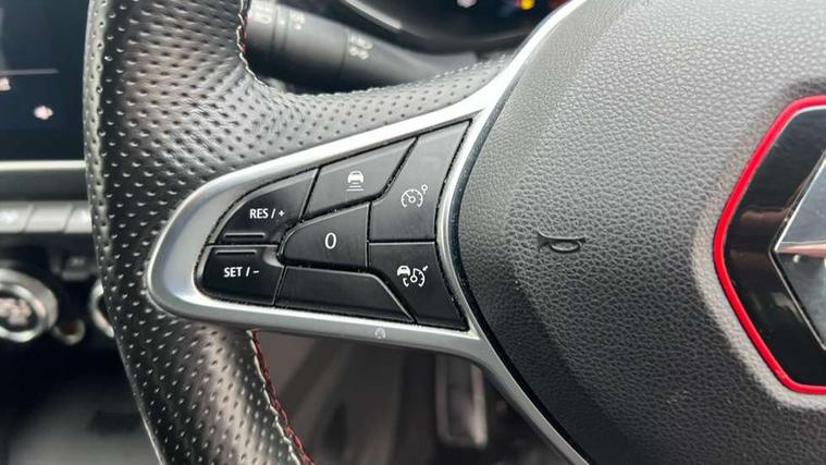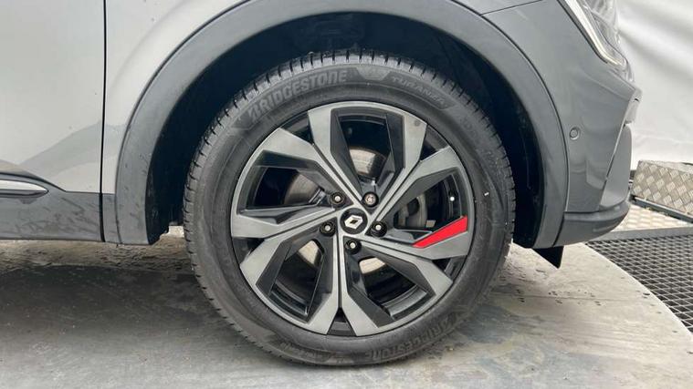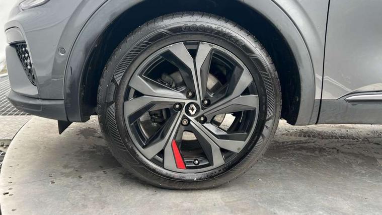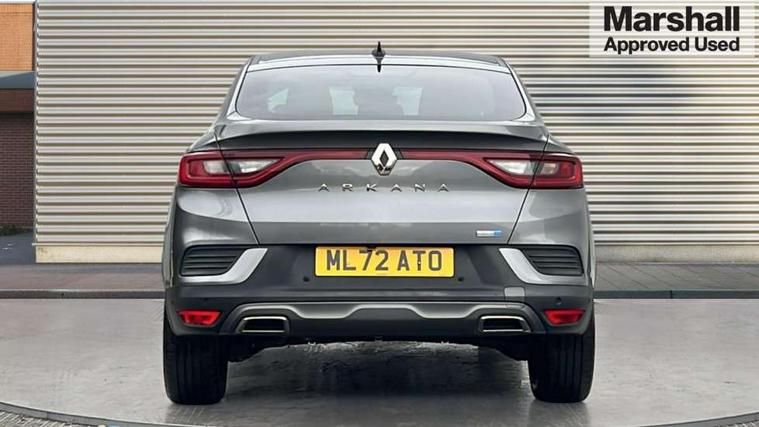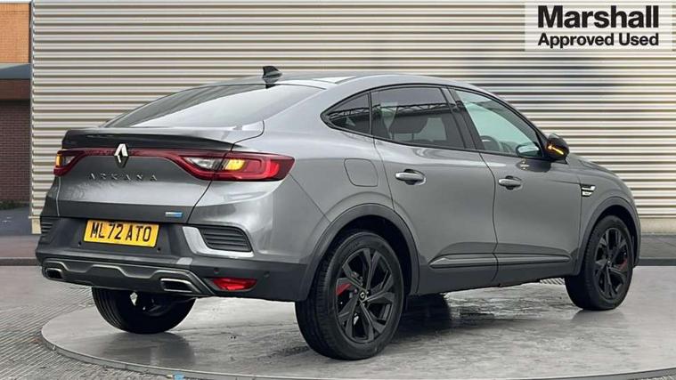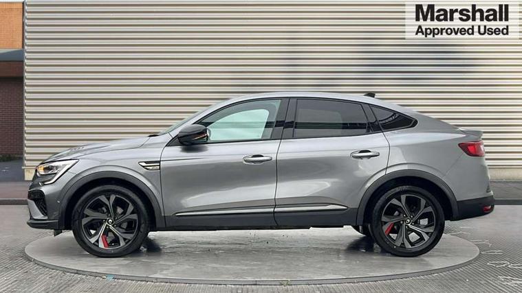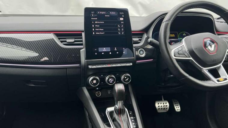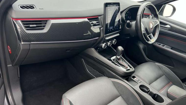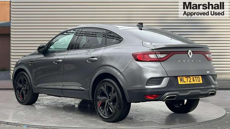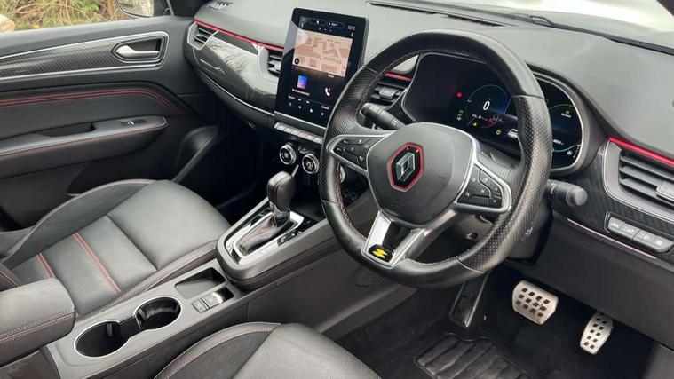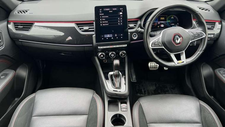 7" TFT Driver information display, Blind spot warning, Bluetooth system, EASY LINK 9.3" portrait touchscreen with navigation, Google search and traffic information, eCall emergency call system, Eco mode, EV button to activate pure mode, Front and rear parking sensors, Gear change indicator, Lane departure warning, Lane keep assist, Multi-sense - 3 driving modes and 8 ambient lighting, Rear cross traffic alert, Rear view camera, Renault automatic emergency assist, Smartphone integration compatible with Apple CarPlay and Android Auto, Traffic sign recognition with over speed prevention, Trip computer, Variable assistance electric power steering, Wireless phone charger, DAB radio, USB port, 3rd brake light, Auto dimming rear view mirror, Automatic headlights, Automatic high / low beam, Automatic windscreen wipers with rain sensor, Black side door protection with gun metal insert, Body coloured bumpers, C-shaped LED front signature lighting, Chrome decopart on wing (fender molding) with R.S. Line badge, Double chromed exhaust tailpipes elements, Extra tinted rear windows and tailgate, Frameless rear view mirror, Front and rear electric windows, Front bumper with F1 blade and honeycomb front grille, Front driver window with one touch facility and anti-pinch function, Front grille with chrome on upper part, Full LED headlights, Glossy black door mirror and lower window lining, Gun Metal front and rear skid plates, Heated rear window, R.S. Line badges on front wing and hatch door, Rain sensor, Rear windscreen wiper, Shiny black shark fin antenna, Side mirrors adjustable electrically, electrically foldable, with defrosting and temperature sensor, automatically foldable at vehicle closure, 3 seat bench in 2nd row, 60:40 split and fixed base rear seats, Aluminium pedals, Automatic climate control with combined filter, humidity sensor and AQS, Black interior roof lining, Carbon style dashboard, Central console with storage, Driver's seat height adjustment, Electrically adjustable front seats, Front and rear head restraints, Height and reach adjustable steering wheel, ISOFIX child seat fixing points on rear outermost seats, LED front and rear roof lights, Passenger seat height adjuster, R.S. line black suede-leather upholstery with red/grey stiching, R.S. Line perforated leather steering wheel with red/black harmony and R.S. Line badge, Rear air vents, Red inserts on air vents, Single front passenger seat, Parking Pack - Hands-free parking & flank protection - Arkana, Winter pack - Arkana, 3x3 point rear seat belts, ABS+EBA, Active emergency braking system, B Brake Mode - One pedal driving with increased regenerative braking, Distance warning alert, Driver airbag, Driver and passenger front and side airbag deactivation, Driver and passenger side airbags, Driver height adjustable seat belt, Electronic parking brake with auto hold, ESC (Electronic Stability Control), Front and rear no seatbelt warning sound, Front curtain airbags, Front head airbags, Hill start assist, Passenger airbag, Tyre pressure warning light, Anti drill door locks and locking fuel cap, Central door locking, Deadlocking system, Hands free keycard with Keyless access and start, RAID (Renault Anti-Intruder Device) automatic door locking, Rear side wing door and window child locking function (front driver door control panel), Superlocking, Thatcham alarm, 18" Silverstone diamond alloy wheels with red inserts,