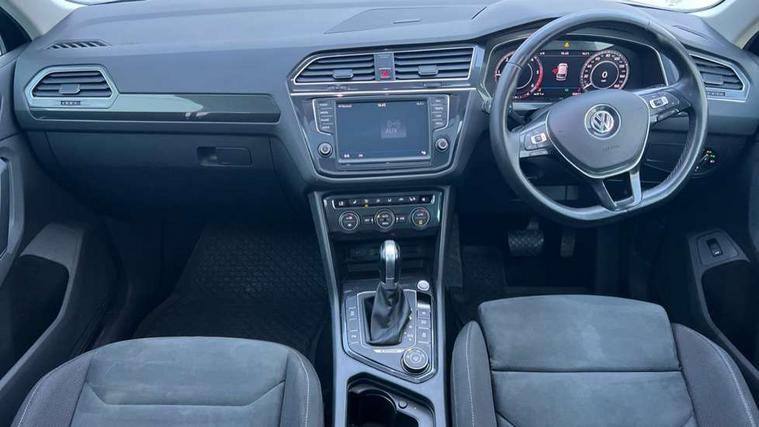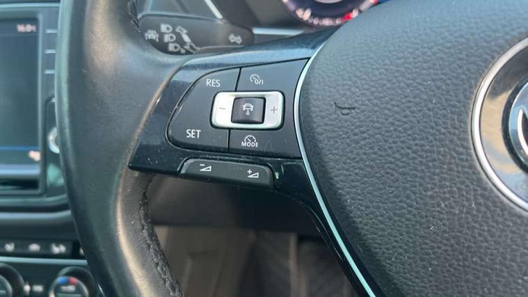 Active information display, Adaptive cruise control, App-Connect, Bluetooth phone integration system, Distance control assist, Drive mode selector, Fatigue detection system, Instrument cluster, Lane assist, Low washer fluid warning light, Outside temperature display, Service interval indicator, Speed limiter, Warning lights, Diesel particulate filter, XDS electronic differential lock, 2x USB sockets in front, Aux-in socket, DAB Digital radio, MP3 compatible single CD player, SD card slot, Auto dimming interior mirror, Automatic activation of hazard warning lights, Black door protector with chrome inserts, Body colour door handles, Body colour door mirrors, Body coloured bumpers, Chrome side body trim, Chrome side window surrounds, Chrome trimmed radiator grille, Coming/leaving home lighting function, Dusk sensor + auto driving lights, Electric folding door mirrors, Electric heated + adjustable door mirrors, Electric panoramic sunroof with sunblind, Front and rear electric windows, Heated rear window, LED headlights with dynamic light assist daytime running lights and cornering front fog lights, LED rear lights, Rain sensor windscreen wipers, Rear windscreen washer and wiper with interval delay, Silver rear diffuser trim, Silver roof rails, Silver under body guard, Tinted windows (B pillar backwards), Windscreen wipers/ intermittent wipe + 4 position delay, 12V Accessory socket in centre console, 3 rear headrests, 3 zone climate control, 4 load lashing points, 40:20:40 split folding rear seats, Bag hook in luggage compartment, Driver + front passenger lumbar support, Foldable passenger seatback, Front + rear carpet mats, Front centre armrest with 12v socket, Front centre armrest with storage + rear 2 air vents + cupholders, Front seatback folding tables, Height/reach adjust steering wheel, Illuminated driver/passenger vanity mirrors, Illuminated scuff plates, Interior light with delay, Isofix Preparation 2 Rear child seats, Leather gear knob, Load through provision with 2 cupholders when folded, Lockable cooled glovebox, Luggage compartment lighting, Luggage compartment side storage, Map pockets on front seats, Passenger seat height adjuster, Passenger underseat drawer, Rear cupholders, Removable luggage cover, Sliding/reclining rear seats, Storage compartment in driver's door, Storage compartment in passenger's door, Storage compartment in rear doors, Storage tray on dashboard, Sunglasses storage, Variable boot floor, Ambient lighting pack - Tiguan, 3 rear 3 point seatbelts, ABS+EBD+Brake assist, Active bonnet, Active pedestrian safety system, Curtain airbags, Driver/Front Passenger airbags, Driver/Passenger whiplash optimised head restraints, Drivers knee airbag, DTC - Drag torque control, Electronic parking brake with auto hold, ESP with EDL + ASR, First aid kit, Front assist including city emergency braking, Front side airbags, Head airbag system, Height adjustable front 3 point seatbelts + pretensioners, Hill hold control, Passenger airbag deactivate switch, Passenger knee airbag, Pre crash system, Rear side airbags, Seatbelt warning lamp and buzzer, Two tone horn, Warning triangle, Alarm with interior protection, Electronic engine immobiliser, Remote central locking with 2 remote folding keys, Chrome door trim inserts, Piano black interior trim, Steel space saver spare wheel,