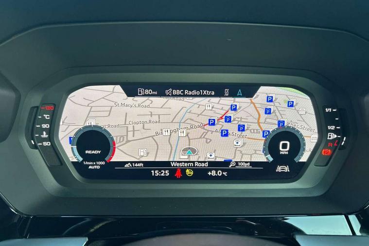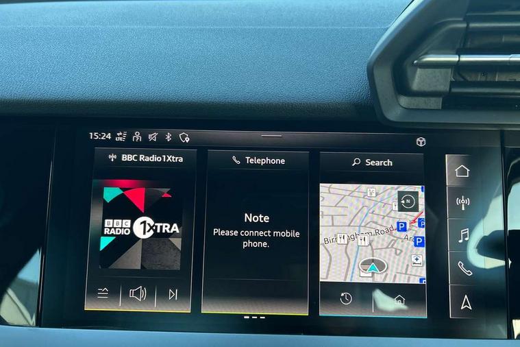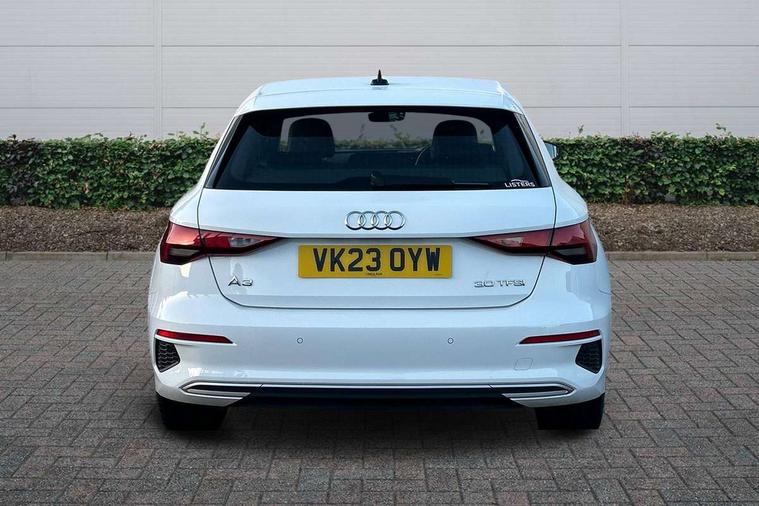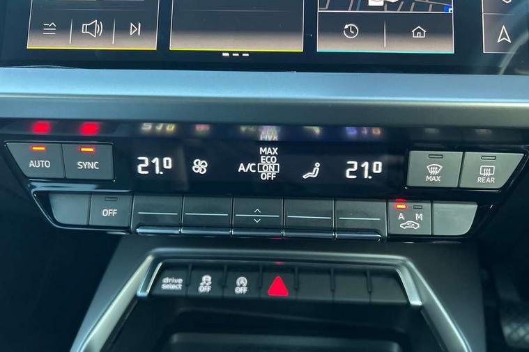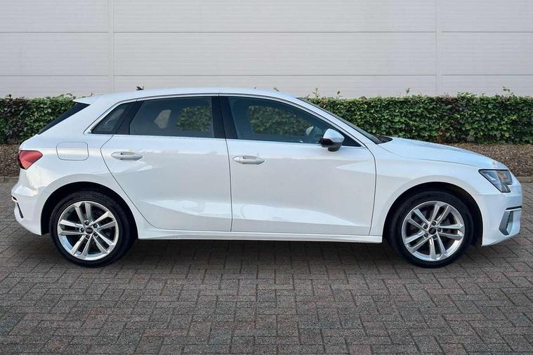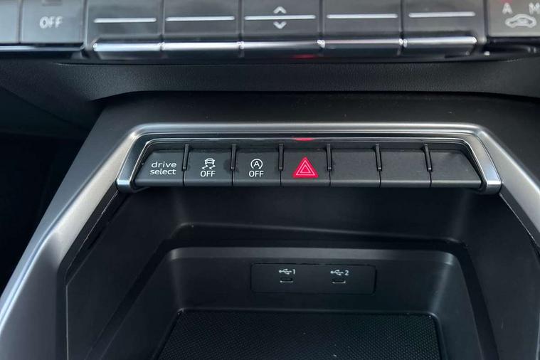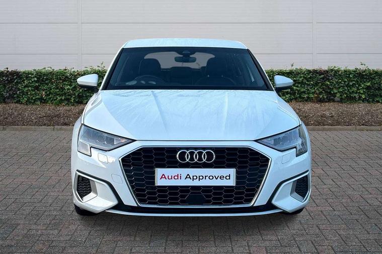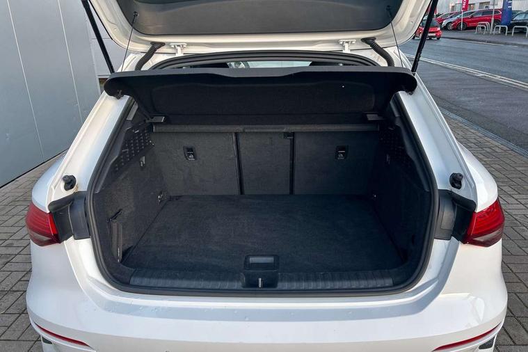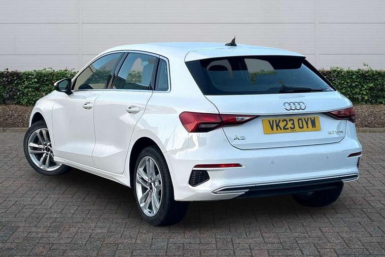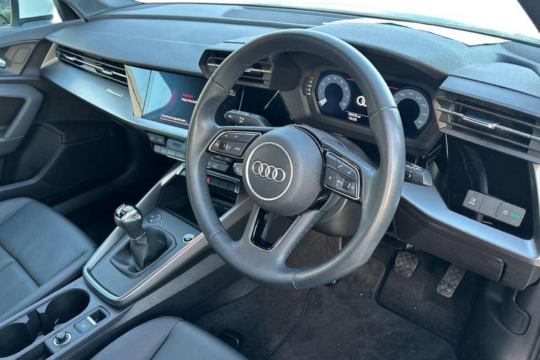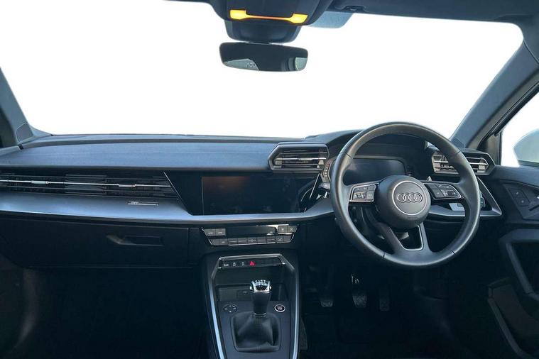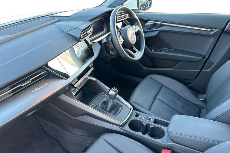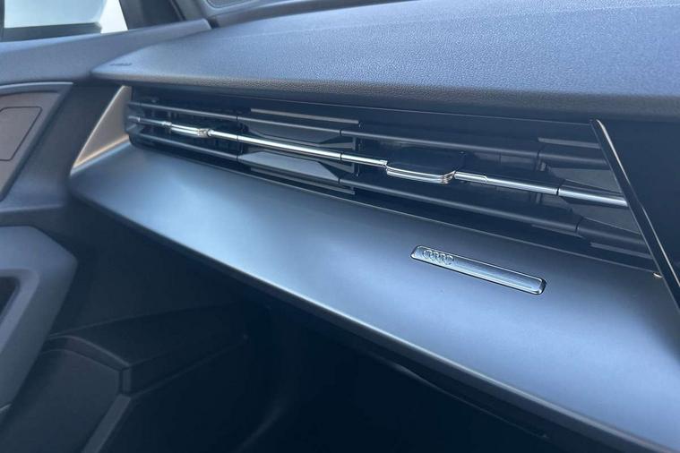 Audi drive select (Auto, Comfort, Dynamic and Individual), Audi smartphone interface, Audi Virtual Cockpit - 10.25" digital and colour instrument cluster, Automatic start/stop system with recuperation, Bluetooth interface, Camera based traffic sign recognition, Collision avoidance assistant, Cruise control, e-Call (emergency call), Electromechanical power speed sensitive steering, Lane departure warning system, MMI Navigation Plus with high resolution 10.1" colour touch screen display, Rear parking sensors, Service indicator, Trip computer, Voice control system with natural language interaction, Standard suspension, 2xUSB-C connection with data and charging functions, 6 passive loudspeakers, DAB Digital radio, 3rd brake light, Acoustic glass windscreen, Aluminium window trim, Auto dimming frameless rear view mirror, Body colour exterior mirrors, Body colour roof spoiler, Electrically adjustable/heated/folding/auto dimming door mirrors with integrated LED indications + kerb view function for passenger side, Front electric windows, LED daytime running lights, LED headlights and halogen rear lights, Light and rain sensors, Rear electric windows, Rear side wing doors, Rear window, rear door windows and rear side windows in clear glass, Rear wiper, 12V socket and storage compartment in front centre console, 3 seat bench in 2nd row, 3 spoke leather multifunction steering wheel, 4 way electrically adjustable lumbar support for driver and front passenger, 60/40 split folding rear seat bench, Dual zone electronic climate control, Front and rear headrests, Front centre armrest, Front door sill trims with aluminium inlay, Front/rear floor mats, Height and reach adjustable steering wheel, Interior lighting - Front and rear roof module including reading lights, glove compartment light and right hand side, Interior lighting - glove compartment light and right hand side, Luggage compartment floor covering, Manual boot compartment lid, Manually adjustable front seats, Routine cloth upholstery with front sports seats, Seat side bolsters, Single front passenger seat, Steel grey cloth headlining, Aluminium interior elements pack - A3 Sportback, LED interior lighting pack - A3 Sportback, Sport styling pack - A3 Sportback, 3x3 point rear seat belts, Driver and front passenger airbag with passenger airbag deactivation, Electronic Stabilisation Control (ESC) including ABS, ASR and EDL, First aid kit with warning triangle and 2 safety vests, Front side airbags with head airbags and interaction airbag, Pre-sense front with pedestrian and cyclist detection, Seatbelt monitoring, Tyre pressure loss indicator, Anti theft alarm, Anti-theft wheel bolts, Electronically operated child lock, Immobiliser, Remote control central locking, Inlays with silk effect paint in platinum grey,