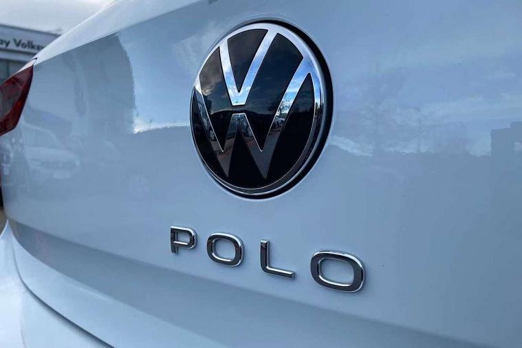 Advanced driver attention and drowsiness monitor, Bluetooth mobile phone interface, Dynamic road sign display, Emergency call service, Mobile phone preparation with inductive charging function, Multifunction front facing camera for distance control, Park distance control, Power assisted speed sensitive steering, Predictive adaptive cruise control without follow-to-stop and speed limiter, Preparation for navigation system with media and internet package, Preparation for We connect and We connect plus, Rear view camera, Speedo and rev counter, electronic odometer, trip, service interval display and exterior temperature gauge, Standard rear axle, Travel Assist - Lane keeping system and traffic jam assist, Travel assist including emergency assist, Trip computer, Warning signal and warning light for front and rear seatbelts not fastened, Washer fluid level indicator, Wireless app connect, Front wheel drive, Rear shock absorpion, Start-stop system with battery regeneration (recuperation - energy recovery during braking), DAB Digital radio, Diversity antenna for FM reception, Front and rear 6 speakers, Automatic dimming interior rear view mirror, Automatic headlight control with LED separate daytime running lights with coming/leaving home function, Body colour bumpers with chrome inserts, Body colour door handles, Body colour door mirrors, Electric front windows, Engine badge deletion, Headlight range adjustment, Heat insulating and laminated safety glass windshield, Heat insulating darkened glass in side and rear windows, LED Headlights, LED rear combination lamps, Power folding adjustable/heated exterior mirrors and front passenger exterior mirror lowering function, Rain sensor, Rear electric windows, Rear fog light, Rear side wing doors, Rear tinted glass from B-pillar backwards approx 65% tinted, Rear windscreen washer and wiper with interval delay, Third brake light, 12V power socket in centre console, 2 front and 2 rear reading lights with switch off delay and dimmer, 2 USB-C ports in the front, 2 USB-C charging sockets on the center console in the rear, 3 rear head restraints, 60/40 split folding rear seat and rear seat bench not split, Ceramique roof lining, Chrome plated radiator grille inserts, air vent surrounds and light switch surrounds, Door and side trim panel, Driver and front passenger seat height adjustment, Driver/passenger sunvisors with illuminated vanity mirrors, Front centre armrest, Front seat backrest storage pockets, Front standard seats, Handbrake lever handle in leather, Hartley/Thomas cloth upholstery, Headliner in recycled material, Isofix child seat preparation easy-fit (for two outer rear seats, and front passenger seat) compatible with I-size, Leather trimmed gear knob, Luggage compartment cover, Luggage compartment lighting, Removable luggage compartment floor, Single front passenger seat, Standard climatic zones, Standard pedal cluster, Three spoke leather wrapped multifunction steering wheel with shifting paddles, Light and vision pack - Polo, 3 point height adj front seatbelts + pretensioners, 3 point seat belt for centre rear seat, 3 point seatbelts, outer rear with ECE lable, ABS, Driver and front passenger airbag with front passenger airbag deactivation, Drivers and front passengers safety optimised head restraints, ESC (Electronic stability control) + EDL (Electronic Differntial lock) and ASR (Traction control), Extended and predictive pedestrian/ cyclist protection, Front assist with autonomous emergency braking (for Adaptive Cruise Control ACC up to 130 mph), Front curtain and side airbags with center airbag, Front disc brakes, Hill hold control, Manual child lock in rear doors, Rear drum brakes, Single tone horn, Tyre pressure loss indicator, Alarm with interior protection, Anti-theft alarm system with interior monitoring, backup horn, and towing protection, Anti-theft wheel bolts, Electronic engine immobiliser, Lava stone black gloss/matt decorative inserts in dash and front door panels, 16" Torsby alloy wheels, Low rolling resistance tyres,