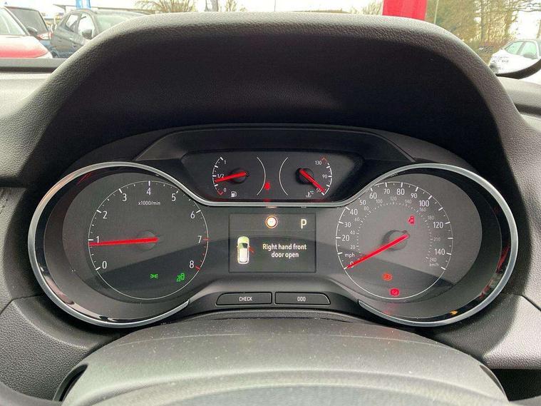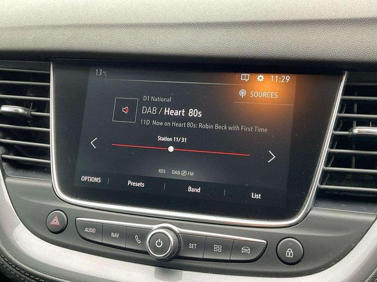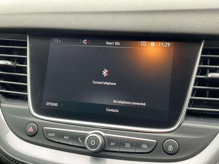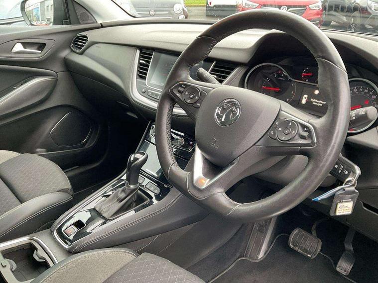 3.5" colour information display, Audible lights on warning, Central facia display with digital clock, outside air temperature and audio information, Cruise control with speed limiter and intelligent speed adaption, Digital water temperature gauge with warning light, eCall emergency call system, Fuel gauge with low fuel level warning light, Lane departure warning system, Multi function trip computer, Nav 5.0 sat nav system + 8" colour touchscreen+DAB radio+RDS traffic programme+European mapping+USB+bluetooth+bluetooth audio streaming+Apple CarPlay, Rev counter, Service interval indicator, Side blind spot alert, Speed sensitive electric power assisted steering, Speed sign recognition, Speedometer, Vauxhall connect including Ecall and connected services, Voice control system, iPod connection, Six speaker - four front + two rear, Steering wheel mounted audio controls, Alloy effect front and rear skid plates, Automatic lighting control, Automatic windscreen wipers, Body colour door handles, Chrome effect bar on front grille, Chrome side window trim, Collapsible windscreen wipers, Door to door illumination, Electrically foldable door mirrors with puddle lights, Electrically operated front and rear windows with safety auto reverse and one touch up/down facility with heated rear window, Front fog lights, Gloss black finish B pillar, Hazard warning lights, High beam assist, High level centre rear brake light, Interior mirror with auto anti dazzle, Intermittent rear window wash/wipe, LED daytime running lights, LED headlights with manual beam levelling, LED tail lights, Rear fog lights, Rear spoiler, Reversing lights, Side protection mouldings, Side window demist vents, Sound absorbing windscreen, Twin electrically adjustable and heated door mirrors, Two speed windscreen wipers with variable intermittent wipe, Welcome lighting, Windscreen demist vents, 12V electrical accessory socket in front, 12V electrical accessory socket in luggage compartment, 3 spoke leather covered steering wheel with satin chrome effect bezel, 60/40 split folding rear seat, Alloy effect door sill covers, Ambient centre console downlighter, Ambient interior lighting, Ambient lighting in front doors, Anti submarining front seats, Black premium leather-effect side bolsters, Centre rear head restraint, Chrome effect interior door handles, Covered storage compartment in centre console and in driver armrest, Driver's centre armrest, Driver/passenger sunvisors with illuminated vanity mirrors, Electronic dual zone climate control with air conditioning + advanced predictive logic control using sensor + Charcoal filter + illuminated controls, Four adjustable facia vents, Front and rear passenger assist handles, Front door pockets with 2.6 litre capacity, Front seat back storage pockets, Fully carpeted luggage area, Heated rear windscreen with timed cut-off, Height adjustable and removable front/rear head restraints, Illuminated luggage compartment, Interior courtesy light operated by all doors, Isofix attachment on front seat, Isofix system on outer rear seats, Luggage compartment cover, Reach + rake adjustable steering column, Rear door pockets with 1.8 litre capacity, Rear passenger compartment heating ducts, Rear reading lights, Two drinks holder in centre console, Ventilated glove box with lid, Ergonomic active leather effect front seats pack - Grandland X, Safety pack - Grandland X, Sight and light pack - Grandland X, Versatility pack - Grandland X, 3x3 point rear seatbelts, Active pedestrian safety system, Anti-lock braking system (ABS), Child proof locks on rear doors, CSC - Cornering stability control, Deactivation switch for front passenger front and side impact airbags, Deflation detection system, Deformation zones front and rear, Driver/Front Passenger airbags, Dual seatbelt pretensioners on front seats, EBD - Electronic brakeforce distribution, Electronic parking brake, Energy absorbing steering column, Engine drag torque control, Front and rear seatbelt reminder, Front seat side impact airbags, Full size curtain airbags for driver, front passenger and outer rear passenger seats, Hill start assist, Hydraulic Brake Assist (HBA), Inertia reel lap and diagonal seatbelts for all seats, Load limiters on outer rear seatbelt retractors, Outer rear seatbelt pretensioners, Reinforced passenger safety cell, Side impact protection beams, Switchable electronic stability programme, Traction control, Tyre pressure monitoring system, 2 remote folding keys, Electronically protected audio equipment, Engine deadlock and immobiliser, Locking wheel nuts, Remote control central locking, Remote security alarm system, Visible vehicle identification number, Black door panels with black premium leather effect inserts,