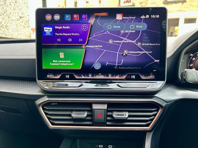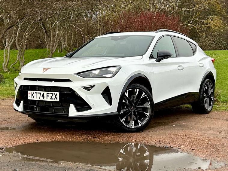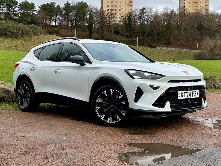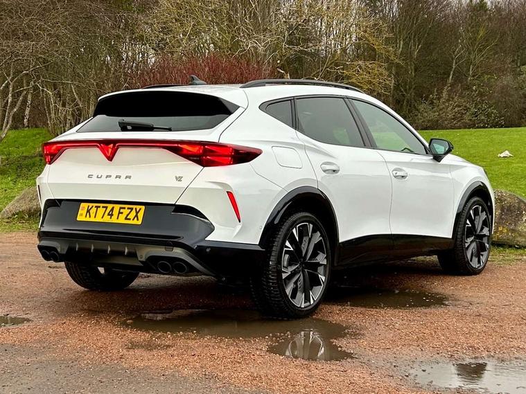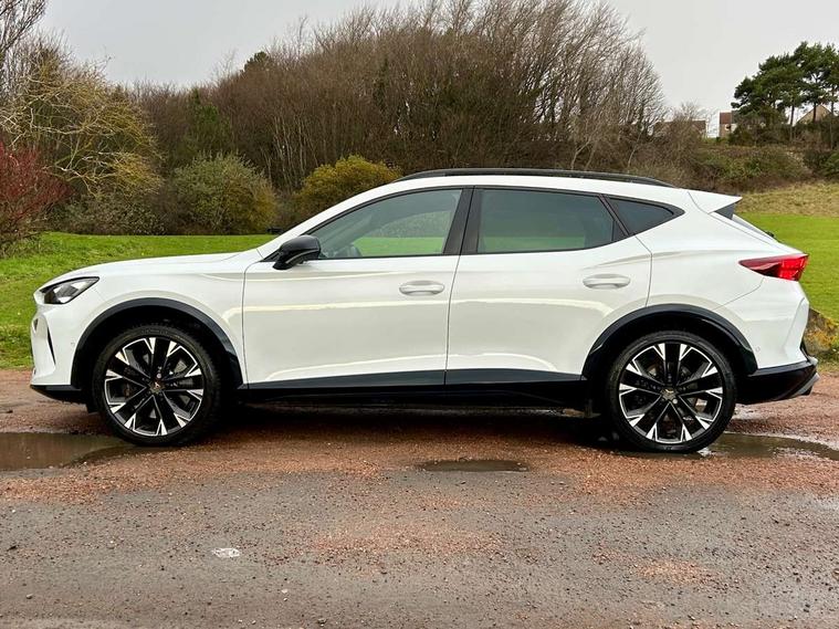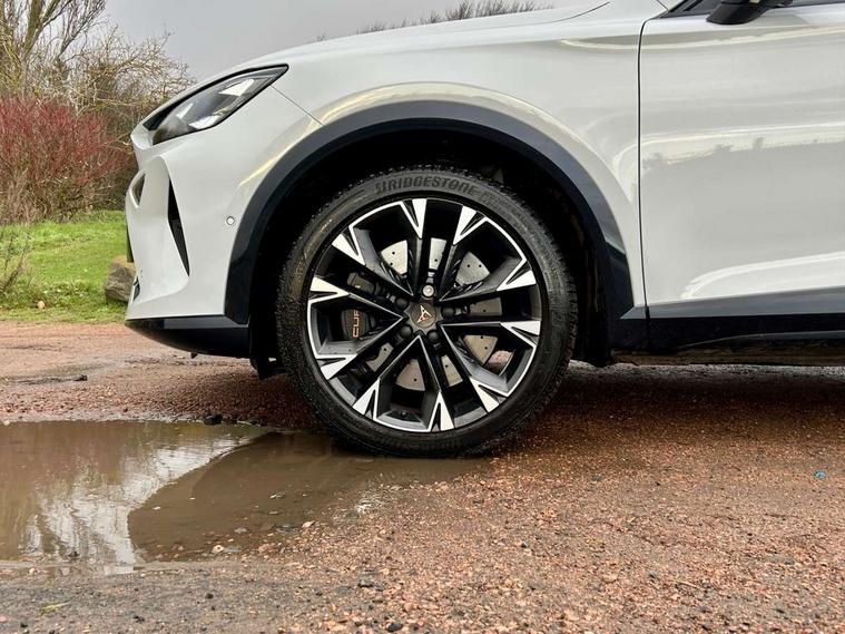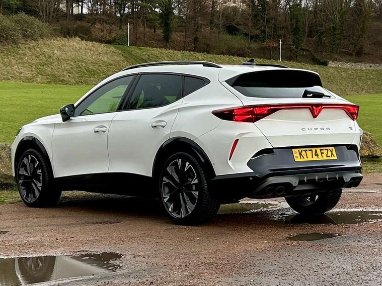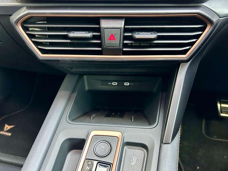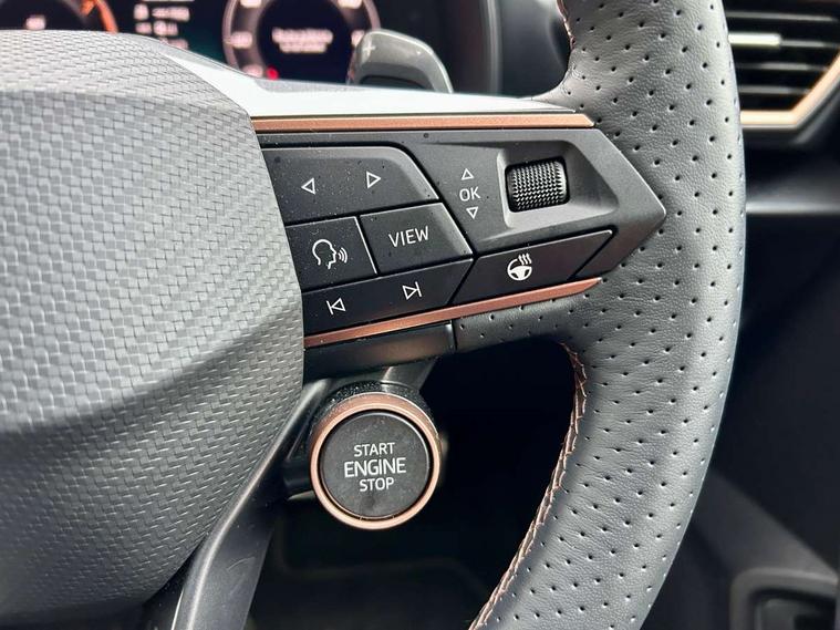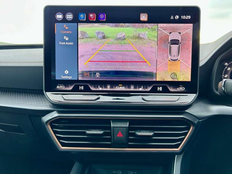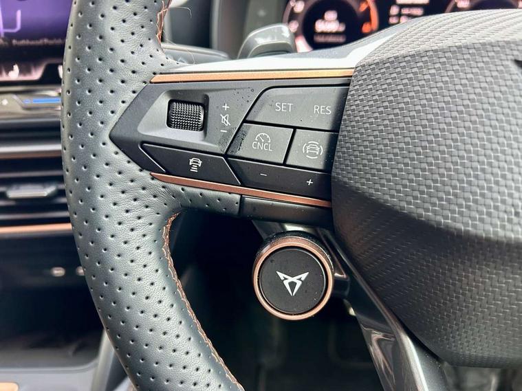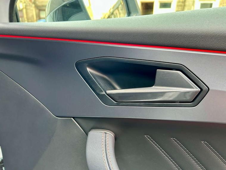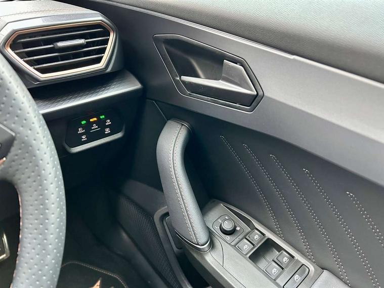 10.25" digital cockpit and configurable dashboard, Adaptive cruise control with follow-to-stop and speed limiter, Advanced driver alert system, Advanced lane assist with semi-automatic vehicle control in a medical emergency and traffic jam assist, Dynamic chassis control with driving profile selection (Comfort, Sport, CUPRA, Individual), Dynamic road sign display, Emergency steering support with turn assist, Forward collision warning with automatic braking, Full link phone integration, Intelligent park assist, RPM, trip computer, outside temp gauge, instrument light brightness, low fuel warning light, lights on reminder, gearshift indicator, Service interval indicator, Side and exit assist, Speed sensitive power steering, Start/stop system with regenerative braking, Top view camera, Virtual pedal and electric tailgate, Voice control system, Wired Android Auto, Wireless apple carplay, Wireless phone charger, Adaptive chassis control with continuous operation, CUPRA sport suspension, Electronic locking differential and dynamic traction support, 2 front and 2 rear USB type C sockets, Media system with navigation, 12.9" touchscreen display, voice control, DAB, steering wheel mounted controls, Auto dimming rear view mirror, Body colour door handles, Body coloured bumpers, Dark grey wing mirror, Daytime running light with automatic headlight control and coming home feature, Door panel ambient lighting, Dynamic headlight range control, Electric front/rear windows, Electrically adjustable heated and folding door mirrors with memory function, Gloss black roof rails and window surrounds, High beam assist, LED 3rd brake light, LED front fog lamps with cornering function, LED Taillights with dynamic indicator, Matrix LED headlights with multifunction camera, Rain sensing wipers, Rear diffuser with twin exhaust pipe on each side, Rear fog lights, Rear side wing doors, Rear wash/wipe, Tinted rear windows, Welcome lights (within exterior mirror housing), 12V socket, 2 front and 2 rear reading lights, 3 seat bench in 2nd row, 60/40 split rear bench seat with armrest and mechanical seat release, Black headlining, Black interior roof lining, Cupra sports pedals, Dust/pollen filter, Electrically adjustable front seats with lumbar support and memory function, Front and rear head restraints, Front centre armrest, Heated front seats, Heated supersports multifunction leather steering wheel with satellite buttons and gear shift paddles, Height/reach adjust steering wheel, Illuminated aluminium doorsteps, Illuminated interior front door sills, Illuminated sunvisor with mirror, Isofix, Leather dashboard, door insert and side trim panel, LED smart wraparound lighting, PVC/Leather upholstery, Satellite steering wheel, Single front passenger seat, Storage pockets on rear of front seats, Three zone climate control with control panel in rear, Variable luggage/load compartment floor, 3 point seatbelts on all rear seats, ABS, Brake control system - ESC and brake booster, Child proof door locks, Driver and front passenger airbags with front passenger airbag de-activation, Electronic parking brake, Front and rear disc brakes, Front side curtain airbags, Hill hold control, Pre-crash front and rear seat belt tensioner, window closure and hazard lights, Public e-call, Seat belt reminder for front and rear seats, Tyre pressure monitoring system, Anti theft alarm system, KESSY Advanced - Keyless start, keyless entry with SAFELOCK, Locking wheel bolts, Copper and aluminium interior detailing, 19" Artic machined sport black and silver alloy wheels, Breakdown and tool kit,