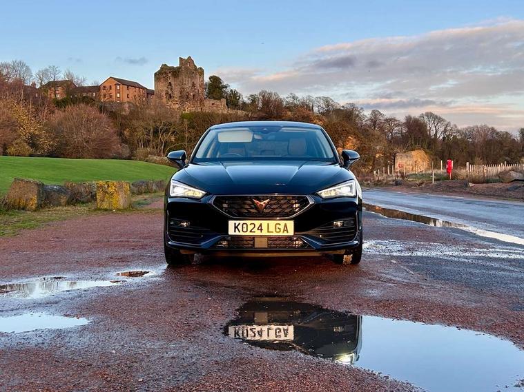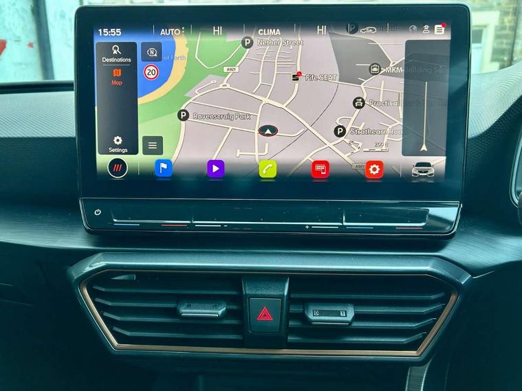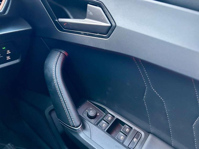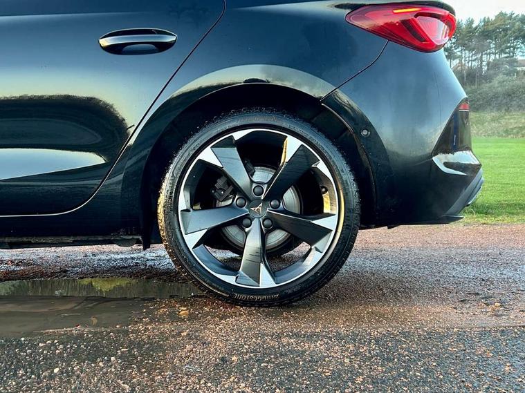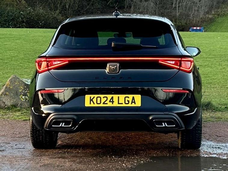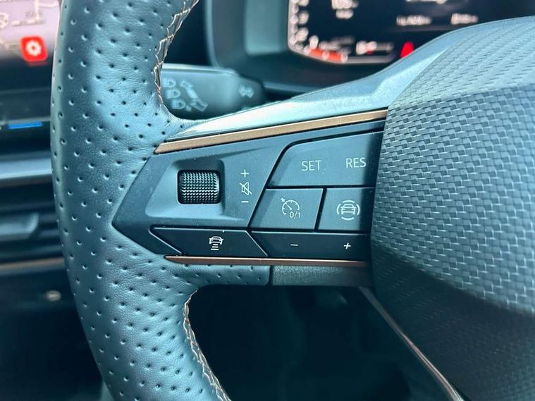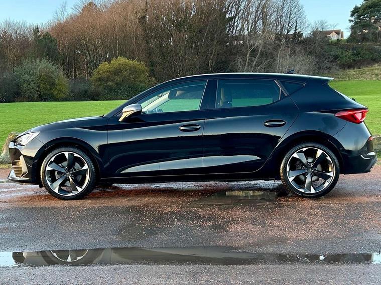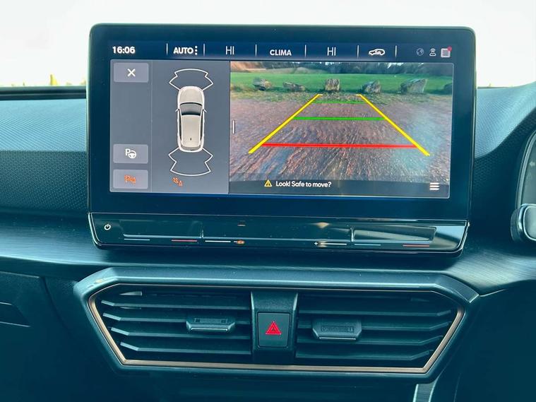 CUPRA drive profile selection with (Comfort/Sport/Individual), throttle response and gearshift mode, Digital cockpit, E-call, Electro mechanical speed sensitive power steering, Four x USB Type C ports (2 in front and 2 in rear), Front assist with forward collision warning braking reaction to vehicles, pedestrians and cyclists, Full link smartphone integration with Mirror Link, wireless Apple CarPlay and wired Google Android Auto, Lane assist, Lockable tailgate, Park assist (inc front/rear parking sensors), Rear view camera, RPM, trip computer, outside temp gauge, instrument light brightness, low fuel warning light, lights on reminder, gearshift indicator, Service interval indicator, Start/stop system with regenerative braking, Wireless phone charger, Sports suspension, Auxiliary input socket, Auto dimming rear view mirror, Body colour door handles, Body coloured bumpers, Cupra sports bumpers, Dark tinted rear windows, Electric front/rear windows, Electrically adjustable, heated and folding door mirrors, LED front fog lamps with cornering function, LED headlights with dynamic turn signals, tail lights, rear fog lights with rear coast to coast lighting, Rain sensing wipers, Rear diffuser with twin exhaust pipe on each side, Rear side wing doors, Rear wash/wipe, Separate daytime running light with automatic headlight control and coming home feature, Third brake light, 12v power supply in centre console, 3 seat bench in 2nd row, 5 headrests, 60/40 split rear bench seat with armrest, Ambient lighting with glovebox, footwell and single monocolour, Cupra Leather flat bottomed, perforated steering wheel, Driver/passenger manual seat height adjustment, Folding boot cover, Front and rear reading lights X 4, Front centre armrest, Front seats manual lumbar adjustment, Grey headlining, Height/reach adjust steering wheel, Illuminated interior front door sills, ISOFIX points in outer rear seats with top tether anchorage points, Jack and tool kit, PVC/Cloth upholstery with copper stitching, Single front passenger seat, Sports seats, Sunvisors with illuminated mirror, Three zone climate control, Media system plus with navigation pack - Leon Cupra, Safety and driving pack (M) - Cupra leon, 3 point seatbelts on all rear seats, ABS, Brake control system - ESC and brake booster, Child proof door locks, Cupra black brake calipers, Driver and front passenger airbags with front passenger airbag de-activation, front side and curtain airbags, Electronic parking brake, Extended safety system - seat belt tensioner, window closure and hazard lights, Hill hold control, Rear disc brakes, Seat belt reminder for front and rear seats, Tiredness recognition system, Tyre pressure monitoring system, Anti theft alarm system with interior monitoring in cab, backup horn and towing protection, KESSY Advanced - Keyless start, keyless entry, Locking wheel bolts, Chrome and copper interior detailing, 18" Machined sport black and silver alloy wheels with 92Y tyres,
