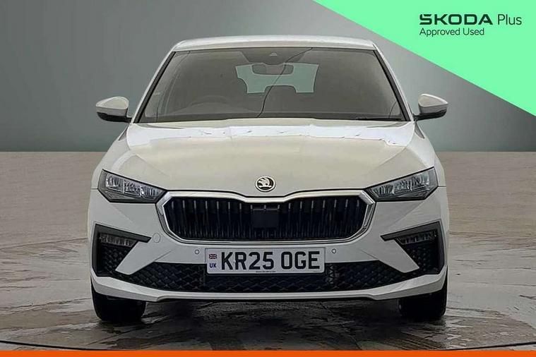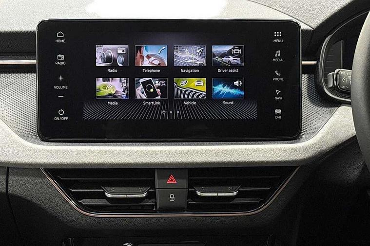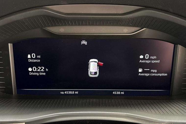 Advanced driver attention and drowsiness monitor, Bluetooth, e-Call (emergency call), Front assist system, PAS, Rear parking sensors, Rear view camera, Speed limiter, Tailgate, Traffic sign recognition, Virtual Cockpit - 10.25" digital display, Voice control system, Wireless smartlink, 4 USB C ports, 8 Speakers, 9.2" Skoda navigation display, DAB radio, Auto dimming rear view mirror, Automatic headlamp activation with Coming home and Leaving home feature, Automatic high/low beam, Automatic intermittent wipers, Body colour bumpers, Body colour door mirrors and handles, Chrome moulding around grille, Chrome window frames, Front and rear electric windows, Heated rear window, LED 3rd brake light, LED brake lights, LED daytime running lights, LED front turning lights, LED high beam, LED low beam, Light sensors, Privacy glass, Rear LED fog light, Rear side wing doors, Rear wiper, Tinted windows, Unique dark chrome design logo on alloy wheels, 12V socket in luggage compartment, 3 seat bench in 2nd row, Ambient lighting in white/red, Black / Copper armrest stitching, Cargo elements, Chrome inner door handles, Copper hotstamping, Door inserts in accent black, Driver and passenger sun visors with vanity mirror, Dual zone climate control, Front and rear roof lights, Front centre armrest, Front head restraints, Glasses storage in roof liner, Height adjustable driver seat, Height adjustable passenger seat, Ice scraper, Illuminated glove compartment, Inner circulation control with pollen filter, ISOFIX for front passenger seat, Isofix preparation for back seats, Leather gearknob and handbrake lever, Lodge cloth upholstery, Luggage net under rear parcel shelf, Manual lumbar support for front seats, Net package and top tether hooks in boot space, Pearl grey ceiling, Pocket on the back of both front seats, incl. mobile phone pockets, Rear centre armrest, Single front passenger seat, Skoda lettering on steering wheel, Textile floor mats, Third rear headrest, Ticket holder, Top tether for front passenger seat, Umbrella in driver's door, Convenience pack without rear camera - Scala, 3x3 point rear seatbelts, ABS, Child locks, Curtain airbags and front side airbags, Disc brakes, Driver and front passenger airbags, ESP, Hill hold control, Manual leather parking brake, One tone horn, Passenger airbag switch off function, Seatbelt reminder for driver and front passenger, Tyre pressure monitoring system, Anti theft alarm system with interior monitoring, backup horn and towing protection, Anti-theft wheel bolts, Remote central locking with 2 remote folding keys, SAFE function for remote central locking, Decorative inserts,