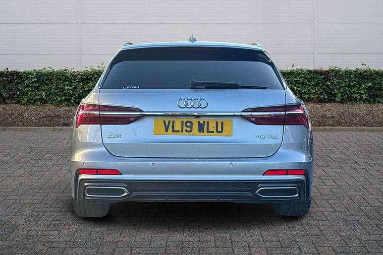 7" high resolution colour driver information display system, Amazon alexa Integration, Audi connect safety and service (e-call), Audi drive select, Audi parking system plus with front and rear sensors, Audi smartphone interface, Automatic start/stop system with coasting functionality, Bluetooth interface, Lane departure warning system, MMI navigation with MMI touch + twin touch screens 8.8" and 8.6" with haptic and acoustic feedback, Power operated tailgate, Progressive steering, Service interval indicator, Voice control system, Diesel particulate filter, Sports suspension, Audi music interface, Auxiliary input socket, DAB Digital radio, USB connection, Aluminium roof rails, Body coloured door mirrors, Electric front/rear windows, Electrically adjustable, heated and folding door mirrors with driver memory function and integrated LED indicators, Frameless auto dimming interior rear view mirror, Headlight washers, Heat insulating darkened glass in side and rear windows, LED signature front daytime running light, Matrix LED headlights with dynamic rear indicators, Privacy glass, Radiator grille in titanium black matt, single frame in chrome and horizontal struts in matt aluminium silver, Rain and light sensors, S line air inlet design with inlay in matt aluminium, S Line badge on front fender, S Line front and rear bumpers, S line rear diffuser and grille in matt black with matt aluminium tailpipes, S Line roof edge spoiler, S Line side skirts, Signature rear LED light design, Windscreen with acoustic glazing, 2 zone deluxe electronic climate control, 4 way electric lumbar support for driver and front passenger, 40/20/40 split folding 3 rear seat bench in 3 parts with rear centre armrest, Black cloth headlining, Electrically adjustable front seats with driver memory, Front centre armrest, Front head restraints, Heated front seats, Height/reach adjust steering wheel, Illuminated door sill trims with S logo, Illuminated sun visors with vanity mirrors, ISOFIX child seat mounting and Top Tether with front passenger airbag deactivation, Leather gear knob, Leatherette on upper instrument panel and door shoulders, Luggage compartment system, Rear headrests, S line front and rear floor mats with contrast stitching, Stainless steel pedals and foot rest, Tool kit and car jack, LED Interior Ambient Lighting Pack - A6, Non smoking pack - A6, 3 point seatbelts on all seats, Airbags - Front side, front and rear including head, Audi pre-sense front, EBD - Electronic brakeforce distribution, Electromechanical parking brake, Electronic Stability Control (ESC) including ABS, ASR and EDL, Extended pedestrian protection measures, Seatbelt monitoring, Tyre pressure warning light, Warning triangle and first aid kit, Anti theft alarm with tow away protection, Anti-theft wheel bolts and wheel loosening detection, Immobiliser, Keyless Go, Remote central locking,