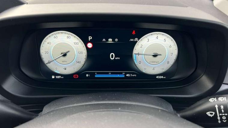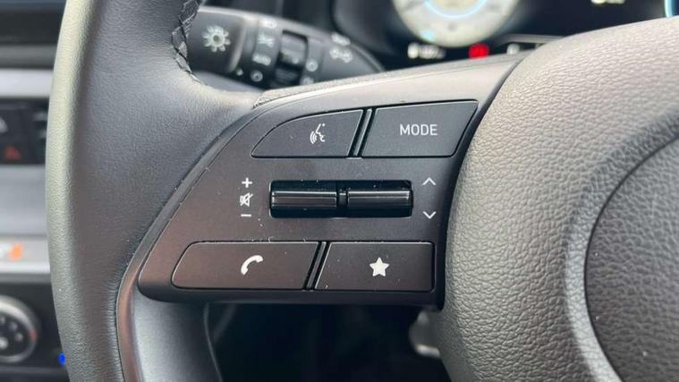 10.25" digital supervision cluster, 2nd Gen eCall, 8" Touchscreen with DAB, Apple car play/Android Auto, Cruise control + speed limiter, Forward collision assist with car, pedestrian and cycle detection, Intelligent speed limit warning, Lane follow assist, Lane keep assist, PAS, Rear parking sensor, Rear view camera with dynamic guidelines, USB C port front, 3rd brake light, Dusk sensor, Electric adjustable heated door mirrors, Front grille mesh pattern design, High beam assist, LED daytime running lights, LED Headlights, LED taillights, Rain sensor, Rear side wing doors, Rear wiper, Repositioned flat metal hyundai emblem, 3 seat bench in 2nd row, Adjustable head restraints, Air conditioning, Cloth upholstery, Floor mats, Leather steering wheel, Single front passenger seat, 3x3 point rear seatbelts, ABS with front and rear diagonally split, Autonomous emergency braking, Child locks on rear doors, Front ventilated disc brakes, Rear solid disc brakes, Tyre pressure monitoring system, 16" alloy wheels, Tyre repair kit,