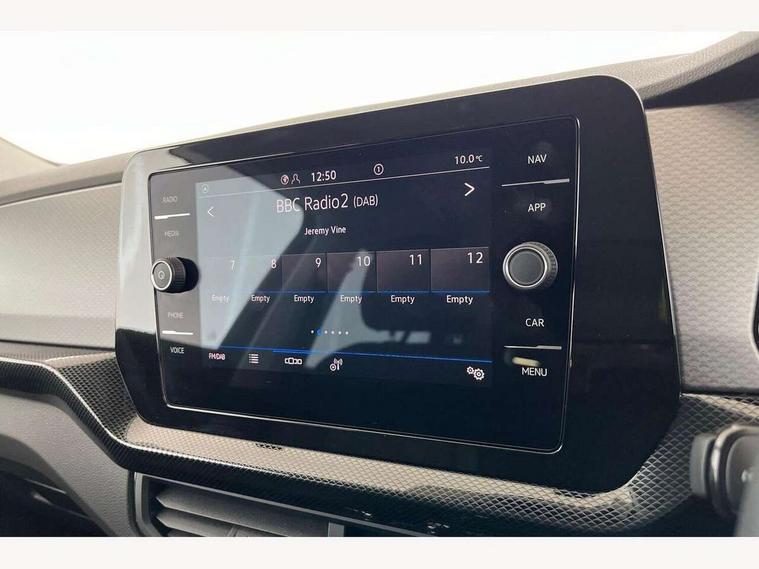 'Lights On' Reminder warning buzzer, 8" Digital cockpit, Advanced driver attention and drowsiness monitor, Bluetooth telephone and audio connection for compatible devices, Car information display, Dynamic road sign display, E-Sim card for online connectivity, eCall emergency call system, Front and rear parking sensors, Front assist, forward collision warning, autonomous emergency braking and speed limiter, Low washer fluid warning light, Multifunction computer with visual gear change recommendation for fuel consumption, Multifunction front facing camera for distance control, Operating permit alteration, Power assisted steering, Predictive adaptive cruise control, Preparation for navigation system with media and internet package, Preparation for We connect and We connect plus, Rear view camera, Semi-automated driving assistance, travel assist including lane keeping system Lane Assist and emergency assisst, Side assist, Speedo, rev counter, electronic odometer, trip, service interval display, exterior temperature and fuel gauge, Warning sound and light for doors and tailgate open, Warning sound and light for front seatbelts unfastened, Wireless Car net app connect with Apple CarPlay, combined functionality of Apple CarPlay/Android Auto and MirrorLink, Wireless charging, Misfuel prevention device, Start-stop system with battery regeneration (recuperation - energy recovery during braking), 2 USB C ports in front, 2 USB charging sockets on the centre console in the rear charging capacity upto 45W, DAB Digital radio receiver, Diversity antenna for FM reception, Multi device interface (MDI) with USB connection, Music playback - MP3, WMA and AAC files, Radio, Automatic dimming interior rear view mirror, Automatic hazard lights activation under emergency braking, Automatic headlight control with LED separate daytime running light and coming home and leaving home feature, Body colour door handles, Body colour door mirrors, Body coloured bumpers, Dynamic headlight range control with self adjusting whilst driving, Electric folding door mirror, adjustable, heated with front passenger exterior mirror lowering function, Exterior mirrors convex on the left and aspherical on the right, Front and rear electric windows, Galvanised body, Heat insulating and laminated safety glass windshield, Heat insulating darkened glass in side and rear windows, High Beam Assist, automatic sensing for switching between dipped and main beam, LED rear combination lights, LED third brake light, Lower door sills and door pillars in black, Rain sensor, Rear fog light on one side, reversing light on both sides, Rear side wing doors, Rear window aerial, Rear window wiper with intermittent control, Reflectors in all doors, Scuff plates, Tailgate with integrated roof spoiler, 12V Accessory socket in centre console, 3 rear head restraints, 3 seat bench in 2nd row, 60/40 split folding rear seat backrest, Ambient lighting and logo projection, Ceramique roof lining, Cloth upholstery, Door and side trim panel, Driver and front passenger sunvisor with vanity mirror, Dust and pollen filter, Front and rear reading lights X 2, Front centre armrest with storage compartment, Front seat back storage pockets, Glove compartment door with light, Heating and fresh air system with 4 stage blower, Height/reach adjust steering wheel, Instrument lighting white adjustable panel illumination, Interior light with switch off delay and dimmer, Isofix anchors for child seats on outer rear seats and front passenger seats, Leather gearshift handle, Leather wrapped multifunction steering wheel, Luggage compartment floor, Luggage compartment lighting, Manual front seats with height adjustment, Padded dashboard, Removable luggage compartment cover, Single front passenger seat, Storage compartment in drivers and front passengers door, Unsplit sliding rear seat bench, Without drawers under front seats, 3 point outer rear seat belts with ECE label, 3 Point seatbelt for centre rear seat, Anti-lock Braking System (ABS) with Hydraulic Brake Assist (HBA), Automatic post collision braking system, Disc brakes in front, Driver and front passenger safety-optimised head restraints, Drivers and Front Passengers airbags with front passengers airbag deactivation switch, Drum brakes in rear, ESC with EDL and ASR (traction control), Extended and predictive pedestrian/cyclist protection, Front and rear passenger curtain airbag system including front side airbags, Height adjustable front 3 point seatbelts + pretensioners, Hill start assist, Pre crash preventive occupant protection, Proactive passenger protection system in combination with front assist, Rear door child safety locks, Rigid safety cell with front and rear crumple zones, Single tone horn, Tyre pressure loss indicator, Volkswagen roadside assistance, Alarm with interior protection, Anti theft alarm system, Electronic engine immobiliser, Remote keyless entry using key fob including Start/Stop button on centre console with SAFELOCK, Remote tailgate unlocking using key fob, Low rolling resistance tyres,
