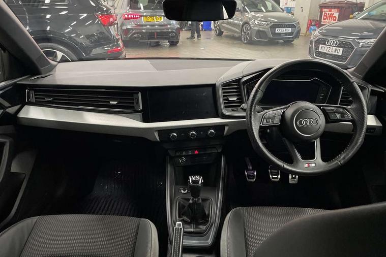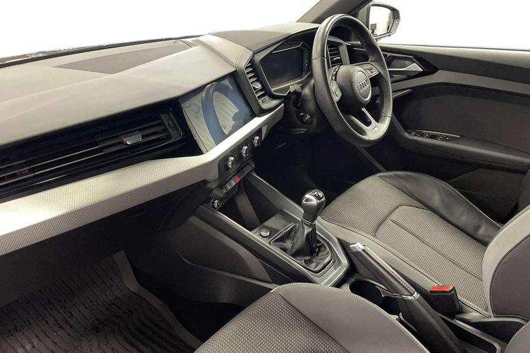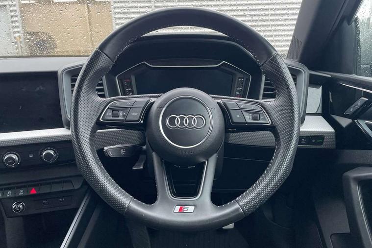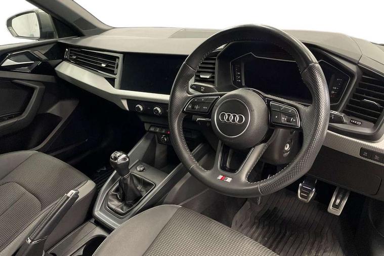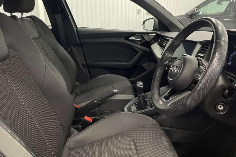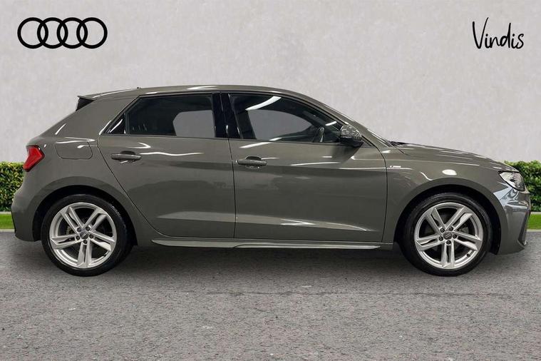 10.25" Digital instrument cluster display classis style instrument dials + speed, odometer, time, outside temperature, telephone menu + fuel level warning, Audi connect safety emergency and service including E-call, Audi drive select - power steering assistance + engine, Audi smartphone interface with connect compatible smartphone via USB directly MMI display + Nav, music, third party apps controlled via MMI controller, Automatic start/stop system, Bluetooth interface, Cruise control, Driver's information system, Electromechanical power steering, Lane departure warning system, Rear parking sensor, Service interval indicator, Speed limiter, Voice control system, Washer fluid level indicator, Sports suspension, 1 x SDXC card reader, 1 x USB type C and 1 USB type A charging points, DAB Digital radio, MMI radio plus with 8.8" colour MMI display screen and MMI touch, Auto dimming rear view mirror, Body coloured door mirrors, Door sills with aluminium inlays and S Line logo, Electric front and rear windows, Electrically adjustable, heated, folding door mirrors with integrated LED side indicator, Front side air inlets in grained matt black and C frame in titanium black, Heat insulating glass windscreen and side windows, Heated rear windscreen, LED headlights with LED rear lights + dynamic rear indicators + headlight adjustment and high beam, turning light + LED daytime running lights, Radiator grille and rear diffuser in matt titanium black, Radiator protective grille frame in matt aluminium silver, Rain and light sensors, Rear fog lights, Rear wiper, S line badges on front wings, Side front spoiler lips in grained matt black, 12V socket in centre console with two cup holders, 3 rear seats with headrests, 40:60 Split folding rear seat or folded fully, Black cloth headlining, Driver and passenger seat with manual height adjust with forward and backwards adjustment, Front and rear black floor mats with contrast stitching in fine silver, Front head restraints, Height and reach adjustable steering wheel, ISOFIX child seat mounting for front passenger and outer rear seats including top tether attachment point of outer rear seats, Leather gear knob with aluminium trim, Luggage compartment light with front and rear reading lights, Manually adjustable lumbar support in front seats, Stainless steel pedals, LED interior lighting pack - A1, Luggage compartment pack - A1, S line exterior styling pack - A1 Sportback, 3x3 point rear seatbelts, Audi pre-sense front with pedestrain and cyclist recognition, Brake assist function, Driver and front passenger airbag with front side and head airbags, Electronic Stability Control including ABS, EBD, ASR and EDL, Front and rear seatbelt reminder, Front passenger airbag deactivation switch, Hill hold assist, Seatbelt height adjustment for front seats, Seatbelt monitoring, Tyre pressure warning light, Warning triangle and first aid kit, Anti theft alarm, Anti theft wheel bolts and loose wheel warning, Immobiliser, Remote central locking with 2 foldaway keys, Aluminium trim for control switches, air vents and digital instrument cluster, Silver grey inlays polygon structure in diamond paint finish, Structured grey accent areas including air vents, door handle recesses and centre console in quartz paint finish,