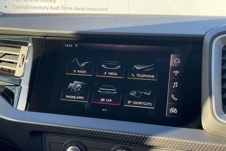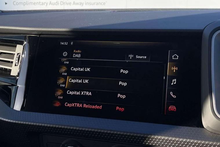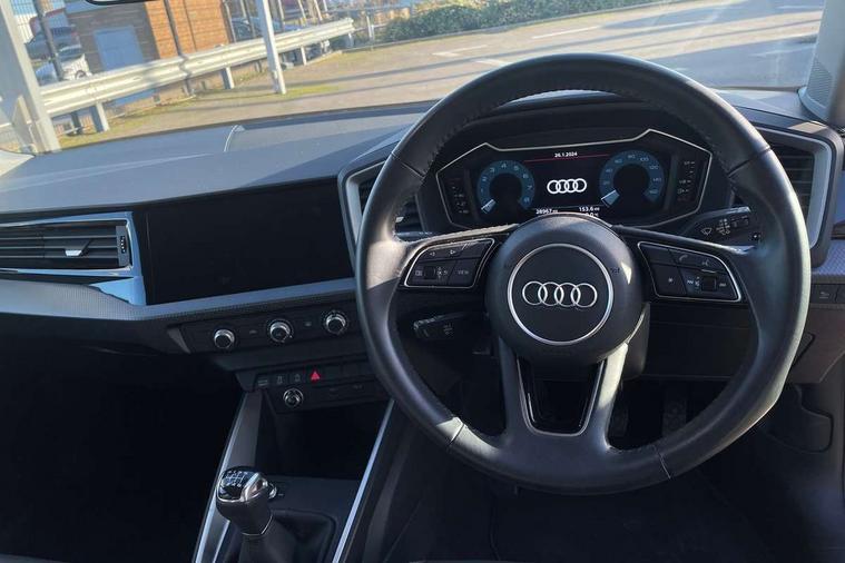 Aluminium trim for control switches, air vents and digital instrument cluster, Silver grey accent areas including air vents, door handle recesses and centre console in diamond paint finish, Slate grey inlays polygon structure in fine paint finish, Anti theft alarm, Anti theft wheel bolts and loose wheel warning, Immobiliser, Locking wheel bolts, Remote central locking with 2 remote folding keys, 1 x SDXC card reader, 1 x USB type C and 1 USB type A charging points, Audi music interface, Bluetooth audio streaming, DAB Digital radio, MMI radio plus with 8.8" colour MMI display screen and MMI touch, 3x3 point rear seatbelts, Audi pre-sense front with pedestrain and cyclist recognition, Brake assist function, Driver and front passenger airbag with front side and head airbags, Electronic Stability Control including ABS, EBD, ASR and EDL, Front and rear seatbelt reminder, Front passenger airbag deactivation switch, Hill hold assist, Seatbelt height adjustment for front seats, Seatbelt monitoring, Tyre pressure warning light, Warning triangle and first aid kit, Auto dimming rear view mirror, Body coloured bumpers, Body coloured door mirrors, Electric front and rear windows, Front side air inlets in grained matt black and C frame in titanium black, Heat insulating glass windscreen and side windows, Heated rear windscreen, LED headlights with LED rear lights + dynamic rear indicators, Radiator grille in matt titanium black, Radiator protective grille frame in matt aluminium silver, Rain and light sensors, Rear fog lights, Rear wiper, Scandium grey tailpipe trim, Side front spoiler lips in grained matt black, Titanium black matt diffuser, 12V socket in centre console with two cup holders, 3 rear seats, Door sills trims with aluminium inlays, Driver and passenger seat with manual height adjust with forward and backwards adjustment, Front head restraints, Front/rear floor mats, Height and reach adjustable steering wheel, Illuminated glovebox, ISOFIX child seat mounting in front passenger and rear outer seats, Leather gear knob with aluminium trim, Leatherette handbrake grip, Luggage compartment light with front and rear reading lights, Lumbar adjustment for front seats, Novum cloth upholstery with front sport seats, Rear head restraints, Split folding rear seats, Titanium grey cloth headlining, 10.25" Digital instrument cluster display screen, Audi connect safety emergency and service including E-call, Audi drive select, Audi smartphone interface, Automatic start/stop system, Bluetooth interface, Driver's information system, Electromechanical power steering, Lane departure warning system, Service interval indicator, Speed limiter, Voice control system, Washer fluid level indicator, Dynamic suspension,