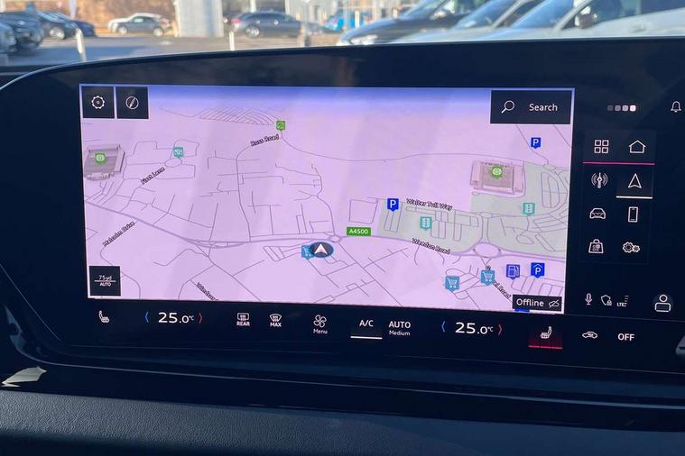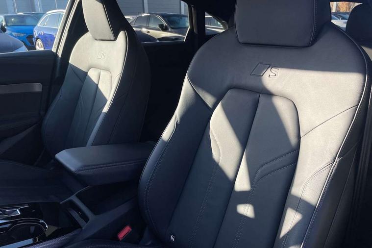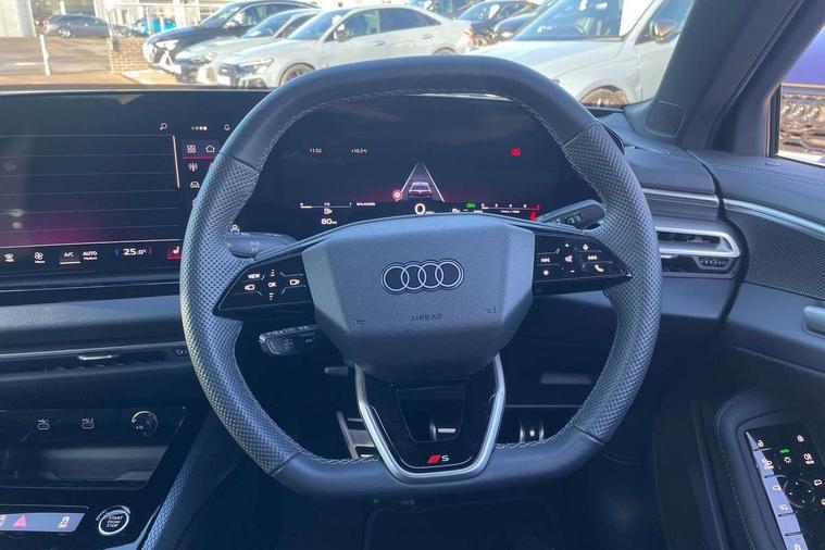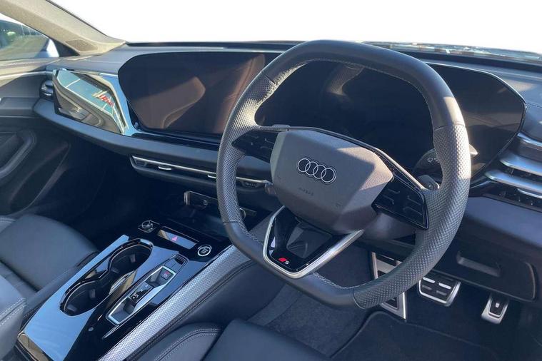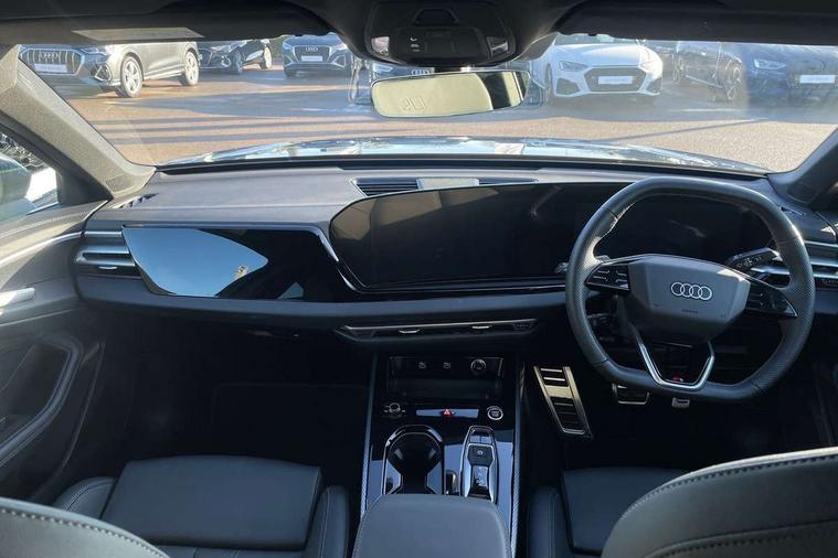 Adaptive cruise control, Advanced driver attention and fatigue montior, Audi application store, Audi assistant, Audi connect emergency call and service, Audi drive select, Audi smartphone interface, Audi virtual cockpit plus with 11.9" OLED colour display, Automatic start/stop system with coasting functionality, Camera based traffic sign recognition, Intersection assist, Lane departure warning, MMI navigation plus with high resolution 14.5" OLED touchscreen colour display, Park assist plus, Parking system plus with 360 display, Progressive steering with servotronic, Rear view camera, Swerve assist and turn assist, Traffic sign based speed limiter, Sports suspension lowered by 20mm, 2 USB-C ports in both the front and rear, Audi sound system impressive sound with 10 loudspeakers including centre speaker and subwoofer, 6-channel amplifier with a total output of 180 watts, DAB digital radio reception, Smartphone compartment with wireless charging, Aluminium window trims, Auto dimming rear view mirror, Body colour door mirrors, Door mirrors - electrically adjustable, heated, folding and auto dimming on both sides, Front and rear electric windows, Front door sill trims with aluminium inlays, illuminated with 'S' logo, High beam assist, LED headlights Plus incl. digital daytime running lights, turning light, all-weather light, motorway light, manouevring light and intersection light, LED rear lights pro incl. dynamic rear indicators and illuminated light strip with animated coming and leaving home function, LED third brake light, Privacy glass, Rear and side windows with heat insulating glass, Rear boot, Rear side wing doors, S Line badges on the front wings, S line bumpers, radiator grille and diffuser in phantom black and diffuser insert in matt anthracite, White rhombus logo projection light in exterior mirrors, Windscreen with acoustic glazing, 3 rear headrests, 3 seat rear bench, 3 spoke leather steering wheel with multi-function buttons with touch control, flattened on top and bottom, with S badging and contrast stitching, 3-zone automatic climate control, 40:20:40 split folding rear seat bench with centre armrest and cup holders, Comfort front centre armrest, Front and rear floor mats, Front seats with manual adjustment for position and 4-way electric lumbar support, Front sport seats with integrated headrest and S embossed logo, Headlining in black cloth, Heated front seats, i-Size child seat mounting on the front passenger side and outer rear seats, i-Size and top tether on the outer rear seats, Luggage compartment lid, electrically opening and closing, Manual steering column height and depth adjustment, Single front passenger seat, Stainless steel pedals and footrest, Steering wheel grips in perforated leather and shift paddles, Ambient lighting package plus - A5, 3x3 point rear seat belts, Driver airbag, Electric child safety locks, First aid kit with warning triangle and vests, Front emergency brake assist, Front passenger airbag, Front passenger airbag deactivation, Front side airbags with head airbag system and front interaction airbag, Hill hold assist, Seat belt monitoring with rear seat occupant reminder, Tyre pressure loss indicator, Anti theft alarm, Anti-theft wheel bolts, Keyless Go, Accent surfaces and control buttons in gloss black, Black dashboard with contrast stitching, Inlays in matt brushed aluminium with linear embossing, anthracite, Softwrap in leatherette with contrast stitching, Upper and lower interior elements in leatherette, Tyre repair kit,