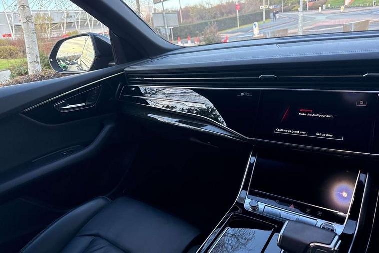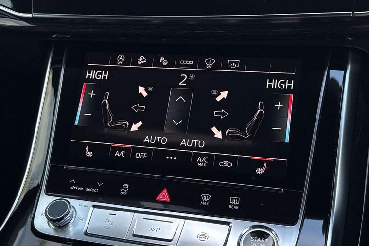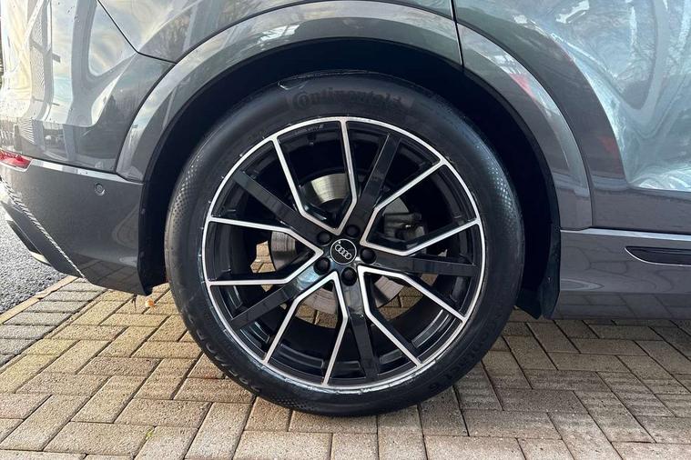 10.1" and 8.6" Dual colour touchscreens, Audi connect safety and service (e-call), Audi connect with Amazon Alexa Integration, Audi drive select, Audi parking system plus includes 360 degree display with front and rear sensors, Audi phone box light with wireless charging, Audi virtual cockpit - 12.3" high resolution LCD display with fully customisable instrument cluster, Automatic start/stop system, Electro-mechanical PAS, Low washer fluid indicator, MMI - Multi Media Interface control system, MMI navigation plus with MMI touch, Natural voice recognition, On board computer, Operating buttons in black, glass look with haptic feedback, Power operated tailgate, Rear view camera, Service interval indicator, Smartphone interface includes wireless Apple carplay/Android Auto, 48V Mild hybrid technology, 85 litre fuel tank, Adaptive sport air suspension, Quattro all wheel drive with self locking centre differential, Audi music interface with 2 USB ports with charge and data functions, Audi sound system with 6 channel amplifier, 180 watt amplifying capacity and 10 loudspeakers including subwoofer, Aux-in socket, DAB Digital radio, 3rd brake light, Acoustic windscreen, Aluminium window trim, Audi HD Matrix LED headlights with dynamic front and rear indicators, Auto dimming frameless rear view mirror, Body colour door mirrors, Coming/leaving home lighting function, Electric front+rear windows, Electrically folding auto dimming/adjustable/heated door mirrors with memory function, LED side indicators and kerb view function for passenger side, Headlight washers, Heat insulating glass in windshield, Illuminated door sill trims with S line logo, LED signature daytime running lights, Platinum grey front spoiler lip and diffuser insert with honeycomb grille in black, Privacy glass - dark tinted rear and rear side windows from B-pillar backwards, Rain and light sensors, Rear side wing doors, Rear wiper, S line badges on front wings, S Line body styling, S line bumpers in full body colour paint finish, S line roof spoiler, S Line side skirts, S line side ventilation grille, 2 zone automatic climate control, 3 bench rear seats in 2nd row, 4-way lumbar support for front seats, 40:20:40 split folding rear bench seat, Audi phone box light, Black cloth headlining, Comfort front centre armrest, Driver seat memory function, Electrically adjustable front seats, Front head restraints, Front/rear floor mats, Heated front seats, ISOFIX child seat mounting for front passenger seat and 2 outer rear seats with top tether child seat mounting for all 3 rear seats, LED interior ambient lighting, Luggage compartment sill protection in stainless steel, Rear centre armrest with 2 cupholders, Rear headrests, Seat cushion displaceable by 100mm in the ratio 60:40, Single front passenger seat, Stainless steel pedals, Sunvisors with illuminated vanity mirrors, 3 point seatbelts on all seats, Audi pre sense front, Child locks on rear doors, Driver and front passenger, front side and curtain airbags, Electromechanical parking brake, Electronic Stability Control (ESC) including ABS, ASR and EDL, Front passenger airbag deactivation, Hill descent control, Hill hold assist, Predictive pedestrian protection, Seatbelt monitoring, Traction control, Tyre pressure loss indicator, Warning triangle and first aid kit, Anti theft alarm with tow away protection, Anti-theft wheel bolts and wheel loosening detection, Immobiliser, Keyless go with remote central locking, Dark matt brushed aluminium inlay, Tool kit, Tyre repair kit,