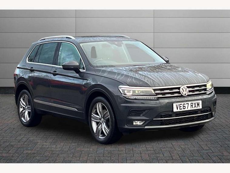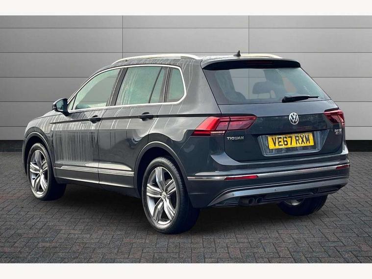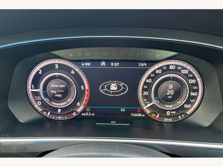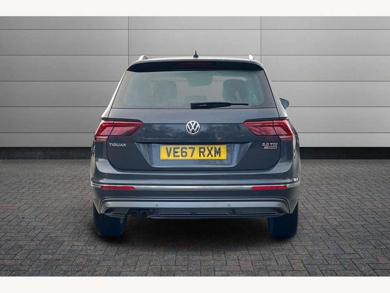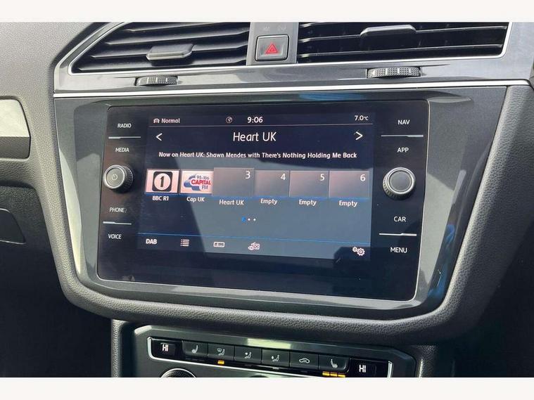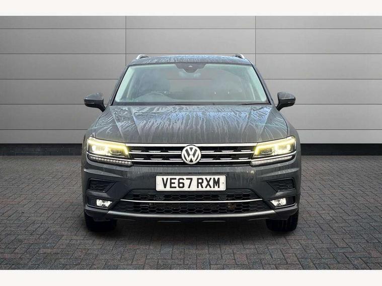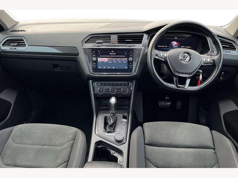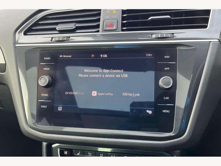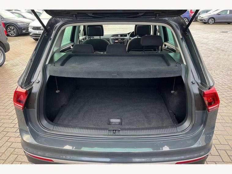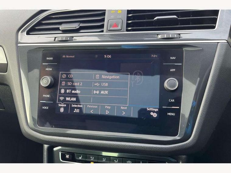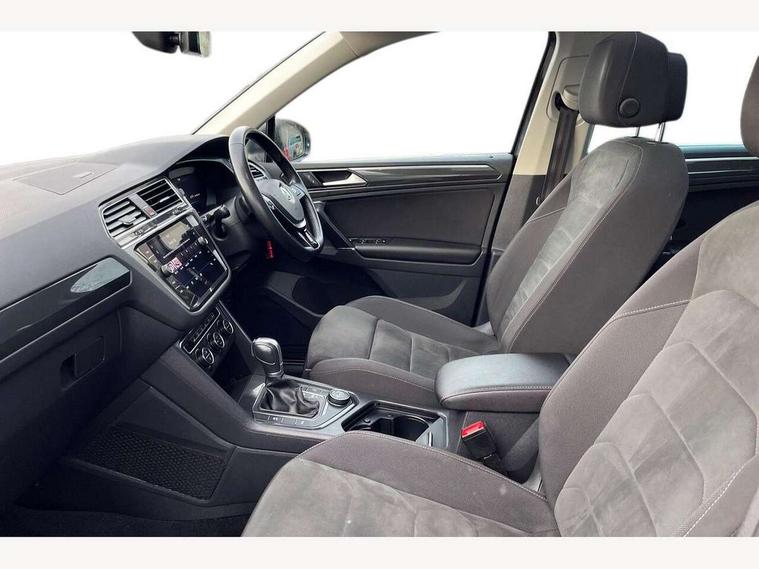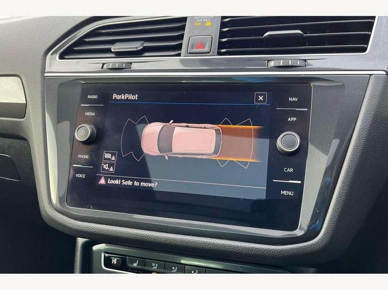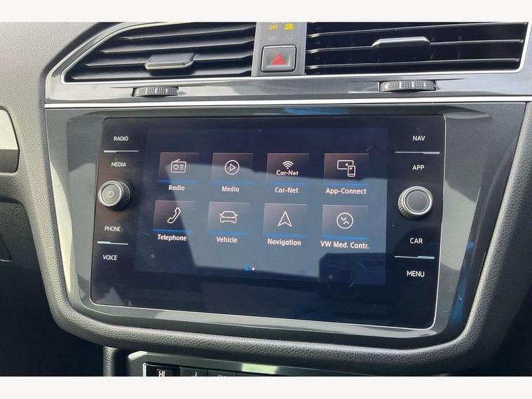 App-Connect, Active information display, Adaptive cruise control, Bluetooth phone integration system, Distance control assist, Instrument cluster, Lane assist, Low washer fluid warning light, Outside temperature display, Service interval indicator, Speed limiter, Warning lights, Diesel particulate filter, XDS electronic differential lock, 2x USB sockets in front, Aux-in socket, DAB Digital radio, SD card slot, Auto dimming interior mirror, Automatic activation of hazard warning lights, Black door protector with chrome inserts, Body colour door handles, Body colour door mirrors, Body coloured bumpers, Chrome side body trim, Chrome side window surrounds, Chrome trimmed radiator grille, Coming/leaving home lighting function, Dusk sensor + auto driving lights, Electric folding door mirrors, Electric heated + adjustable door mirrors, Electric panoramic sunroof with sunblind, Front and rear electric windows, Heated rear window, LED headlights with dynamic light assist daytime running lights and cornering front fog lights, LED rear lights, Rain sensor windscreen wipers, Rear windscreen washer and wiper with interval delay, Silver rear diffuser trim, Silver roof rails, Silver under body guard, Tinted windows (B pillar backwards), Windscreen wipers/ intermittent wipe + 4 position delay, 12V Accessory socket in centre console, 3 rear headrests, 3 zone climate control, 4 load lashing points, 40:20:40 split folding rear seats, Bag hook in luggage compartment, Driver + front passenger lumbar support, Foldable passenger seatback, Front + rear carpet mats, Front centre armrest with 12v socket, Front centre armrest with storage + rear 2 air vents + cupholders, Front seatback folding tables, Height/reach adjust steering wheel, Illuminated driver/passenger vanity mirrors, Illuminated scuff plates, Interior light with delay, Isofix Preparation 2 Rear child seats, Leather gear knob, Load through provision with 2 cupholders when folded, Lockable cooled glovebox, Luggage compartment lighting, Luggage compartment side storage, Map pockets on front seats, Passenger seat height adjuster, Passenger underseat drawer, Rear cupholders, Removable luggage cover, Sliding/reclining rear seats, Storage compartment in driver's door, Storage compartment in passenger's door, Storage tray on dashboard, Sunglasses storage, Variable boot floor, Ambient lighting pack - Tiguan, 3 rear 3 point seatbelts, ABS+EBD+Brake assist, Active bonnet, Active pedestrian safety system, Curtain airbags, Driver/Front Passenger airbags, Driver/Passenger whiplash optimised head restraints, Drivers knee airbag, DTC - Drag torque control, Electronic parking brake with auto hold, ESP with EDL + ASR, First aid kit, Front assist including city emergency braking, Front side airbags, Head airbag system, Height adjustable front 3 point seatbelts + pretensioners, Hill hold control, Passenger airbag deactivate switch, Passenger knee airbag, Pre crash system, Rear side airbags, Seatbelt warning lamp and buzzer, Two tone horn, Warning triangle, Alarm with interior protection, Electronic engine immobiliser, Remote central locking with 2 remote folding keys, Chrome door trim inserts, Piano black interior trim, Steel space saver spare wheel,