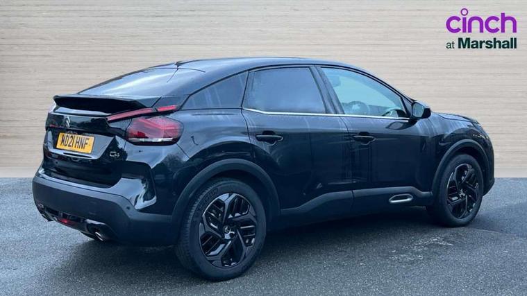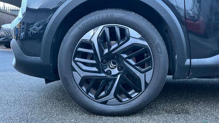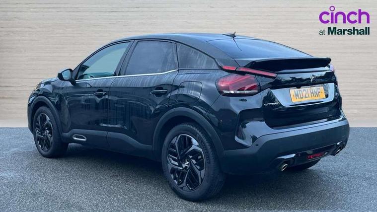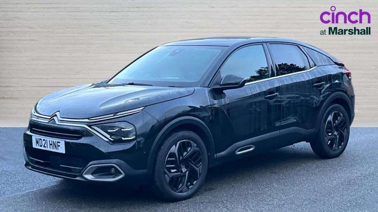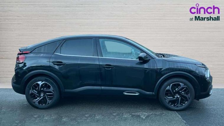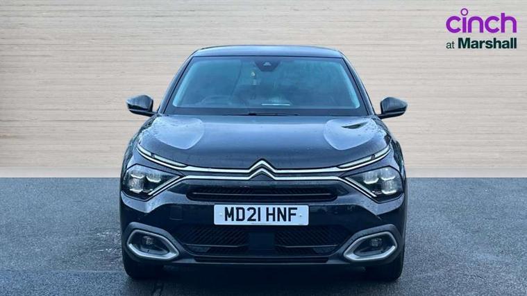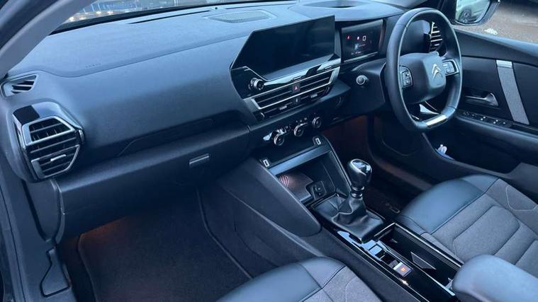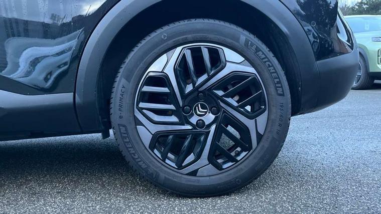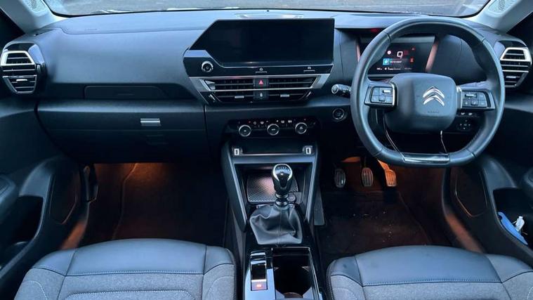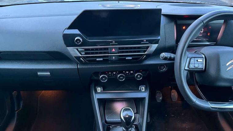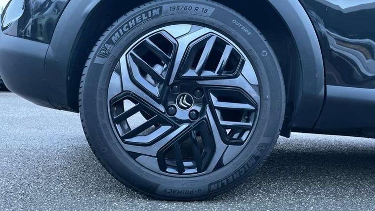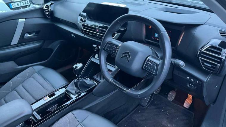 10" high resolution touchscreen user interface, controlling media, connectivity and vehicle settings, 5.5 inch backlit full TFT driver's instrument cluster, Active blind spot detection, Apple car play and Android auto, Citroen connect box emergency and assistance system, Citroen connect nav with speed cam and danger zones alert, Cruise control + speed limiter, Driver's head-up display, Electronic Power Steering (EPS), Front, rear and lateral parking sensors, In-crash braking, Voice commands, Suspension with progressive hydraulic cushions - double hydraulic stops on front suspension and single on rear suspension, Auxiliary input socket, Bluetooth telephone and audio streaming, DAB Digital radio, Body colour bumpers, Body colour door handles, Dark tinted rear windows and side windows with chrome detail, Electrically heated, folding and adjustable external rear view mirrors with courtesy lighting, Electrochrome interior rear-view mirror with automatic day-night switching, Front and rear electric windows, Gloss black rear skirt, Intelligent beam headlights, LED daytime running lights in V signature, LED front fog lamps with static cornering function, LED front headlamps, Obsidian black painted external rear view mirrors, Rain sensing automatic front windscreen wipers, Welcome and goodbye lighting, 12V power outlet, 1x USB Type-C socket charging & data connection and 1x USB Type-A socket in 1st row and 1x USB Type-A socket charging in 2nd row, 3 rear headrests, Boot light, Dashboard tray in front cabin, Deluxe leather steering wheel with two command blocks, Driver and passenger sunvisors with illuminated vanity mirrors, Dual zone automatic air conditioning, Front and rear LED interior lighting, Front head restraints, Height adjustable driver's seat with adjustable lumbar support, Height adjustable front passenger seat, Height and reach adjustable steering wheel, Map pockets in rear of front seats, Raised centre console with two cup holders, Split folding rear seats, Two position boot floor, High level acoustic insulation pack - C4/C4 X/e-C4 X, Safety pack plus - C4 Shine/ Shine Plus, 3x3 point rear seatbelts, ABS, Driver and front passenger airbags, Electric parking brake, ESP, Front seatbelt pretensioners, Hill start assist, Manual child lock in second row, Manual deactivation of front passenger airbag, Post collision safety brake, Row 1 and 2 curtain airbags, Row 1 side thorax airbags, Seatbelt unfastened on the move warning, Tyre underinflation detection, Anti-theft alarm (volumetric protection), Immobiliser, Keyless entry and start, Remote locking with deadlocks, 18" Aeroblade dark alloy wheels and smoke grey finish with anti-theft locking wheel, Puncture repair kit with compressor,