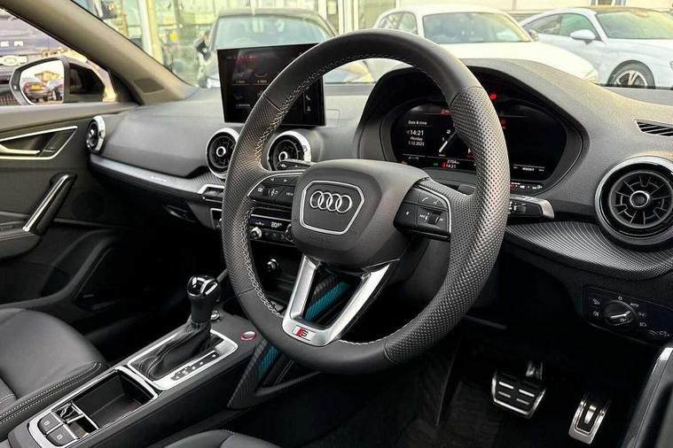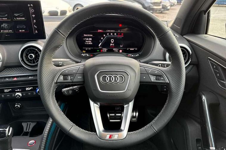 3D map display, Adaptive cruise control with active lane assist/emergency assist, Audi connect navigation and infotainment includes innovative services, Audi connect remote and control connects your vehicle to your smartphone, Audi drive select: S tronic - power steering assistance + engine + gearshift (modes: comfort, auto, dynamic, efficiency, individual), Audi phone box with wireless charging, Audi side assist including rear cross-traffic assist and audi pre sense basic, Audi smartphone interface - Apple carplay/Android Auto, USB connect, 2xSDXC card readers, voice control for navi, telephone, music and 3rd party apps, Audi virtual cockpit, Automatic start/stop system with recuperation, Bluetooth interface includes bluetooth audio streaming, Camera based traffic sign recognition, Distraction and Fatigue warning, E-call, Instrument dials with S logo, Jukebox hard drive memory for music (10GB), Lane departure warning, MMI navigation plus with 8.8" touchscreen, Natural voice recognition, Park assist system including front parking sensors, Power operated tailgate, Progressive steering, Rear parking sensors, Reversing camera, Traffic jam assist with emergency assist, Quattro all wheel drive, S sport suspension lowered by 20mm, DAB Digital radio, SONOS premium sound system, USB type C port, Audi beam, Auto dimming rear view mirror, Black window trims, Brake lights, tail lights, reversing lights, and rear number plate lights in LED technology, C-Pillar blade in Brilliant black, Electrically adjustable, folding, auto dimming and heated door mirrors with integrated LED side indicators, Exterior mirror caps in Brilliant black, Front windscreen with grey tinted sunband, LED daytime running lights, LED third brake light, Matrix headlights with LED rear lights, dynamic rear indicators, cornering lights, Privacy glass - dark tinted rear and rear side windows from B-pillar backwards, Quattro decals on rear side flank, Rear side wing doors, Rear wiper, S design body styling - SQ2 front bumper, S design underbody protection, SQ2 rear diffuser, S design radiator grille with horizontal struts and SQ2 logo, S specific dual-branch black tailpipes, with twin tailpipes on both the left and right in black, Sport bumpers in manhattan grey, Variable front intermittent wipers, Wheel arch trims in manhattan grey, 12V socket in front, 3 seat bench in 2nd row, 3 spoke leather trimmed multi function steering wheel with paddleshift features S badging, 4-way electric lumbar support for front seats including manual seat height adjustment for both front seats, 40/20/40 split folding rear seat bench with centre armrest and cupholder, Black carpets, Black cloth headlining, Dual zone electronic climate control, Fine Nappa leather upholstery with S embossed logo, Front and rear head restraints, Front centre armrest, Front sport seats, Front/rear floor mats, Heated front seats, Height/reach adjust steering wheel, ISOFIX child seat mounting in front passenger and rear outer seats, Single front passenger seat, Stainless steel pedals, Black styling pack - Q2, Extended interior upholstery pack - SQ2, Storage and luggage compartment pack - Q2, Technology Pro pack - SQ2, 3x3 point rear seatbelts, 6 airbags - Front, curtain and front side airbags, Brake calipers painted black with S logo at the front, Electromechanical parking brake, Electronic stabilisation control including ABS, ASR and EDL, Front passenger airbag deactivation, Hill hold assist, Pre-sense front with pedestrian recognition, S model enhanced braking system, Seatbelt monitoring, Tyre pressure warning light with visual and acoustic warning, Warning triangle and first aid kit, Anti theft alarm, Anti theft wheel bolts, Electronically operated child locks, Remote central door locking, Aluminium interior element, Black dashboard, Gloss black centre console, 19" 5 double spoke design alloy wheels in gloss white with diamond cut finish, Tool kit,