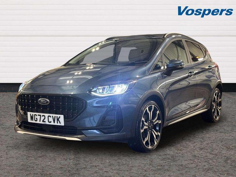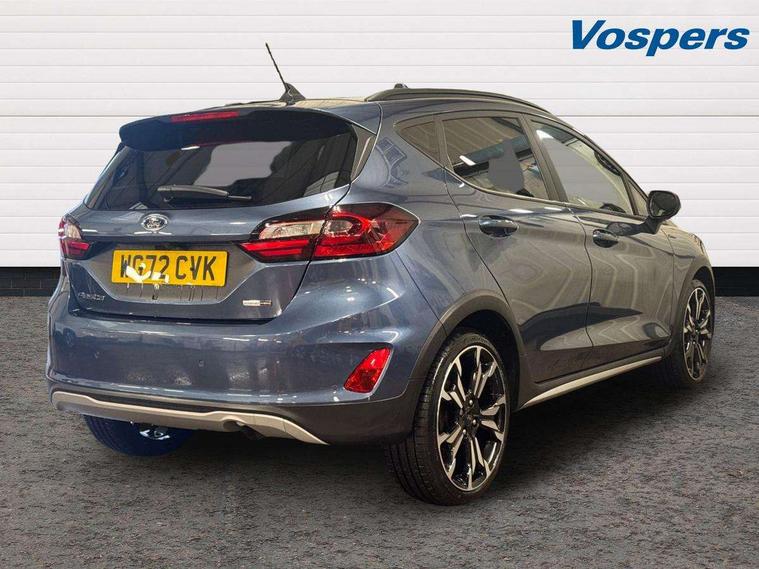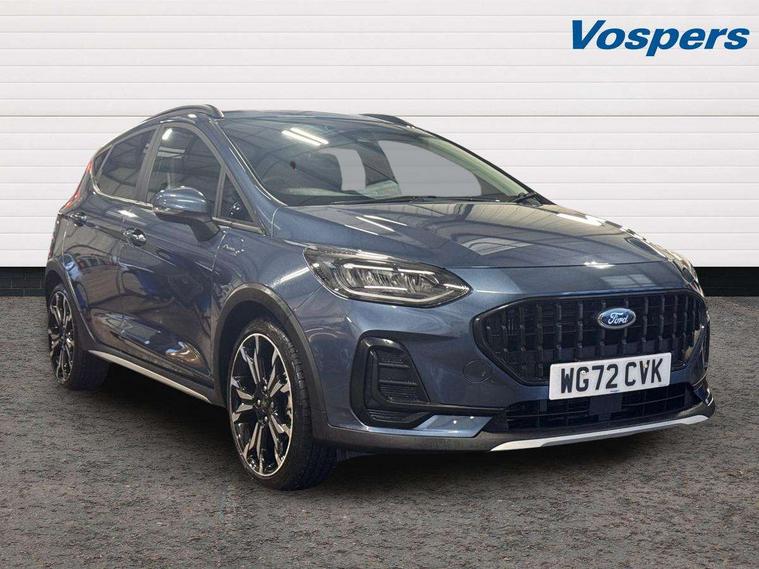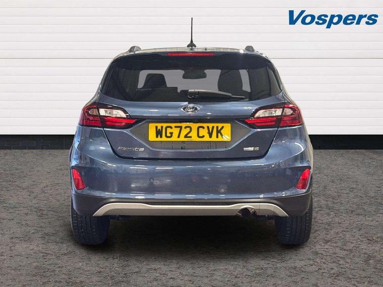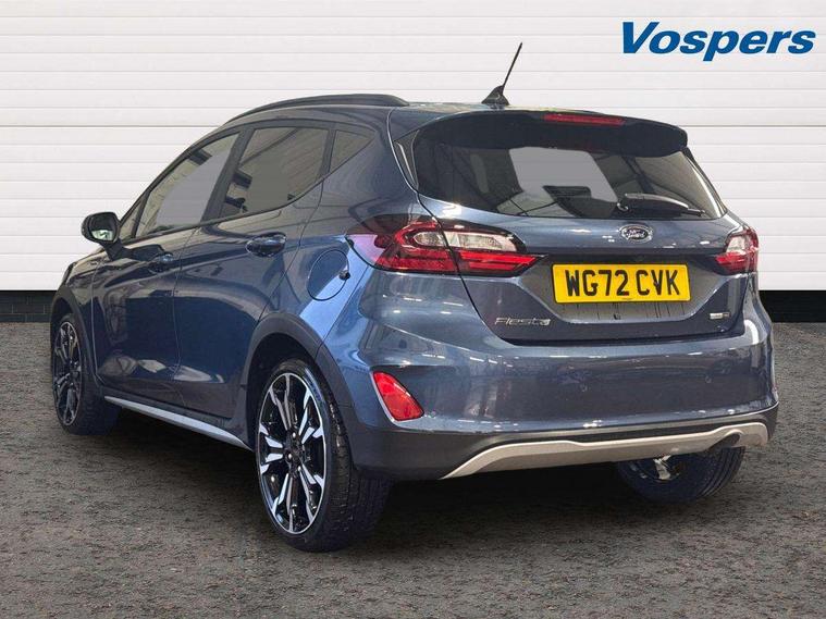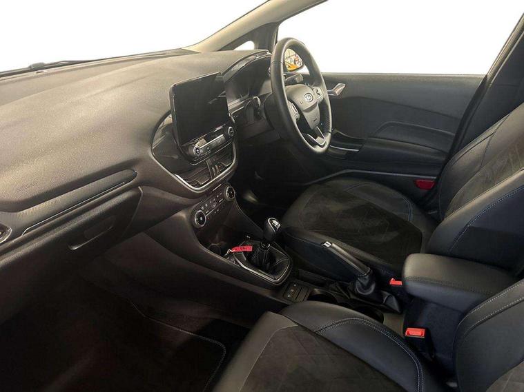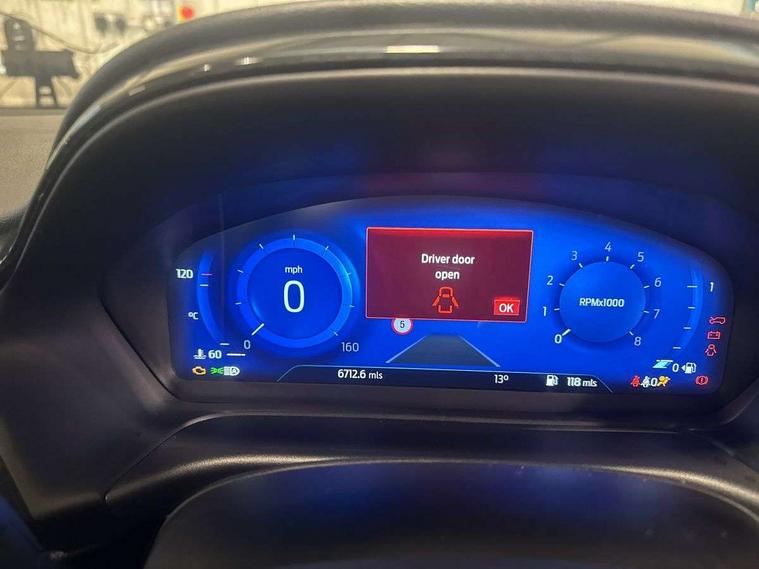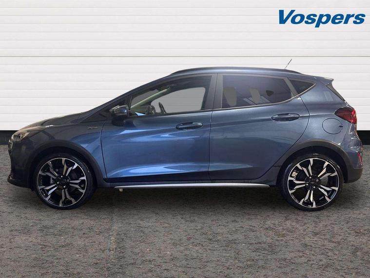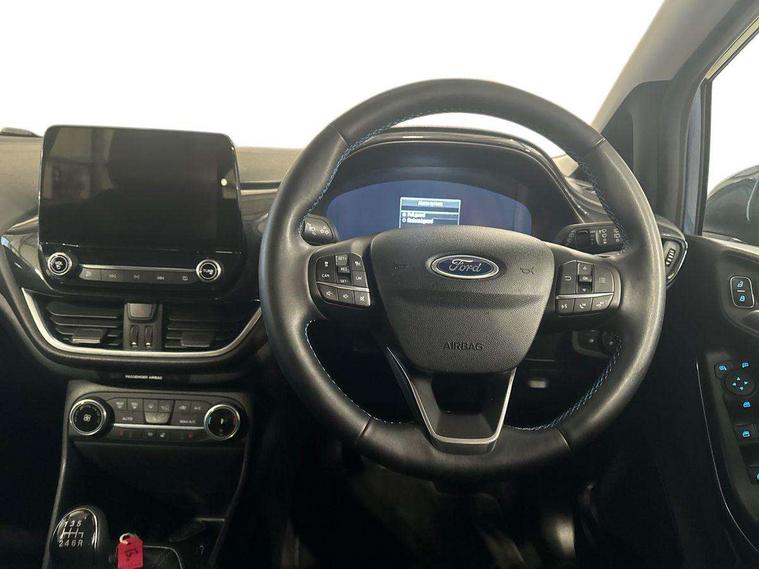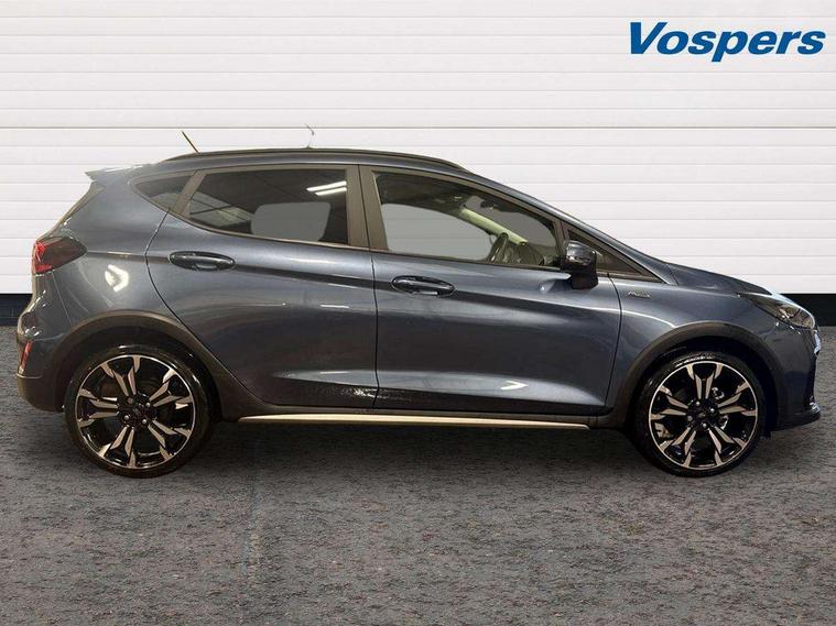 4.2" TFT instrument cluster screen, Bluetooth system, Electric power steering, Extra selectable drive modes ( Trail, Slippery), Ford easy fuel, Rear parking distance sensors, Selectable drive modes (Normal, Sport, Track), Traffic sign recognition, Trip computer, Rough road suspension with increased ride height adjust, 2 USB ports, Auxiliary input socket, B&O Premium audio system with 8" touchscreen, 10 speakers, 360 degree sound system, Ford SYNC 3 navigation system and Ford pass connect, DAB Digital radio, Steering wheel mounted controls, Auto high beam, Body colour bumpers, Body colour door handles, Body colour rear spoiler, Chrome beltline trim, Cornering front fog lights, Electric front windows/one touch facility, Electric rear windows, LED Night signature to rear lights, Mesh design front grille with chrome surround, Power foldable door mirrors with puddle lights, Quickclear heated windscreen, Rain sensing wipers and auto dimming rear view mirror, Rear privacy glass, Rear wiper, Rugged body styling kit with active front wing badges, 3 spoke leather trimmed steering wheel with audio control, 60/40 split folding rear seat, Adjustable head restraints, Boot carpet, Centre console with opening armrest, 2x cupholders, 12v and USB, Chrome inner door handles, Drivers and Passenger lumbar support, EATC - Electronic Auto Temperature control, Footwell illumination, Front floor mats in velour, Front map reading lights, Front seat and rear pockets, Height adjustable passenger seat, Illuminated glovebox, Leather gaiter, LED ambient lighting, Load area light, Manual 4-way driver seat adjust, Overhead console with sunglasses holder, Pollen filter, Rake/reach adjustable steering wheel, Sensico partial premium upholstery, Sensico wrapped steering wheel, NCAP Pack - Fiesta, 3 point seatbelts on all rear seats, ABS+EBA, Curtain airbags, Driver and passenger airbags, Drivers knee airbag, Electronic stability control with hill start assist, Front passenger airbag deactivation, Front side airbags, Seatbelt warning, Two tone horn, Tyre pressure monitoring system, Ford keyfree system with Keyless entry and keyless start, MyKey system, Remote central locking & engine immobiliser, Thatcham Cat.1 alarm, 18" 5 spoke alloy wheels with shadow black machined finish,