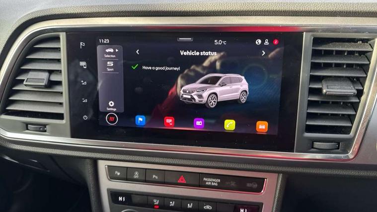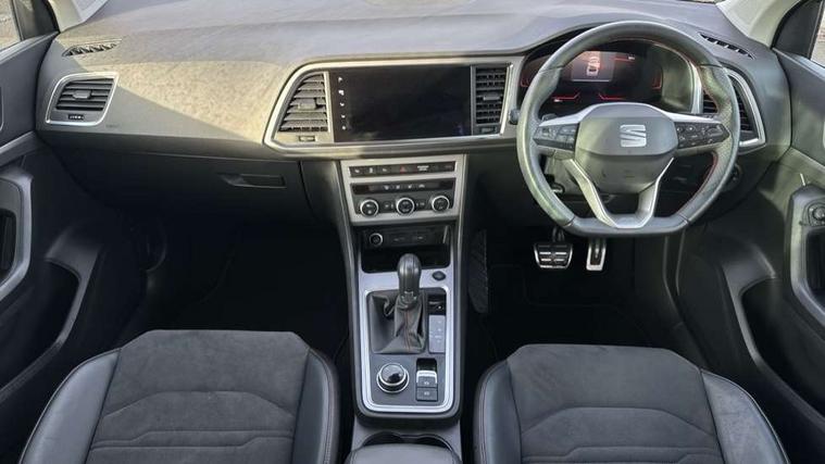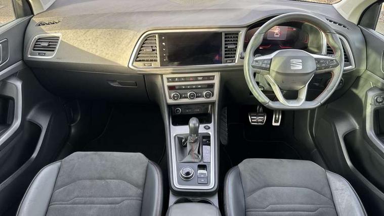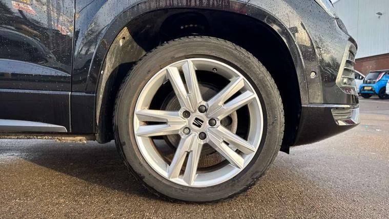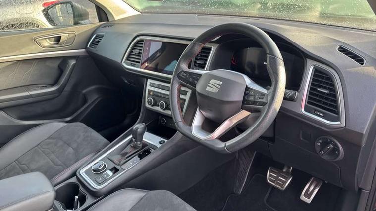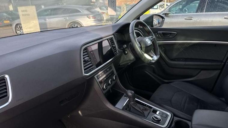 8" Digital cockpit, Colour multi-function on board computer display, Cruise control system with speed limiter, E-call, Outside temperature gauge, Progressive power assisted steering, SEAT drive profile with driving experience button - Normal, Sport, Eco and Individual mode, gearshift, steering and throttle response, Self parking functionality (includes front and rear parking sensors), Start/stop system, Tailgate, Trip computer, wired and wireless full link smartphone integration, Wireless phone charger, Steering wheel mounted audio/phone controls, Black roof rails, Black side window trim, Body colour bumpers, Body coloured wheel arch surrounds, Chrome front grille frame, Dark tinted rear windows, Daytime running lights, Door mirrors with welcome light silhouette, Dynamic headlight range control with self adjusting whilst driving, Electric adjustable/heated/folding door mirrors, Front and rear electric windows, Full LED headlamps with lens and LED front fog lamps with cornering function, Illuminated aluminium front door sill, LED 3rd brake light, LED rear tail lights with dynamic indicators, Rear exhaust tailpipe, Rear fog lights, Rear side wing doors, Rear wash/wipe, Roof spoiler, Variable front intermittent wipers, 12V socket in front, 3 seat bench in 2nd row, 60/40 split folding rear seat, Aluminium pedals, Dinamica upholstery with front comfort seats, Drawer under right front seat, Dual zone climate control, Front and rear head restraints, Front centre armrest, Front seat back storage pockets, Height adjustable driver and passenger seat with lumbar adjustment, ISOFIX points in outer rear seats with top tether anchorage points, Leather sports steering wheel and gear knob, Rear armrest and easy back seat release mechanism from boot, Single front passenger seat, Steering wheel mounted gearshift paddles, Convenience pack - Ateca, Interior lighting pack - Ateca, Navigation system pack with DAB - Ateca, Safety and driving pack with attention and drowsiness assist - Ateca, 3x3 point rear seatbelts, ABS, Traction control system (TCS), Electronic stability control (ESC) and Electronic differential lock system (XDS), Airbags - Driver and front passenger airbag with deactivation, front side, two curtain and driver's knee airbags, Electric parking brake with auto hold function, Front and rear seatbelt reminder, Front assist with autonomous emergency braking, Hill hold control, Manual rear child locks, Single tone horn, Tiredness recognition system, Tyre pressure monitoring system, Alarm, Keyless entry, Locking wheel bolts, Remote central locking, Chrome interior detailing, 18" Brillaint silver alloy wheels,