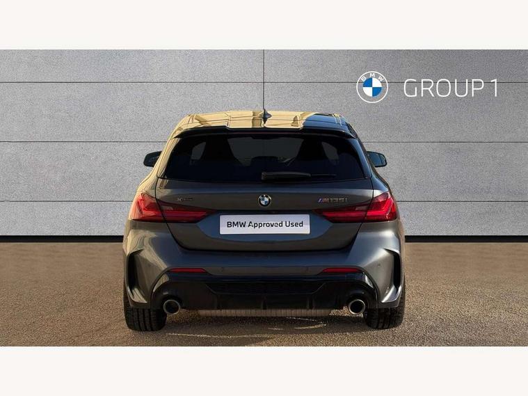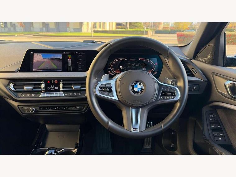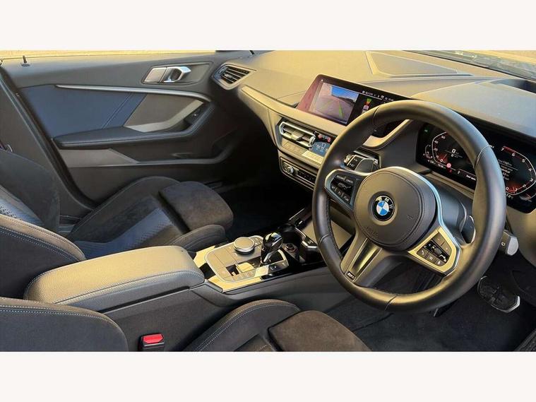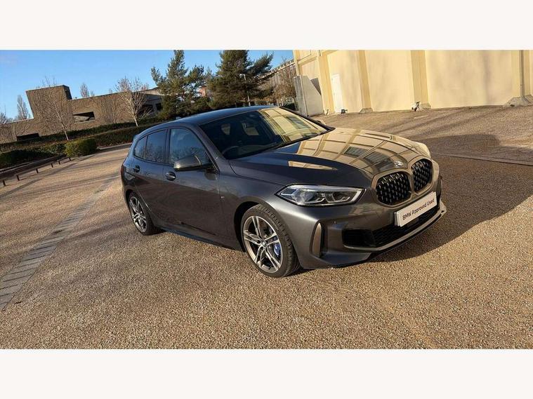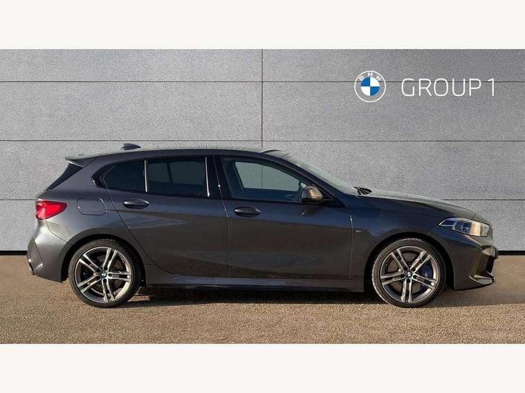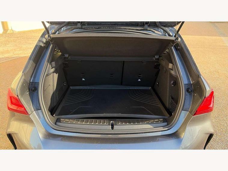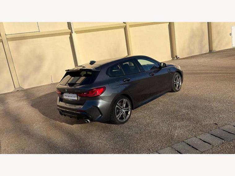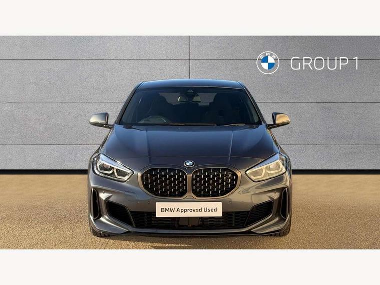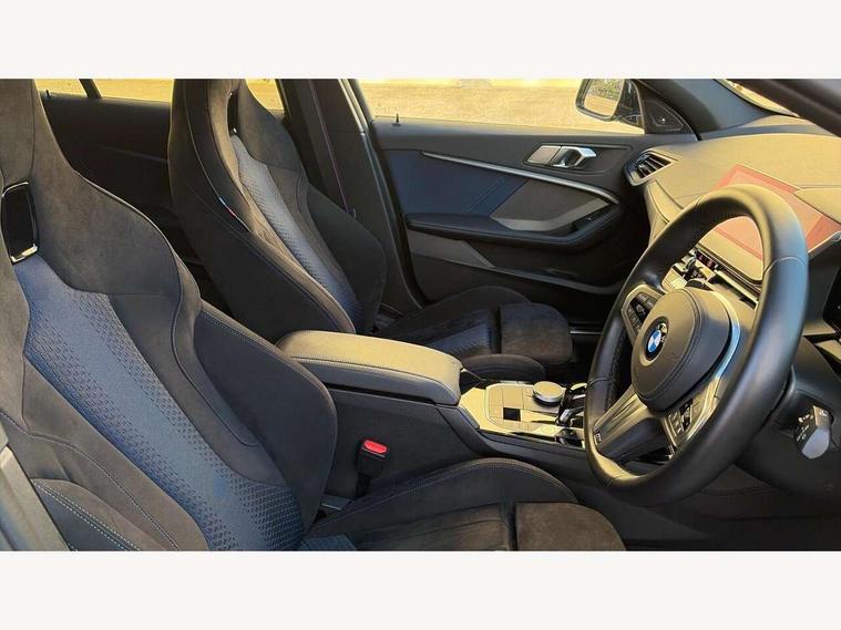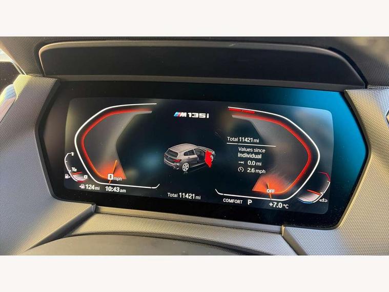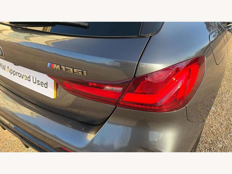 Active guard plus, Attentiveness assist, BMW Live Cockpit Professional sat nav system including 10.25" high resolution display and Intelligent Voice Assistant, BMW Online services, BMW Teleservices, Check Control warning system for monitoring of lights and door/luggage compartment open warning, Eco pro mode, Integrated owners handbook, M Sports steering, On board computer, Optimum shift indicator, Personal Profile, Pull away assistant, Speed limiter, Anti roll bar front and rear, Balancer shaft, Double VANOS, Drive Performance Control, Electronic differential lock, Engine cover with M performance designation, High precision injection, Larger fuel tank capacity (50 litres), Launch control, Petrol Particulate Filter, VALVETRONIC engine management, Bluetooth audio streaming, DAB Digital radio, Auto dimming rear view mirror, Body colour door handles, Cerium grey exterior mirror caps, Direction indicator side lights in exterior mirrors, Electric folding and anti dazzle exterior mirrors, Fading support, Follow me home headlights, Front and rear electric windows with open and close fingertip control, anti trap facility and comfort closing, Front door sill finishers with M135i designation, Green tinted heat protection glazing, Headlight beam throw control, High gloss shadow line exterior trim, High level third brake light, Kidney grille frame in Cerium Grey with Mesh design, LED daytime running lights, Lightweight engineering, M logo designation side in cerium grey, M performance exhaust system, M rear spoiler, Matt black air guide grilles, Matt black roof moulding, B pillar finisher and wheel arch trim, Matt black window frame, Model designation on right side of tailgate, Nearside reverse light in rear light cluster, Rain sensor including auto headlights activation, Rear fog lights, Rear window wiper, Round exhaust system with twin cerium grey tailpipes in left and right split, Shark fin antenna, Visible VIN plate, Welcome lighting, Windscreen wipers with integrated washing jets, 12V power socket in centre console, 2 cupholders in front centre console, 3 rear seat head restraints, 3 spoke M sports design leather steering wheel finished in nappa leather with specific M badge, Anthracite headlining, Anthracite Velour floor mats, Child seat ISOFIX attachment for two outer rear seats and front passenger seat with anchorage points, Conditioned based service, Driver and front passenger seat heating, Driver side folding compartment in instrument panel, Folding rear clothes hook, Folding rear seats, Four grab handles integrated in roof lining, Front and rear door pockets, Front and rear side armrest integrated into door trim, Front armrest foldable with integrated storage compartment, Front M seats, Glove compartment, Height adjustable front head restraints, Manual adjust steering wheel, Multi-function controls for steering wheel, Rear seat backrest with manual 60:40 split folding with 3 top tether clips integrated on rear of seat panels, Storage compartment in centre console, Sun visors with vanity mirrors and insert tab, Two zone automatic air conditioning, Connected pack professional - 1 Series, Extended Lighting pack - 1 Series M135i, Extended storage pack - 1 Series, Interior lights pack - 1 Series, Luggage compartment pack - 1 Series, M Sport exterior styling aerodynamics pack - 1 Series 135i, 2 tone horn, 3 point seatbelts on all seats, front pyrotechnic belt tensioners, stopper and belt force limiters, rear coded belt buckles, Airbags - Front driver and passenger, front and rear head, front side, curtain head protection, Anti lock braking system (ABS) with brake assist, BMW emergency call, Brake drying, Braking readiness, Crash sensor activating central locking release, hazard warning lights, fuel cut off, interior lighting + activation of safety battery terminal clamp, Driver and front passenger seat belt security check, Dynamic stability control + (DSC+), Dynamic Traction Control - DTC, Electrically operated hand brake, Front passenger manual airbag deactivation, M Sport braking system, M sport seatbelt, Rear child proof door locks, Seatbelt warning, Side impact protection, Tyre pressure monitoring system, Warning triangle and first aid kit, Automatic drive away locking facility, Central locking switch for all doors, fuel filler cap and luggage compartment, Deadlocking function system to all doors, Locking wheel bolts, Remote control with integrated key with High-gloss Black inlay and M designation and 1 button for open/ close lock, window, open luggage compartment, Start/stop button with comfort go keyless engine start and auto start stop deactivation button, Thatcham Cat.1 alarm and immobiliser, Contrast stitching on instrument panel, 18" Burnished M double spoke Bi-colour alloy wheels finished in Cerium grey matt - style 556M, BMW mobility system, Reduced rolling resistance tyres,