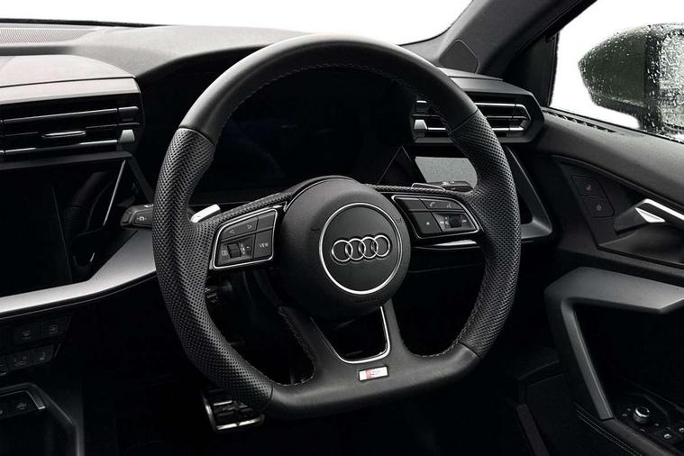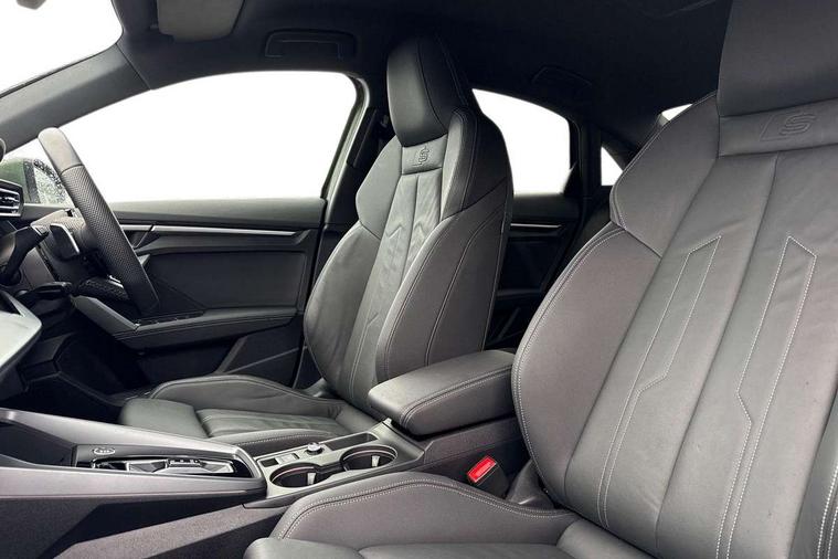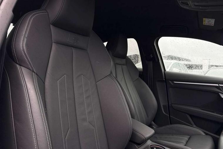 Adjustable speed limiter, Audi drive select, Audi smartphone interface with app store includes wireless Apple carplay, Android auto and Amazon alexa integration, Audi virtual cockpit plus - 12.3" full HD resolution dynamic digital instrument cluster, Automatic start/stop system with recuperation, Bluetooth interface, Camera based traffic sign recognition, Collision avoidance assistant, Cruise control, Distraction and Fatigue warning, e-Call (emergency call), Electromechanical power speed sensitive steering, Emergency assist, Lane departure warning system, MMI Navigation Plus with high resolution 10.1" colour touch screen display, Park Assist with parking system Plus, Service indicator, Trip computer, Voice control system with natural language interaction, Sports suspension, Audi Phonebox light with wireless charging, Audi sound system - 10 loudspeakers including centre loudspeaker and subwoofer, DAB Digital radio, USB ports with charging function in the rear, Acoustic glass windscreen, All weather light, Aluminium window trim, Auto dimming frameless rear view mirror, Automatic dynamic range control, Body colour exterior mirrors, Chrome exhaust tailpipes, Dipped beam, main beam, position light and turning light, Electrically adjustable/heated/folding/auto dimming door mirrors with integrated LED indications + kerb view function for passenger side, Exterior model badging, Front and rear side air inlets in grained matt black with dark liquid chrome frame, Front electric windows, Front radiator grill in high gloss dark chrome, Heat insulating glass windscreen, Illuminated door sills with aluminium inserts at the front with S logo, Intersection light, LED 3rd brake light, LED brake lights, LED daytime running x3, LED headlights with LED rear lights and dynamic rear indicators, LED rear number plate lights, LED reverse light, LED tail lights, Light and rain sensors, Manoeuvring light, Motorway light, Privacy glass - dark tinted rear window, rear door and side windows, Rear boot, Rear diffuser and grill in grained matt black with inlay in dark liquid chrome, Rear electric windows, Rear side wing doors, S line bumpers, Side S line emblems on front wings, Side sill trim in dark liquid chrome, Static cornering light, 12V socket and storage compartment in front centre console, 3 seat bench in 2nd row, 3 spoke flat bottomed leather multifunction sport steering wheel with gear shift paddles, 3-zone deluxe automatic air conditioning, 4 way electrically adjustable lumbar support for driver and front passenger, 40/20/40 split folding rear seat bench, Black cloth headlining, Black front and rear floor mats, Front and rear centre armrest in artificial leather with contrasting stitching on armrests and instrument panel, Front and rear headrests, Heated front seats, Height and reach adjustable steering wheel, Manual boot compartment lid, Manually adjustable front seats, Rear centre armrest with cupholder, S badging on the steering wheel, Seat side bolsters, Single front passenger seat, Stainless steel pedals and front footrest in black, Twin leather upholstery with front sports seats S embossed logo, Aluminium interior elements pack - A3, Multi-coloured LED interior lighting package with Multi-coloured contour lighting of instrument panel - A3, 3x3 point rear seat belts, Driver and front passenger airbag with passenger airbag deactivation, Electronic Stabilisation Control (ESC) including ABS, ASR and EDL, First aid kit with warning triangle and 2 safety vests, Front side airbags with head airbags and interaction airbag, Hill hold assist, Pre-sense front with pedestrian and cyclist detection, Seatbelt monitoring, Tyre pressure loss indicator, Anti theft alarm, Anti-theft wheel bolts, Electronically operated child locks, Immobiliser, Remote central locking with safelock, Black dashboard, Inlay in dark aluminium spectrum,