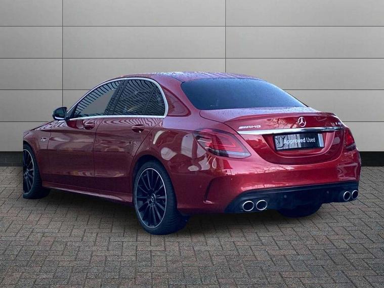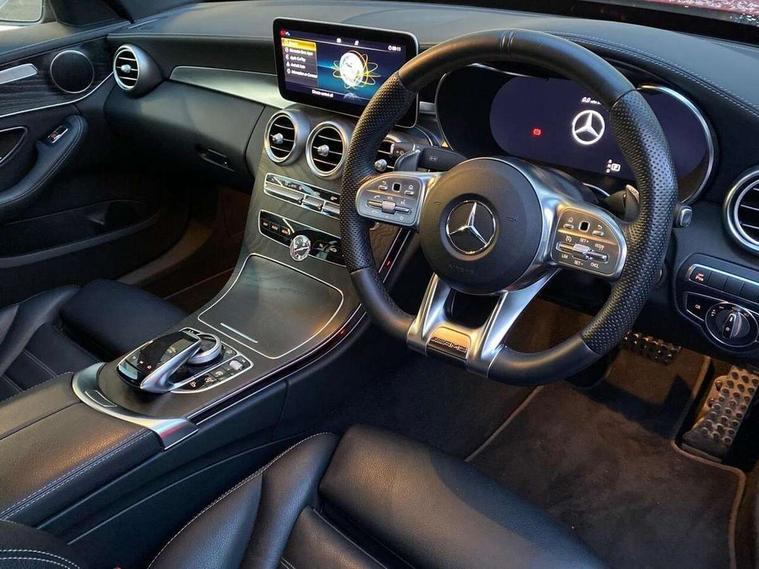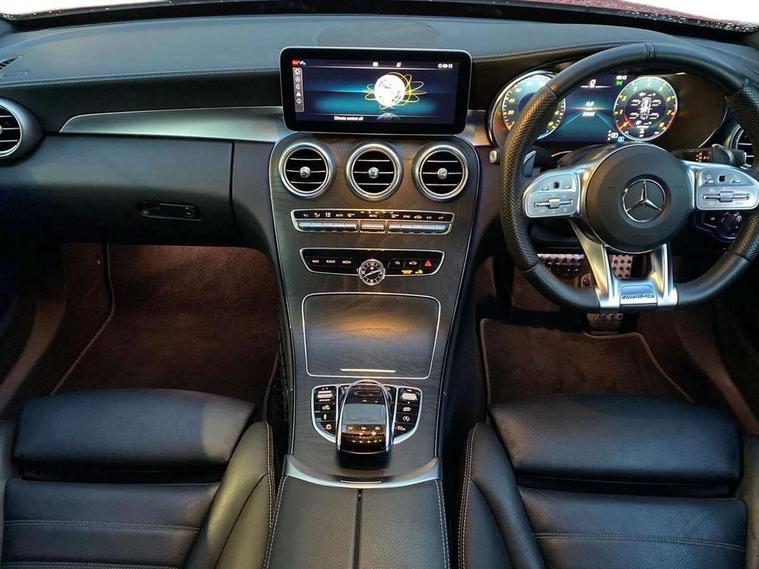 12.3" digital instrument cluster display, Active park assist with parktronic system, Attention assist, Collision prevention assist plus, Colour display - 10.25" colour display screen, DYNAMIC SELECT with a choice of driving modes (ECO, Comfort, Sport, Sport+ and Individual), Mercedes connect me, Multi function trip computer, Outside temperature gauge, Remote boot release, Reversing camera, Service indicator (ASSYST), Status display for rear seat belts in instrument cluster, 66 litre fuel tank, 9G TRONIC 9 speed automatic transmission, AMG Ride Control sports suspension, Petrol Particulate Filter, 2 USB ports and one SD card slot centre console, Audio 20 with integrated media interface and bluetooth handsfree function, DAB Digital radio, Frontbass loudspeakers, SD card slot, Steering wheel mounted audio controls, Adaptive brake lights, AMG body styling front apron, rear apron and side skirts, AMG body-coloured boot lip spoiler, AMG radiator grille with 2 louvres in matt iridium silver, Automatically dimming rear view mirror and driver's exterior mirror, BITURBO 4MATIC lettering on front wings, Black door mirrors, Body coloured bumpers, Electric windows with one touch opening/closing and obstruction sensors, Electrically adjustable and heated door mirrors, Green tinted glass, Heated windscreen washers, LED Indicators, LED tail lights, LED third brake light, Multi beam LED headlights, Privacy glass (rear side windows and rear screen), Radio aerial integrated into rear window, Rain sensor windscreen wipers, Side windows surround in matt black, Sports exhaust system, Twin exhaust pipes, 2 cupholders in front centre console, 3 spoke flat bottom multi function sports steering wheel in black nappa leather and steering wheel in chrome inserts with leather grip area, 40:20:40 split folding rear seats, Auto Mercedes-Benz child seat recognition sensor, Black floor mats with AMG lettering and red piping, Dual zone automatic climate control, Front and rear head restraints, Front centre armrest with storage compartment, Front door sills with Mercedes Benz lettering, Front head restraints, Gearshift paddles on steering wheel, Heated front seats, Height/reach adjustable steering column, Illuminated glovebox, Leather upholstery, Rear top tether child seat ISOFIX attachment, Sports pedals with stainless steel surfaces and rubber studs, Sports seats, Sunvisors with illuminated vanity mirrors, AMG night package - C Class, Lighting pack - C class, Mirror pack - C Class, Seat comfort pack - C Class, Stowage space pack - C Class, 3 rear 3 point seatbelts, Active bonnet, Adaptive brake system with HOLD function and brake drying in the wet, Anti-lock braking system (ABS), Brake calipers with AMG lettering + perforated brake discs, Child proof door locks, Drivers knee airbag, Drivers pelvis airbag, Dual stage driver/passenger airbags, Electronic parking brake, ESP with ASR, Front passenger seat occupancy sensor, Front side airbags, Hill start assist, Rear seatbelt warning indicator, Tyre pressure monitoring system, Warning triangle and first aid kit, Window airbags, Alarm system/interior protection/immobiliser, Central locking with interior switch, automatic locking and crash sensor with emergency opening function, Chrome surround in electric key, Urban guard, Artico upholstered dashboard with red contrast stitching, Open pore black ash wood trim, 18" AMG 5 twin spoke aero alloy wheels in tremolite grey, TIREFIT with tyre inflation compressor,