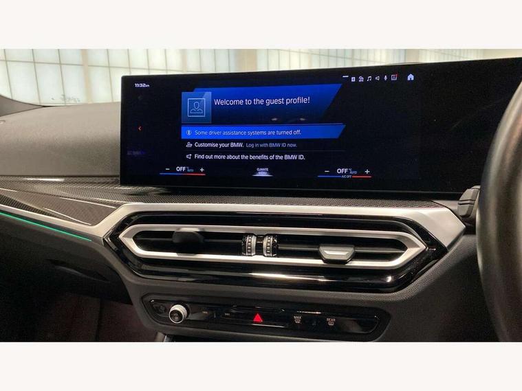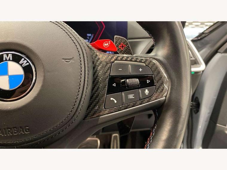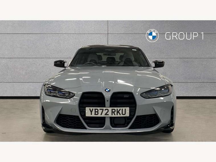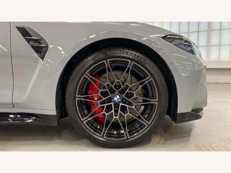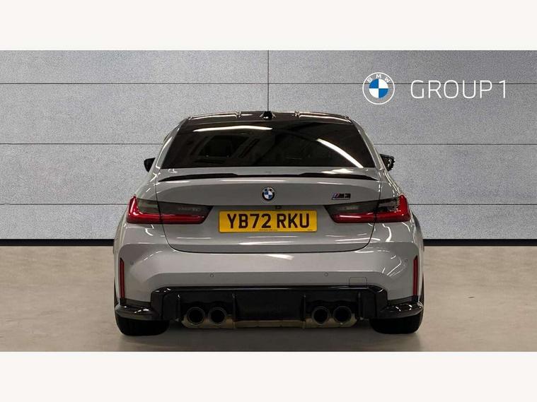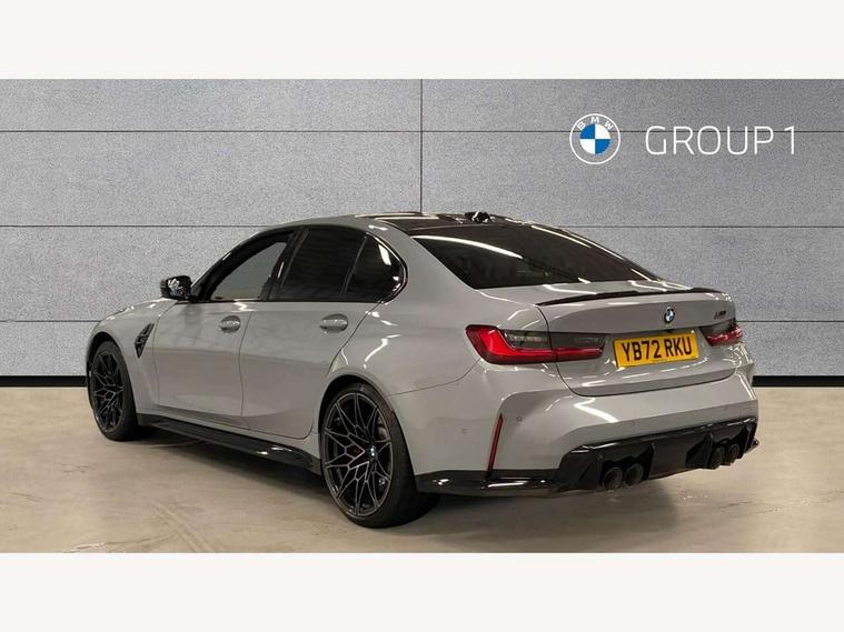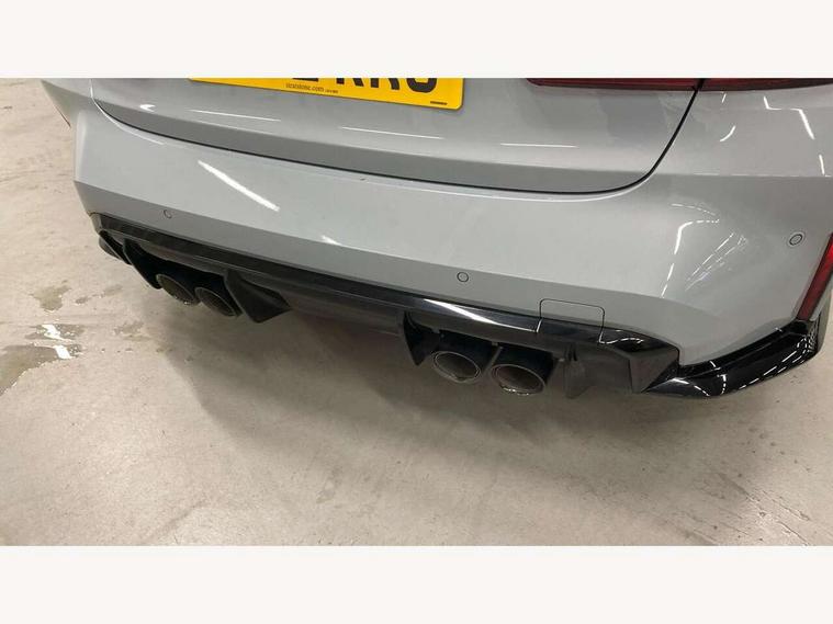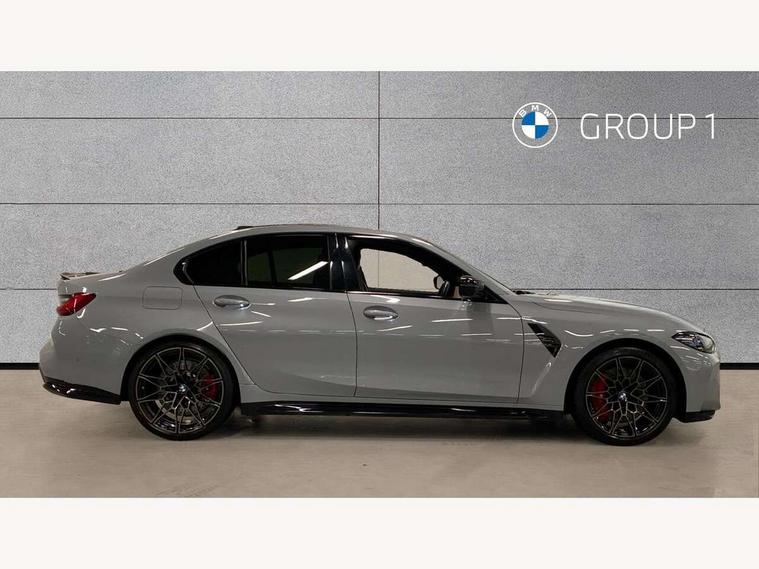 Active guard plus, Automatic start/stop system, Bluetooth functionality with Apple CarPlay/Android Auto, BMW iDrive controller on centre console, BMW legal emergency call, BMW Live Cockpit Professional sat nav system with 12.3" instrument display and high resolution control display, BMW Online services, BMW Teleservices, Brake pad wear indicator warning light, Condition based service, Connected drive services, Door/boot open warning light, Driving experience switch, Head up Display, Illuminated control elements, Instrument cluster with extended contents, Lights on warning, M drive buttons, Oil sensor for level and grade, warning by check control system, Oil temperature gauge, On board computer, On board diagnostics, Optimum shift indicator, Outside temperature display, Pull away assistant, Run flat indicator, Service interval indicator, Shifting point display, Speed limiter, Variable sport steering, Wi-Fi hotspot, Widescreen display, Adaptive M Sport suspension, Double joint spring strut front axle, M Drive Professional including track mode, laptimer, traction control & Drift analyser, M Sport differential, M steptronic sport transmission with drivelogic, Safety battery terminal clamp, 8 programmable favourite buttons, Auxiliary point for auxiliary devices, BMW professional radio/CD/MP3, DAB Digital radio, Harman/Kardon loudspeaker system, 3rd brake light, Acoustic glazing, Auto dimming driver's door mirror, Auto dimming rear view mirror, Automatic headlights + automatic windscreen wipers, Black chrome exhaust tailpipes, Black model designation badges, BMW emblem on engine compartment lid and tailgate, BMW high gloss shadow line with extended contents, BMW Individual shadowline lights, Body colour bumpers, Body colour door handles, Carbon fibre reinforced plastic (CFRP) roof with high gloss black roof aerial bulge and roof mouldings, Day time running light, Door mirror integrated indicators, Door sill finishers with aluminium inserts, Dynamic brake lights, Electric adjustable heated door mirrors, Electric folding door mirrors, Electric front and rear windows with one touch/convenient open/close function, Follow me home headlights, Front and rear apron plastic in body colour, Front and rear bumper system, Headlight beam throw control, Heat protection, sun protection glazing, Heated rear window with automatic switch off, Heated washer jets, High beam assistant, High gloss black frameless kidney grille with M badge, High gloss black lower bumper edges, side sills and diffuser edge binding, LED number plate light, LED tail lights with 3D L-shaped LED light design, M designation, M Sport entry door sill strips, Mirror glass aspheric on driver's side, convex on passenger side, Rear boot, Rear fog lights, Rear reflectors, Rear right M3 competition inscription, Rear side wing doors, Reversing light, Shark fin roof aerial, Strakes in front side panel, black matt/black high-gloss, with model badge, Visible VIN plate, Welcome lighting, 2 front cupholder in centre console with clamping elements and matt black inlay, 2 x 12 V Power sockets (luggage compartment and front centre console), 2 x USB Type C ports for charging and data transmission in front centre console, 2 x USB Type C ports for charging in rear centre console, 3 folding rear headrests, 3 seat bench in 2nd row, Ambient inside door handle light, Ambient lighting for instrument panel, Ambient lighting for storage compartment, Ambient lighting front and rear, Ambient lighting in door panels, Anthracite headlining, Battery in luggage compartment, Carbon fibre centre console incl. cover for cupholders and storage compartment, Carbon fibre decorative steering wheel finishers, Carbon fibre shift paddles, Carbon fibre strip in instrument panel on front passenger side, Centre console armrest with storage compartment, Compartment in front of cupholder, Driver/passenger sunvisors with illuminated vanity mirrors + covers, Dynamic ambient interior lighting, Electric front seats + driver memory, English handbook, Floor mats in velour, Folding rear centre armrest with 2 cupholders, Footwell lighting, Front and rear ambient footwell lighting, Front and rear door exit lights, Front door storage bins with bottle holder, Front interior light, Front isofix attachment + airbag deactivation, Front seat backrest width adjustment, Front seats lumbar support, Front/rear door armrests, Gearshift lever with embossed M badge, Heated front seats, Height adjustable front headrests, Interior mirror lighting, Isofix on 2nd row outer seats, Lockable/illuminated glovebox, Luggage compartment lighting, Manual 40:20:40 split folding rear seat with two tilt positions for backrest, Multifunction steering wheel, Rake/reach adjustable steering wheel, Single front passenger seat, Storage compartment in rear doors, Three zone automatic air conditioning, Through loading system, Toolkit located in luggage compartment, Wireless charging tray, Additional storage compartment pack - M3, Connected package professional - M3, High gloss shadowline exterior trim pack - M3, 3 point seatbelts on all seats, ABS/EBD, Automatic Stability Control (ASC), Brake energy regeneration, Brake fade compensation, Compound structure brake discs, Cornering brake control (CBC), Crash sensor, Driver/Front Passenger airbags, Dry braking, Dynamic brake control, Dynamic Stability Control with M Dynamic mode, Dynamic Traction Control - DTC, Electromechanical parking brake, Electronic differential lock control (EDLC), Front and rear head airbags, Front seat side impact airbags, Front seatbelt pretensioners + load limiters, Hill start assist, M Sport seat belts, Rear child proof door locks, Seatbelt warning, Side impact protection, Two tone horn, Tyre pressure sensor, Warning triangle and first aid kit, Centre lock switch, Closing system with central locking, Digital key, Electronic immobiliser, Thatcham cat 1 remote alarm, Vehicle Key with 4 buttons including the integrated key, Galvanic finish to control surroun